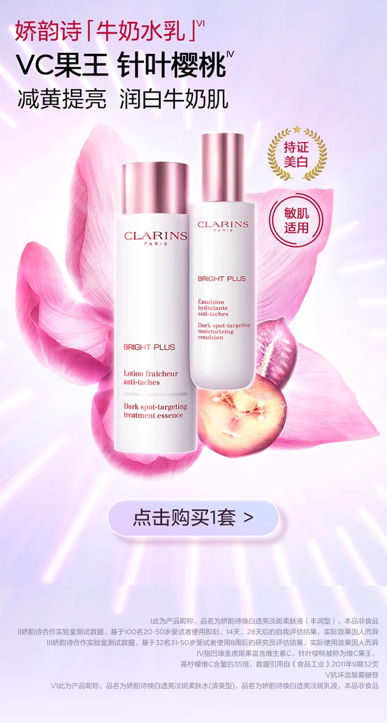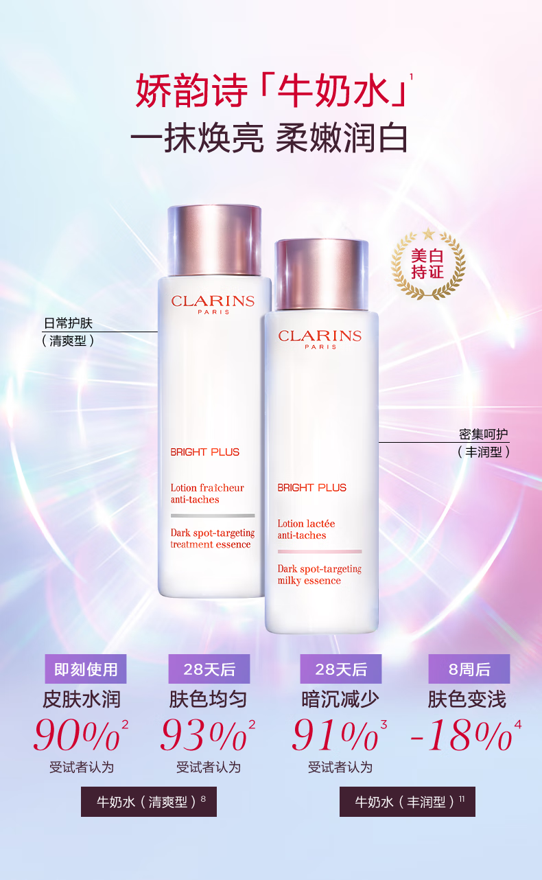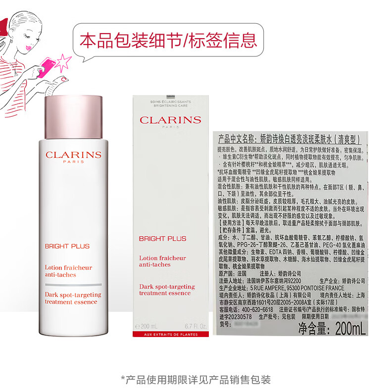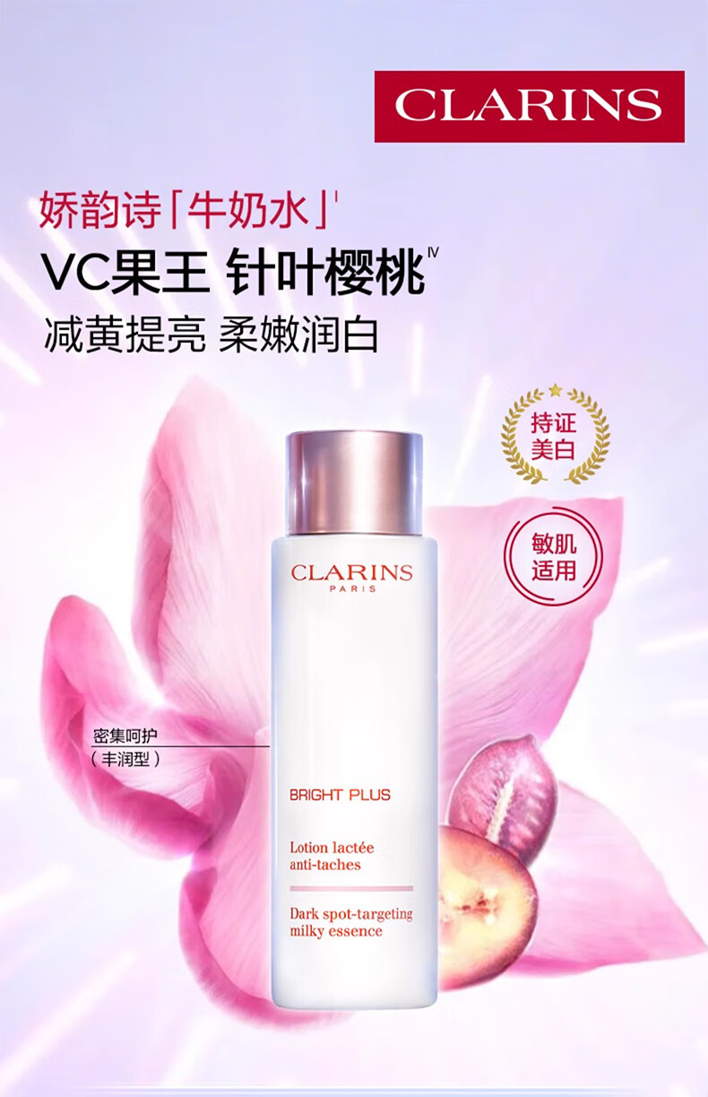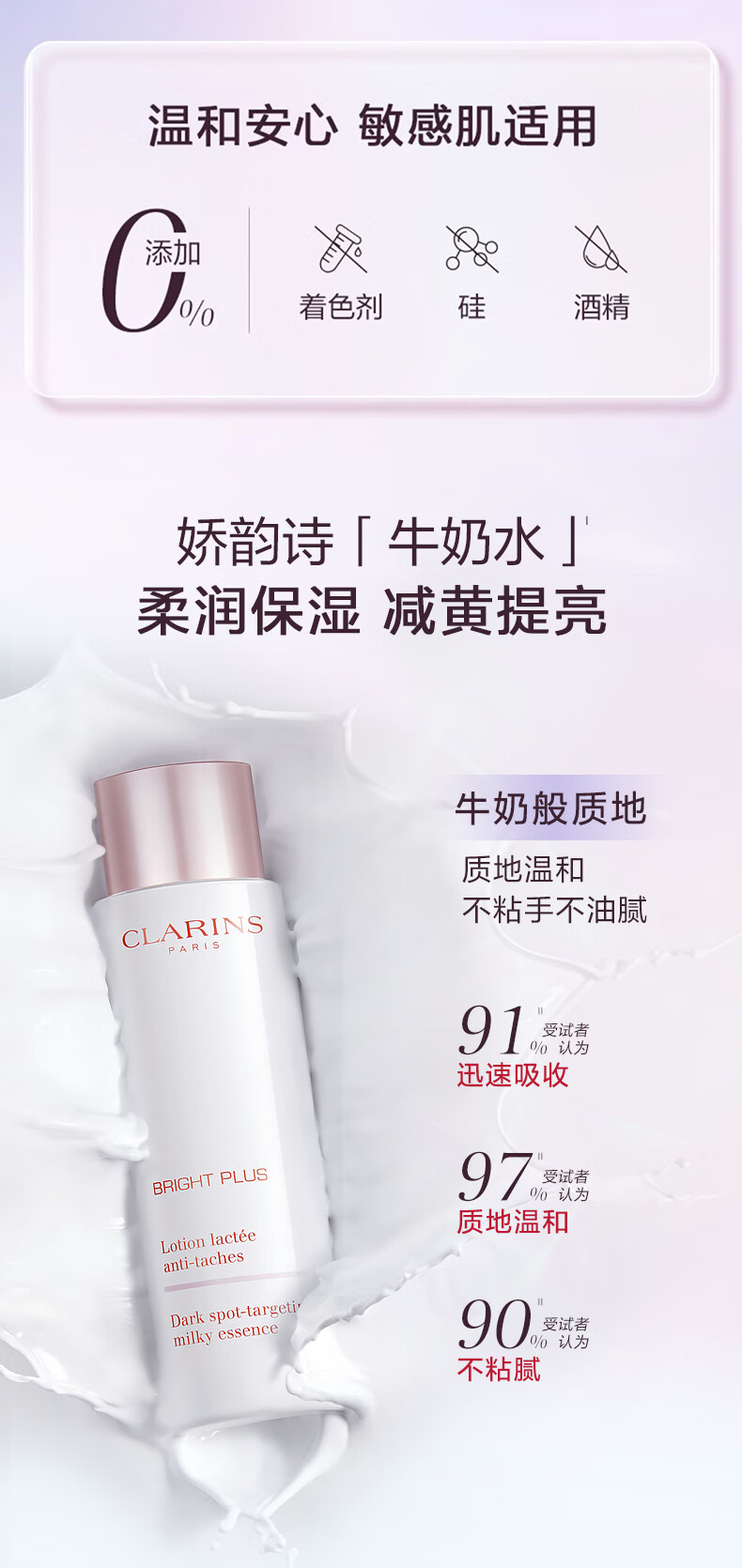 娇韵诗美白牛奶水200ml爽肤水清爽型淡纹保湿提亮护肤品化妆品新年礼物