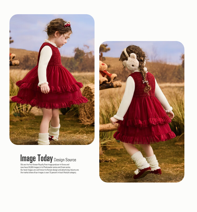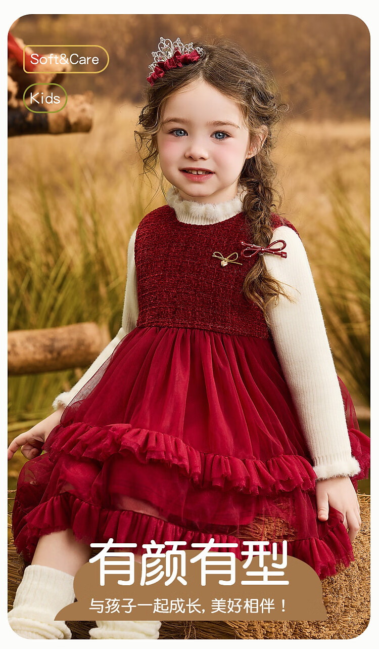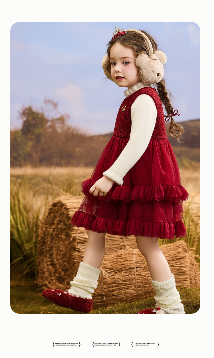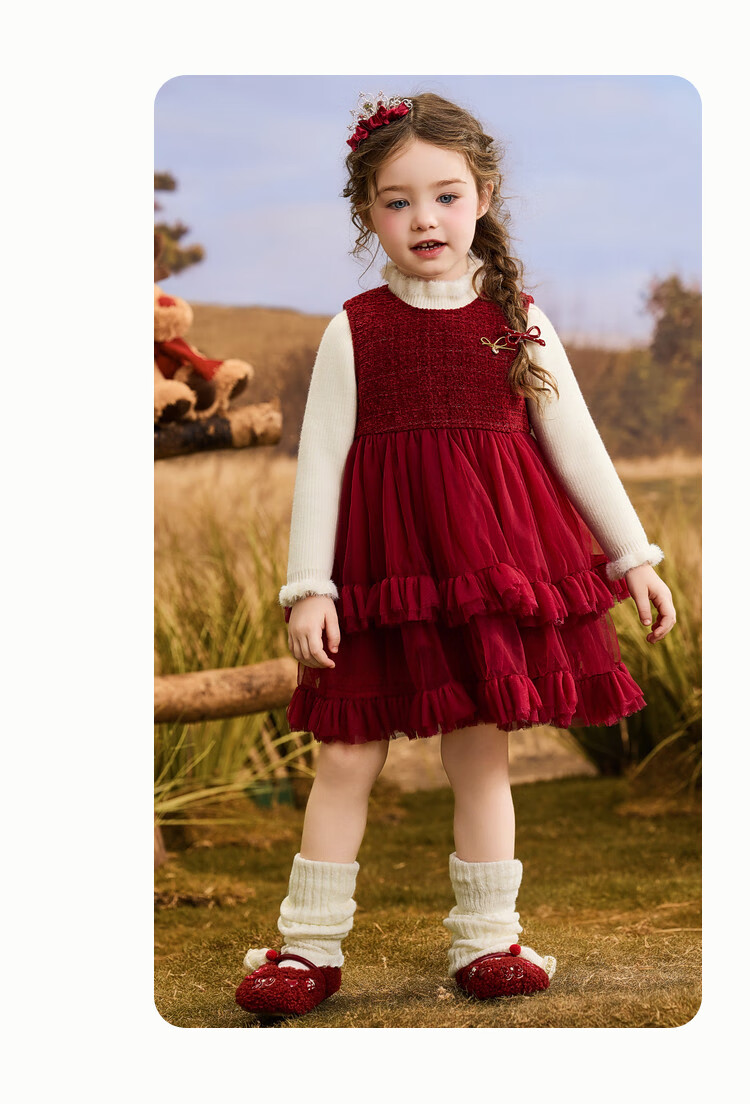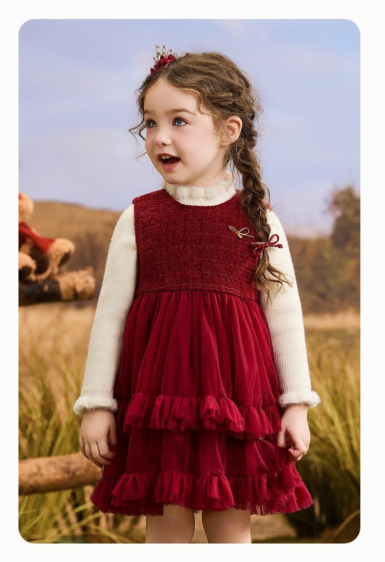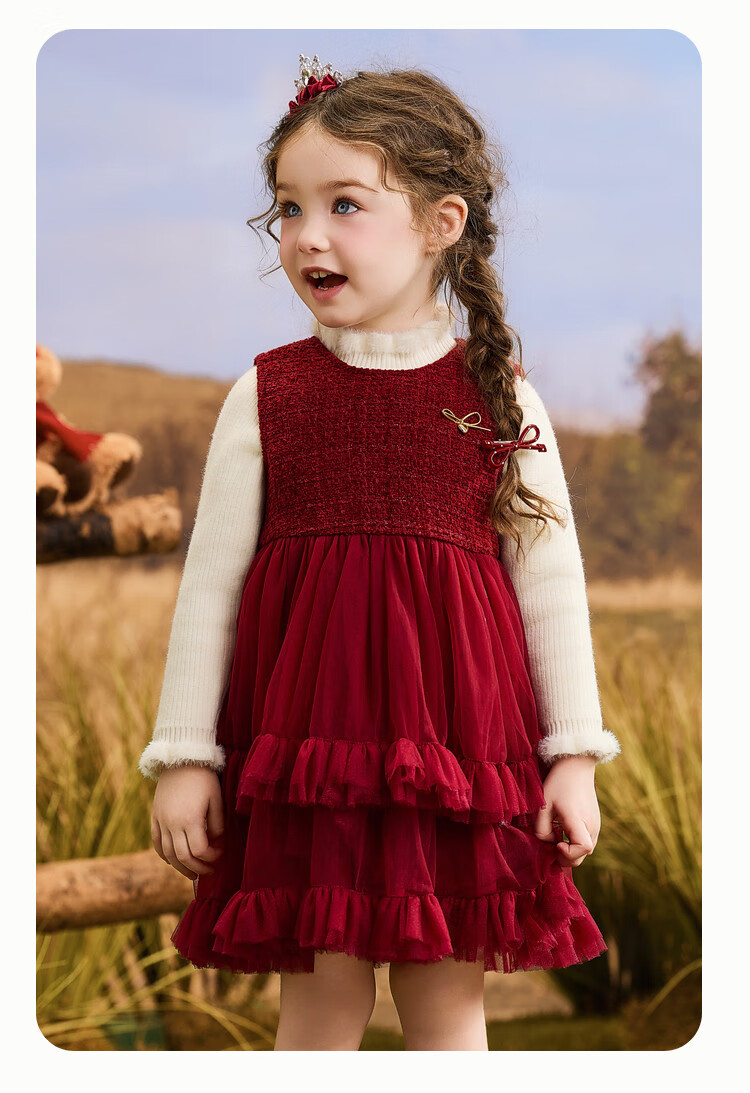 ASK JUNIOR【小香风】儿童连衣裙25冬季小童亮片内里加绒保暖新年背心裙女童