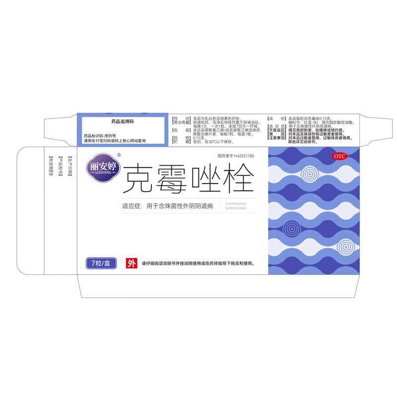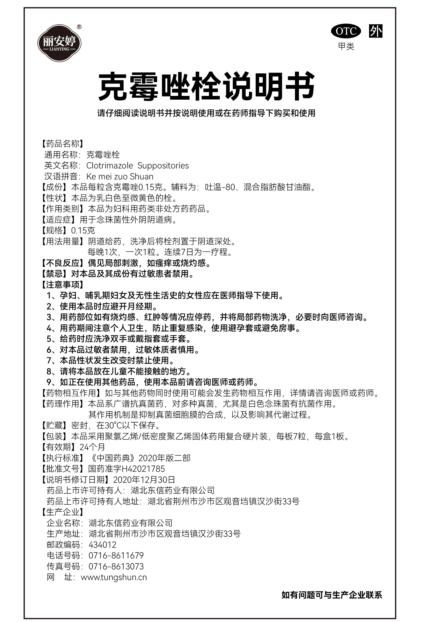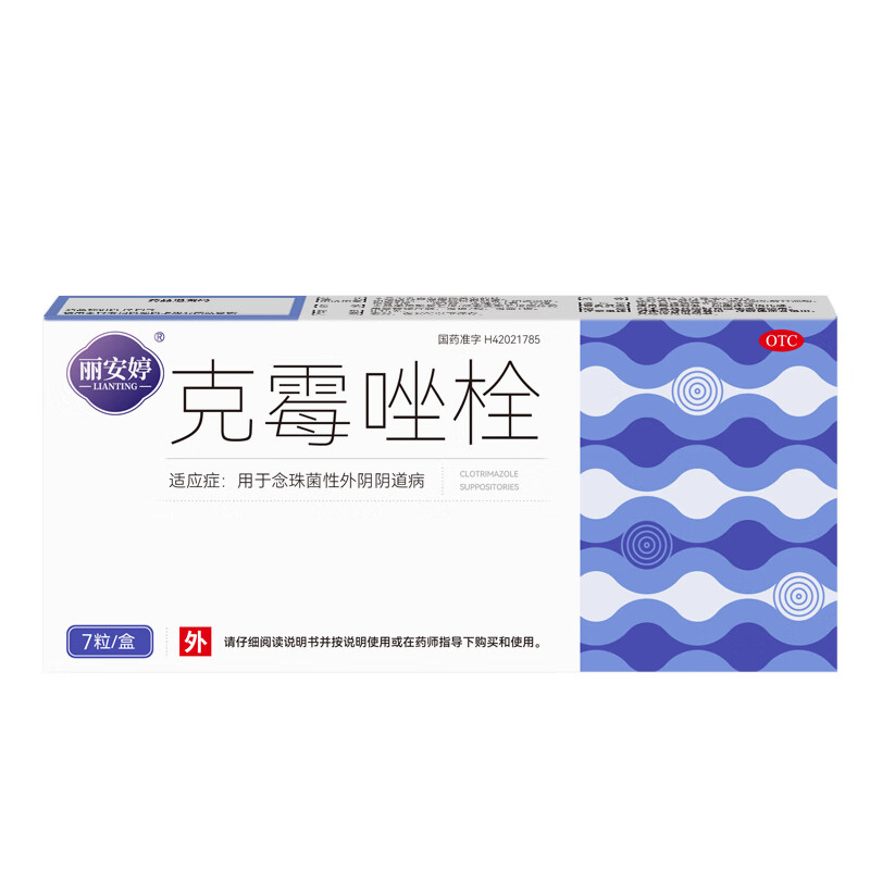 丽安婷 克霉唑栓片0.15g*7粒霉菌性阴道炎阴道栓克霉挫片瘙痒止痒妇科炎症外阴瘙痒私处专科用药正品