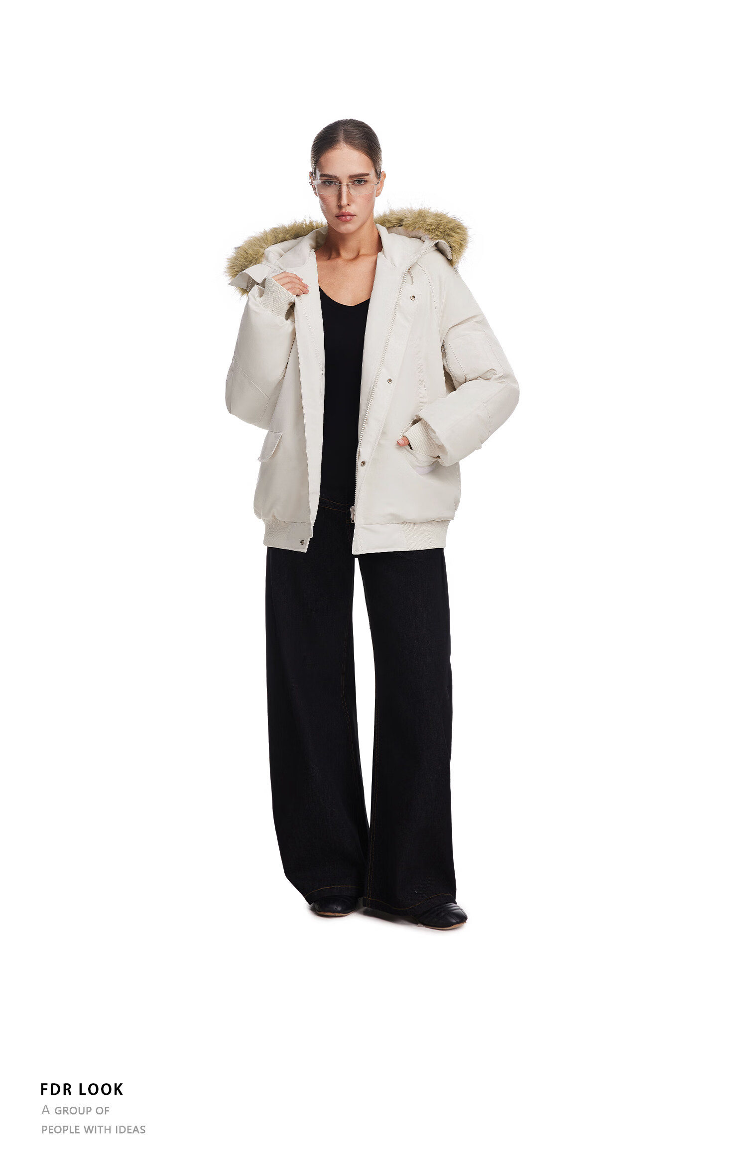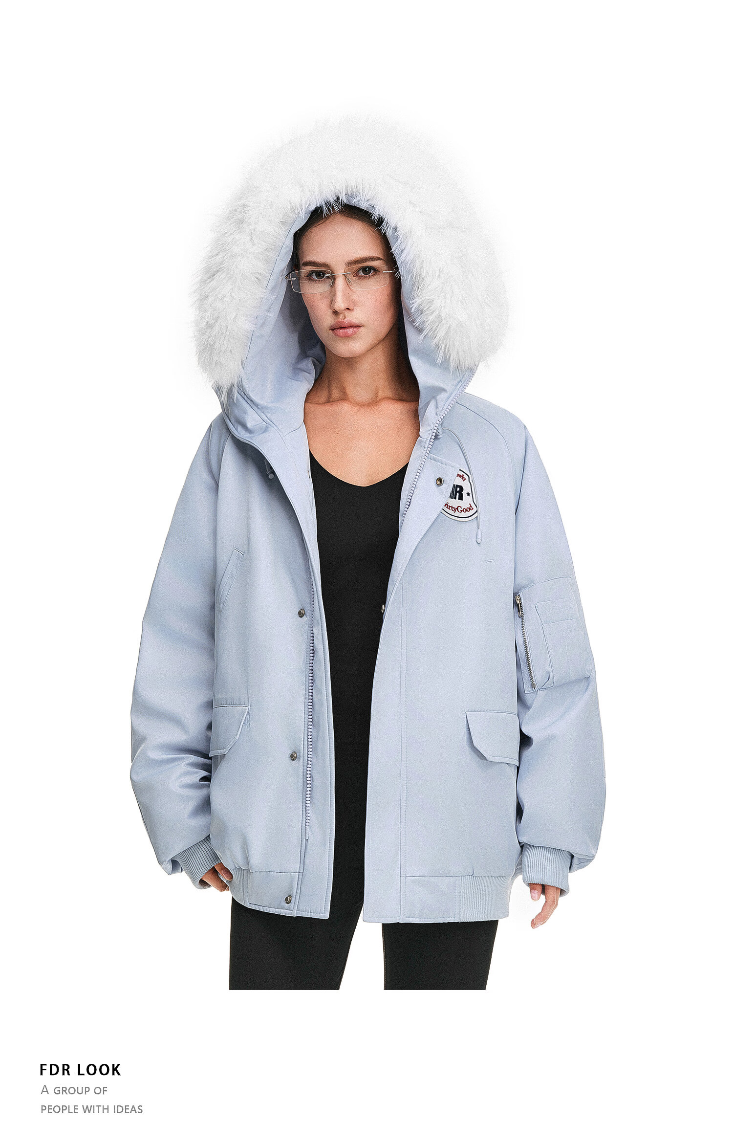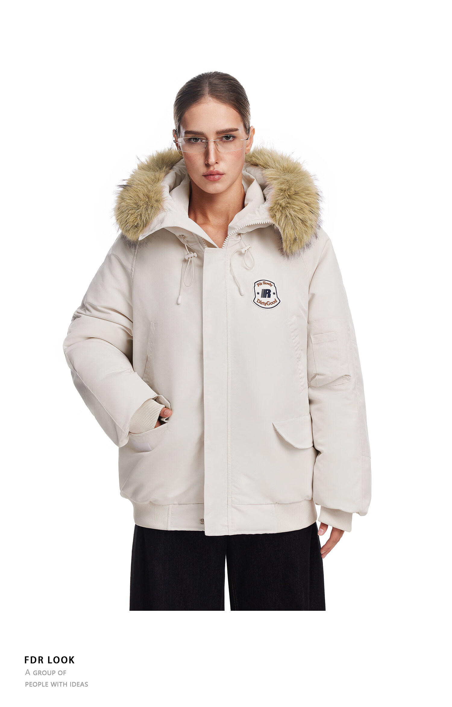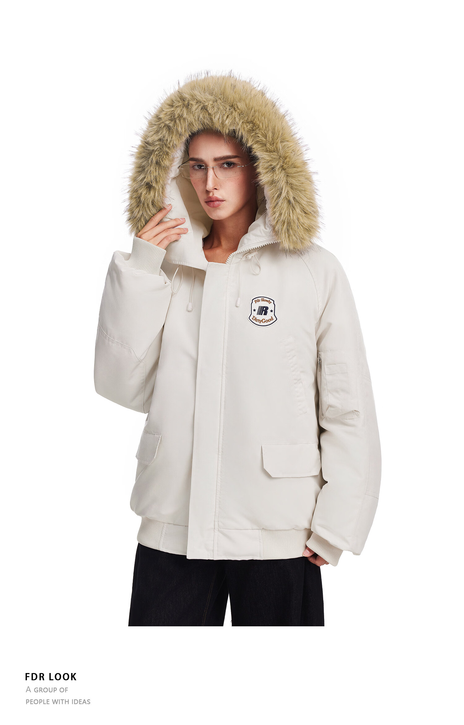 FDR旗舰店 美式毛领棉衣棉服男女秋冬季加厚保暖装外套派克服 米杏色 [毛领可拆卸] L