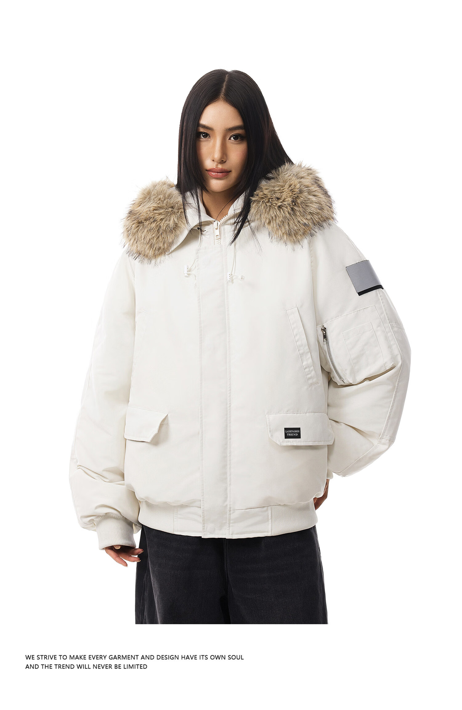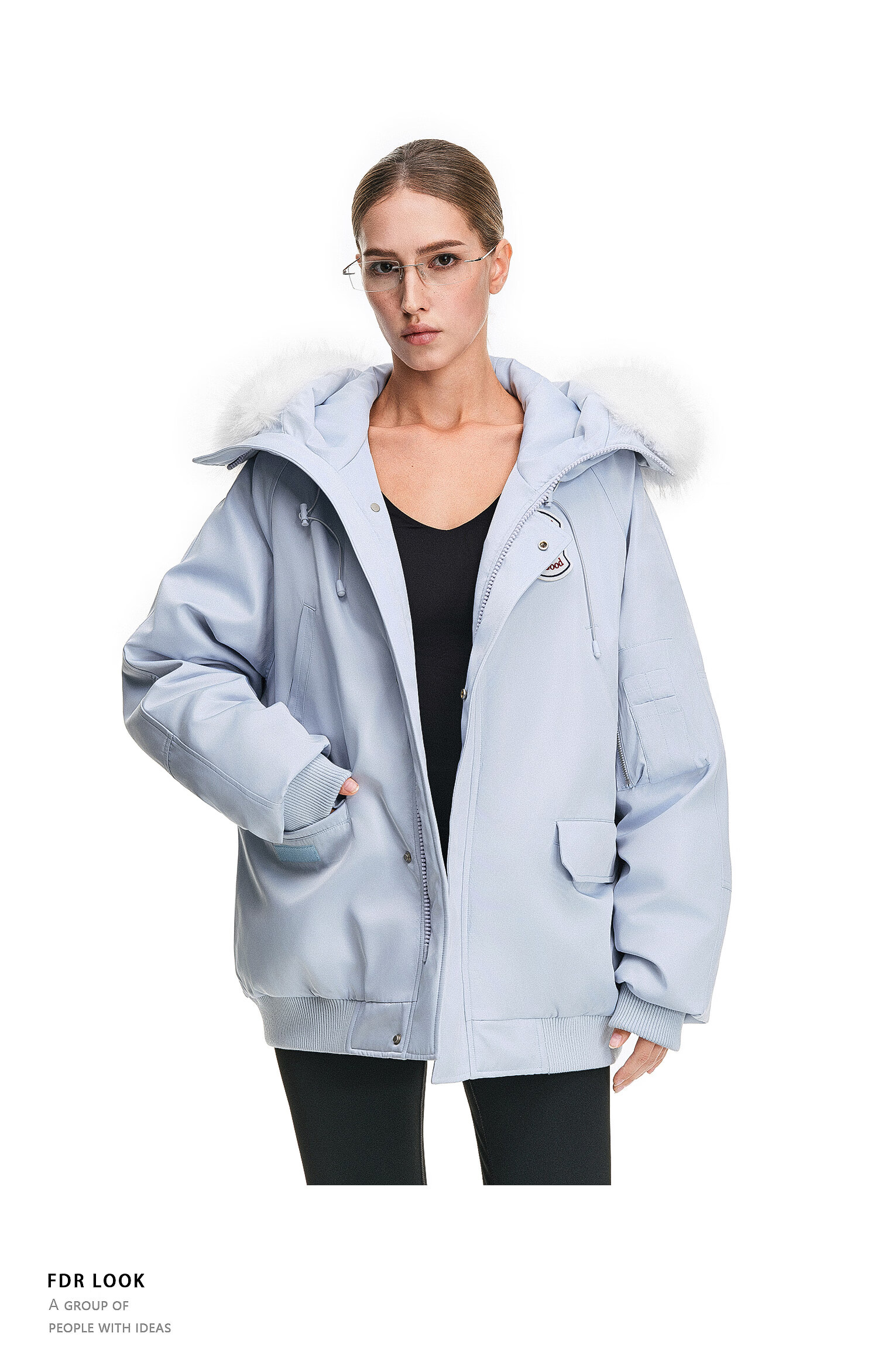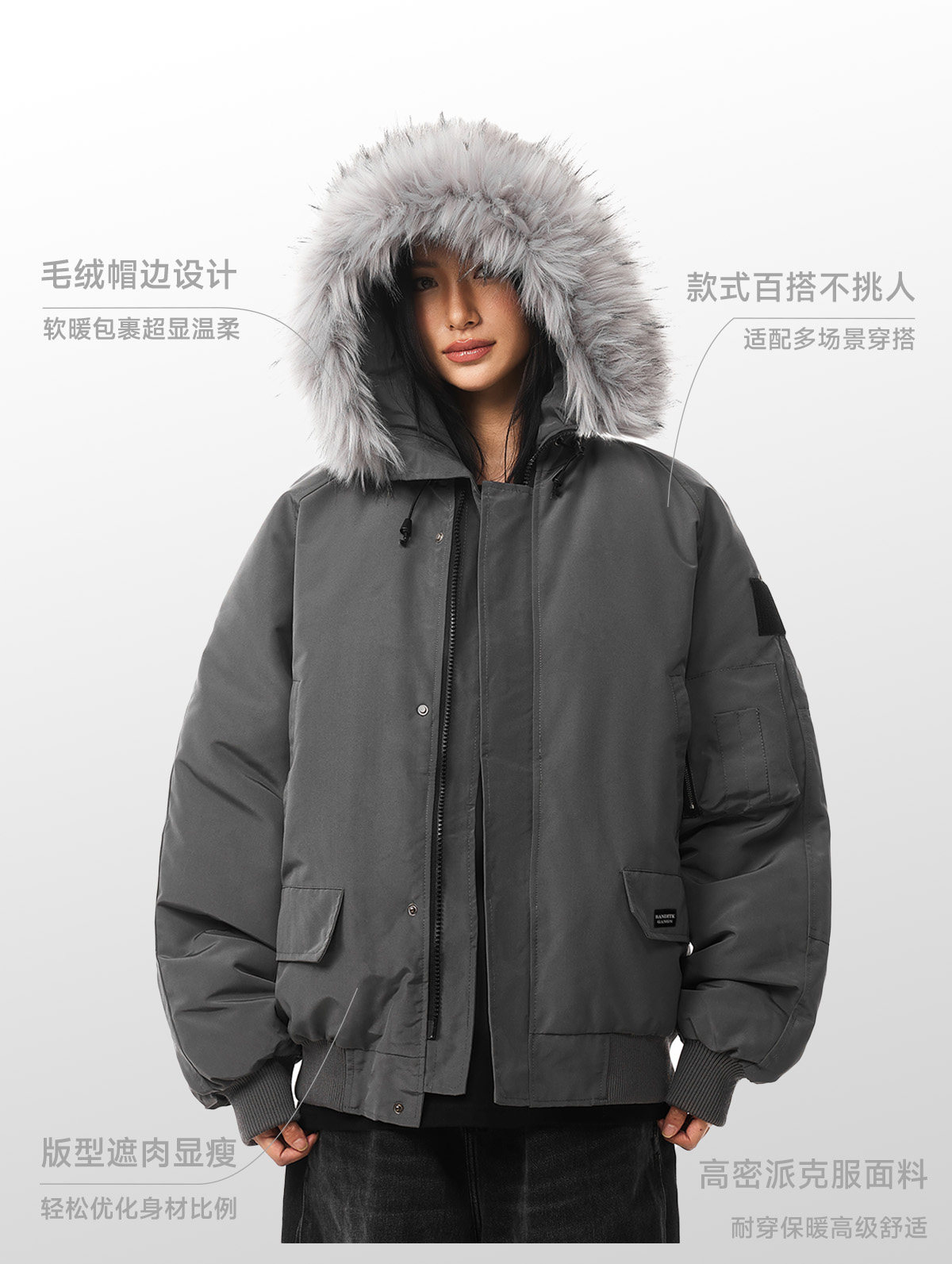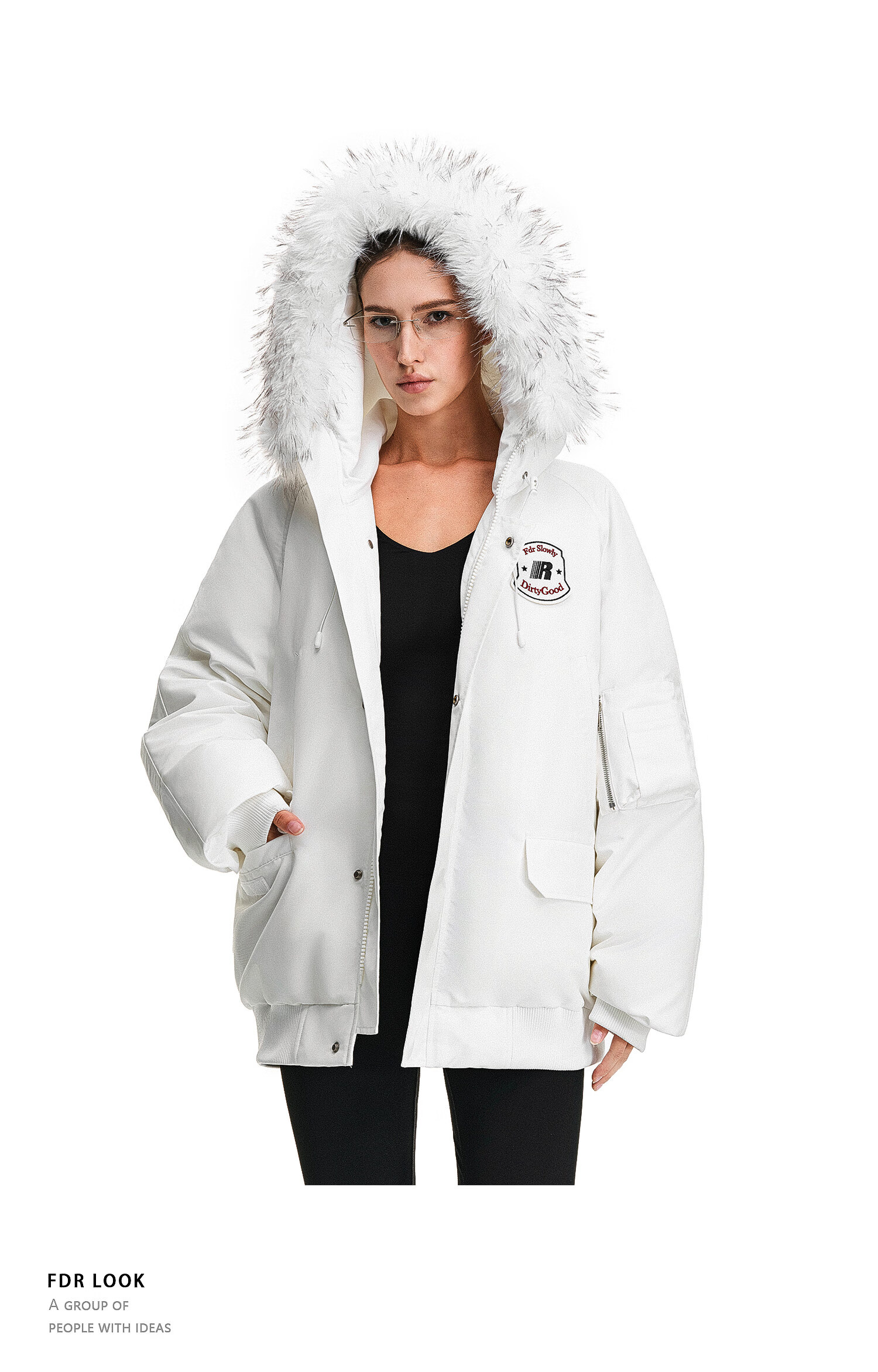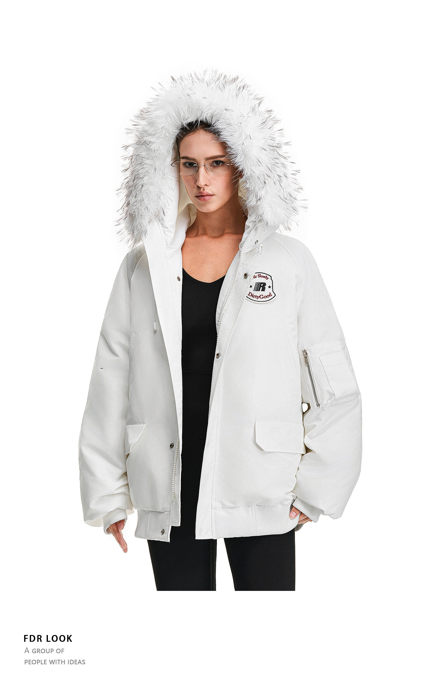 FDR旗舰店 美式毛领棉衣棉服男女秋冬季加厚保暖装外套派克服 米杏色 [毛领可拆卸] L