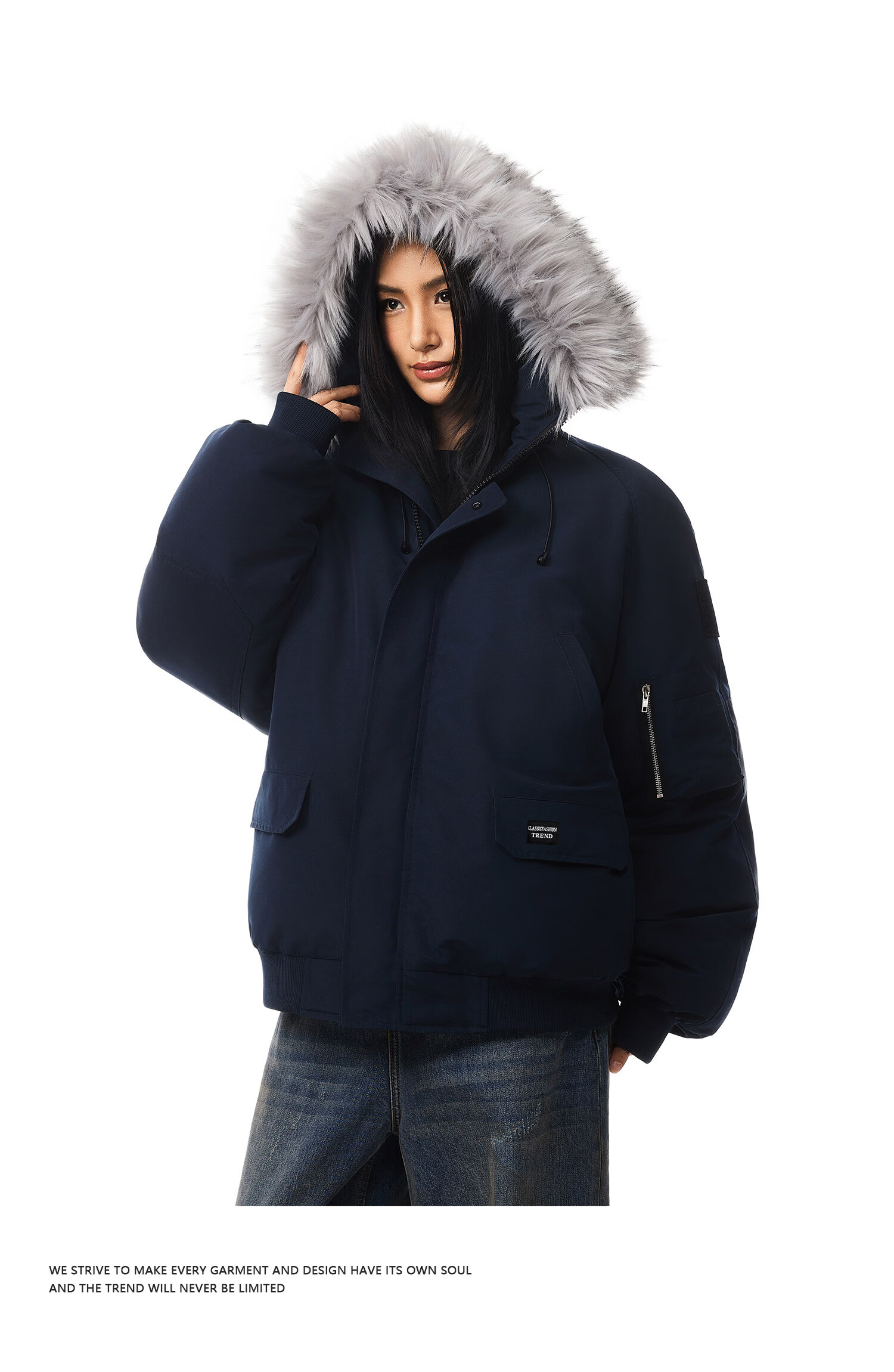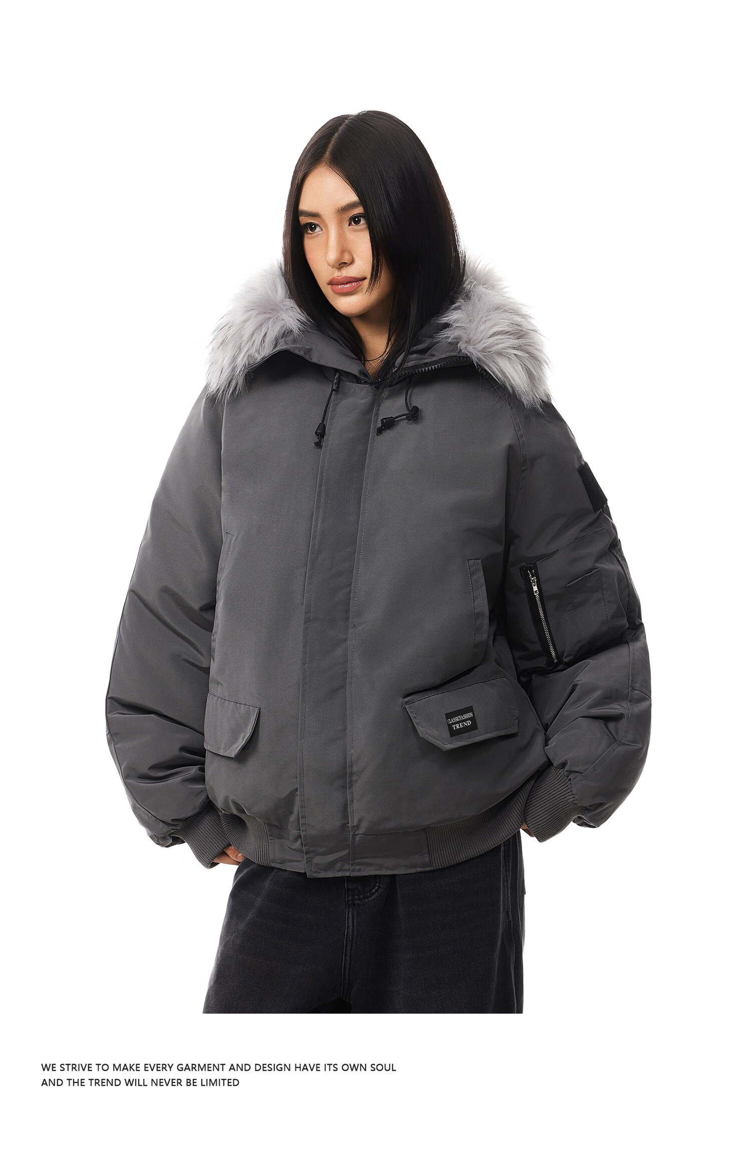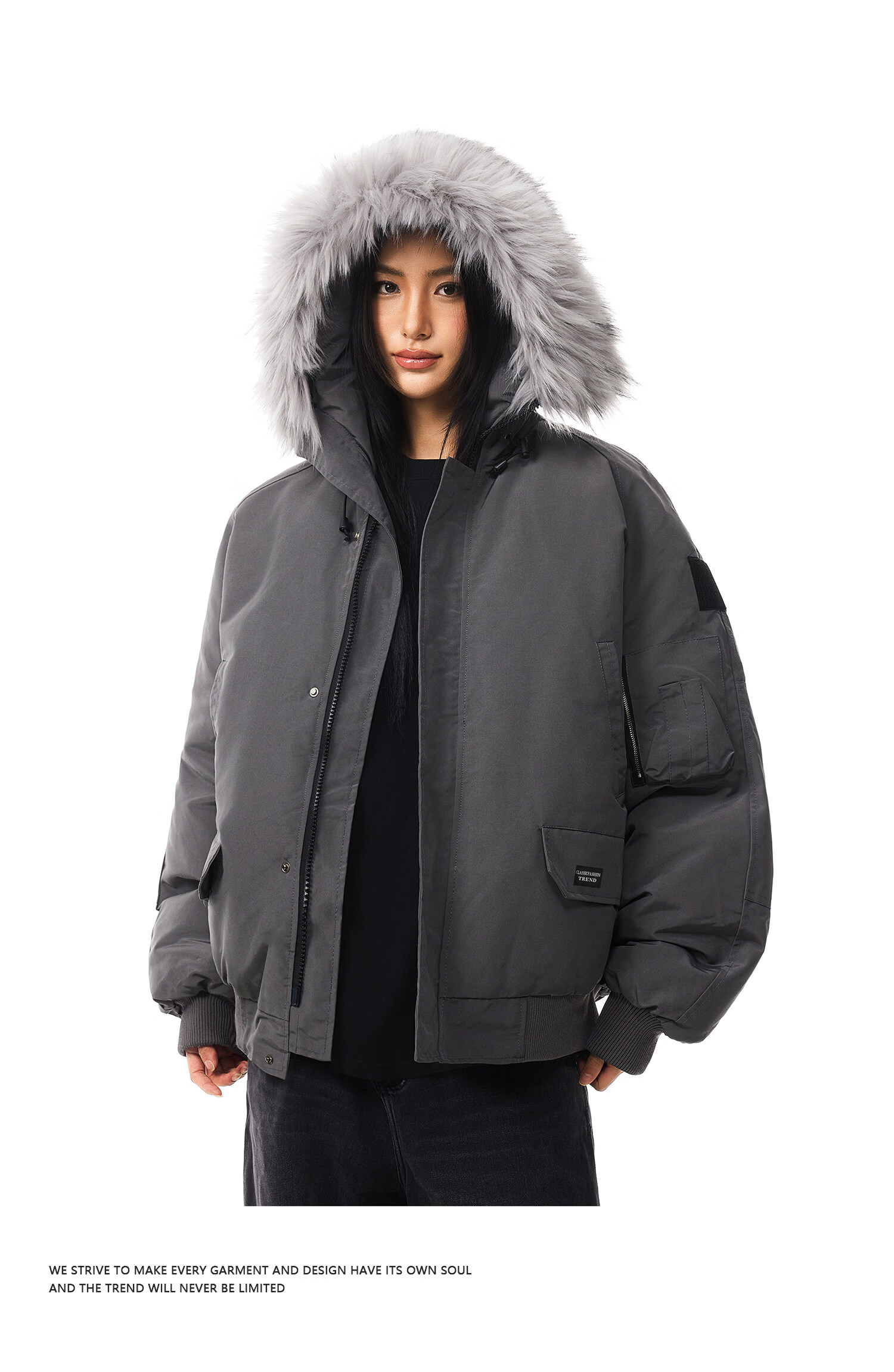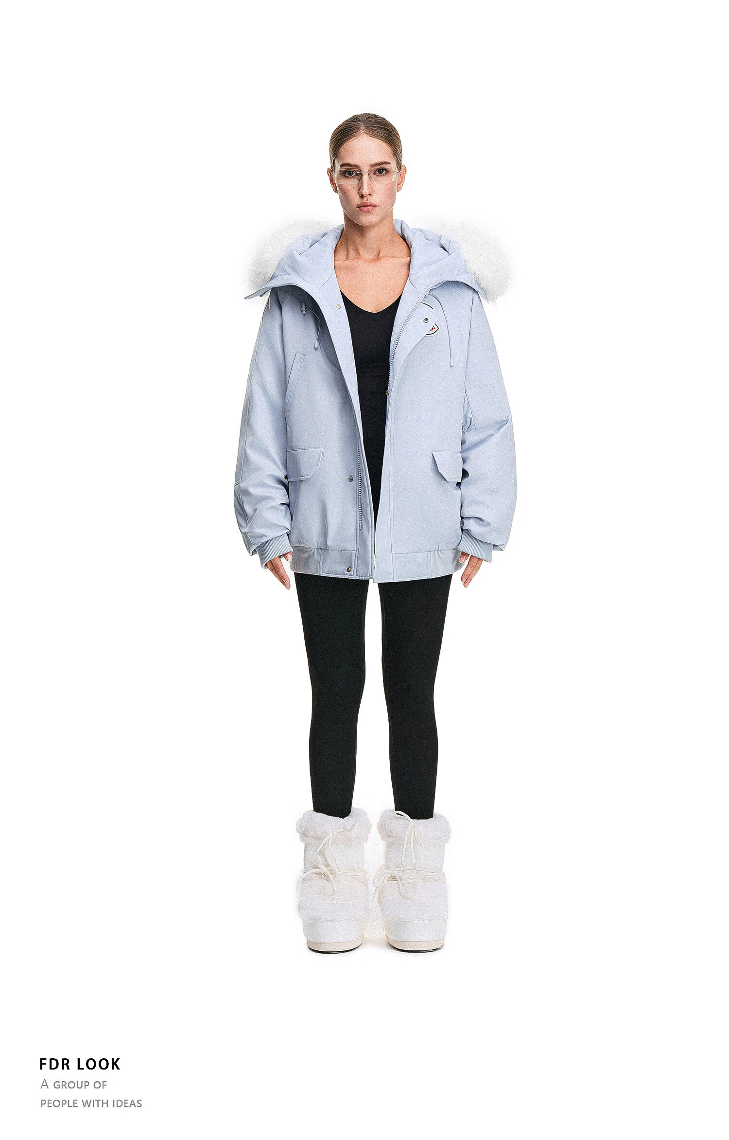 FDR旗舰店 美式毛领棉衣棉服男女秋冬季加厚保暖装外套派克服 米杏色 [毛领可拆卸] L