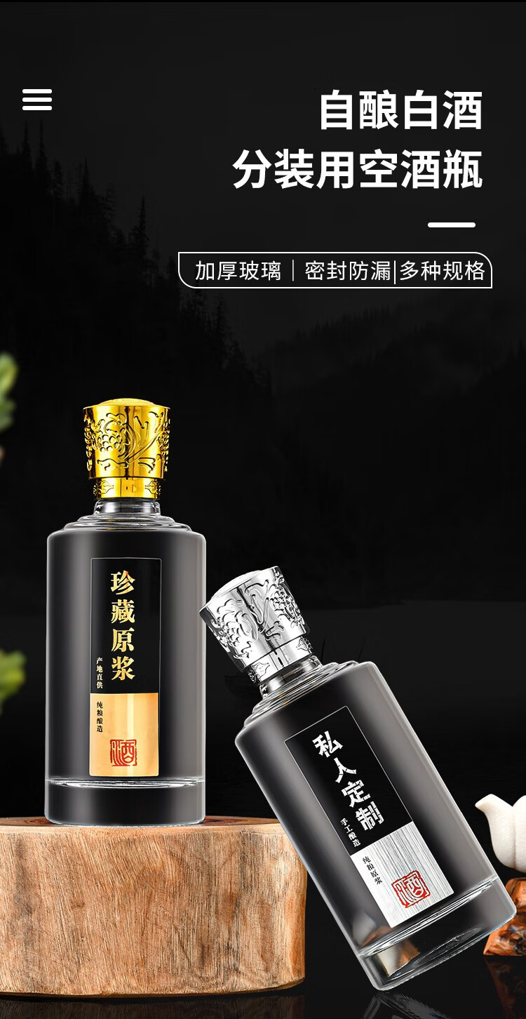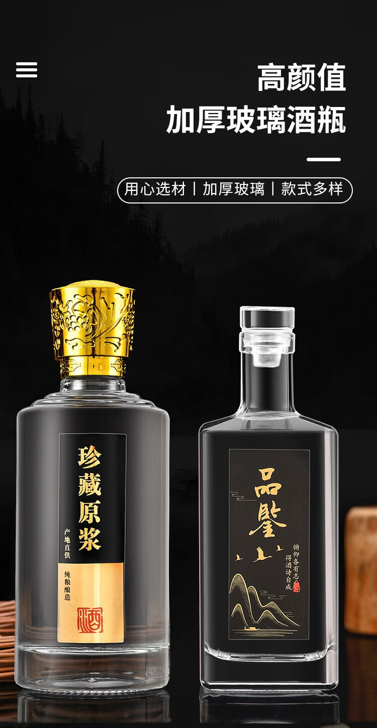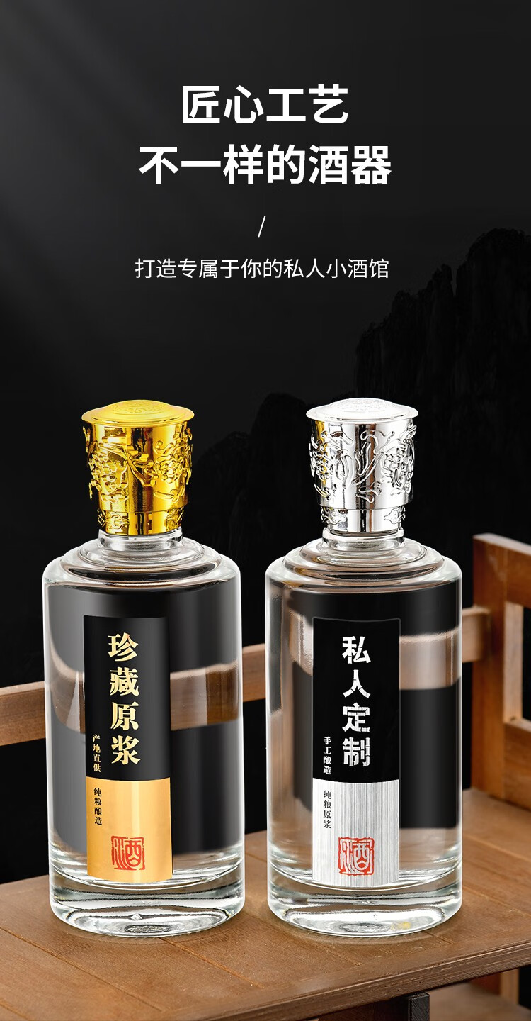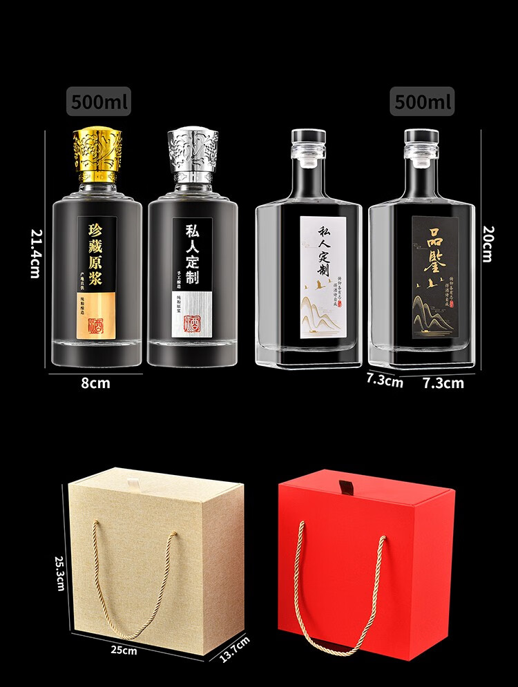 京婉高端定制玻璃白酒瓶空瓶一斤装自酿好看的酒瓶子密封家用礼盒包装 高款金盖牛皮6瓶装 500ml