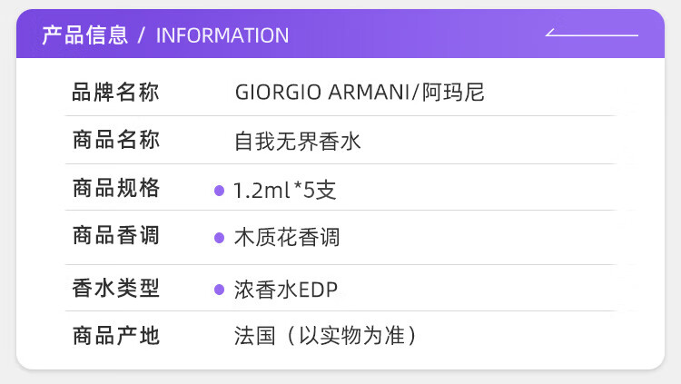 阿玛尼(ARMANI)自我无界香水1.2ml*5支装【临期清仓】