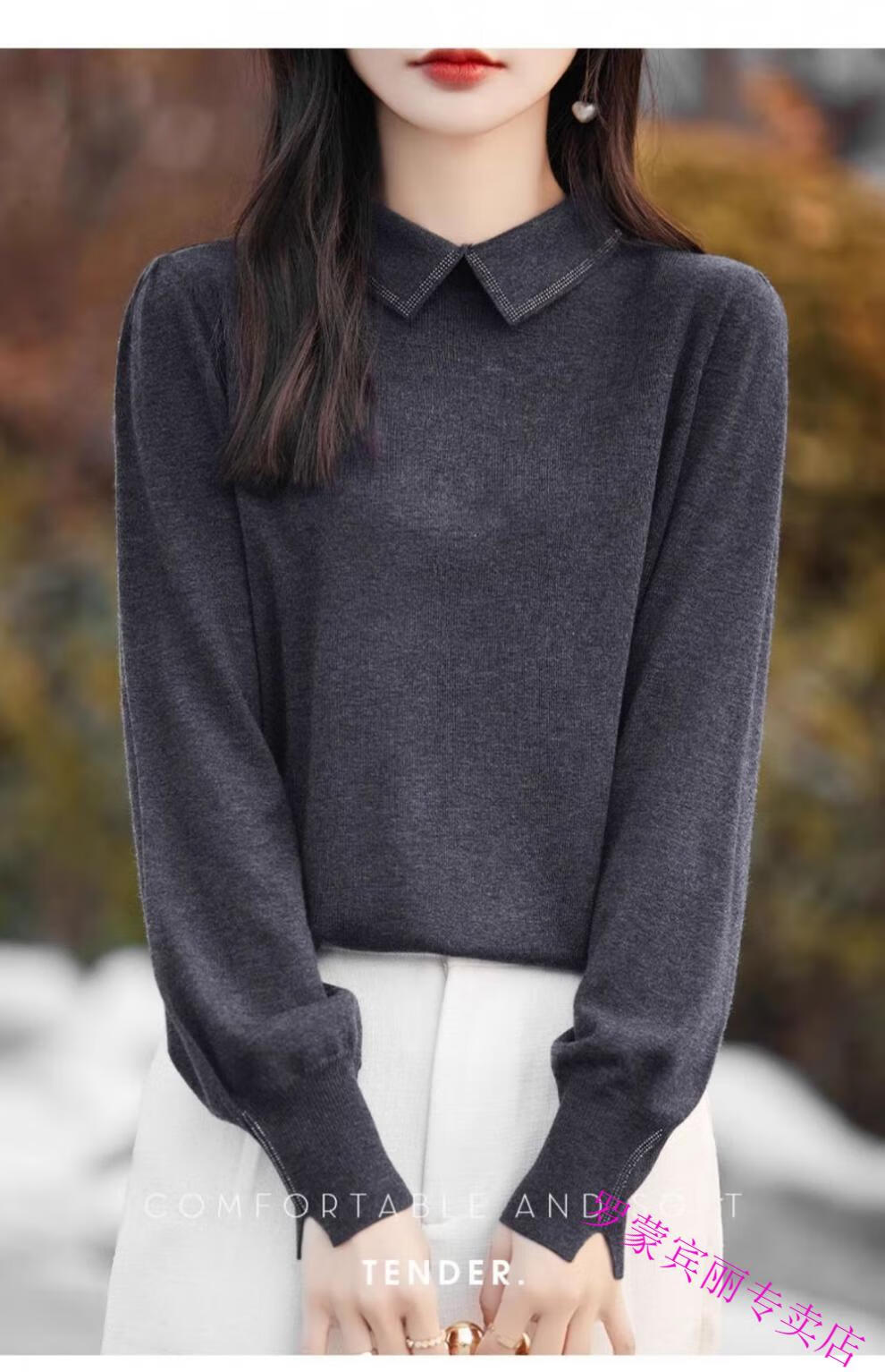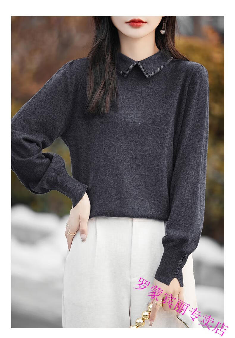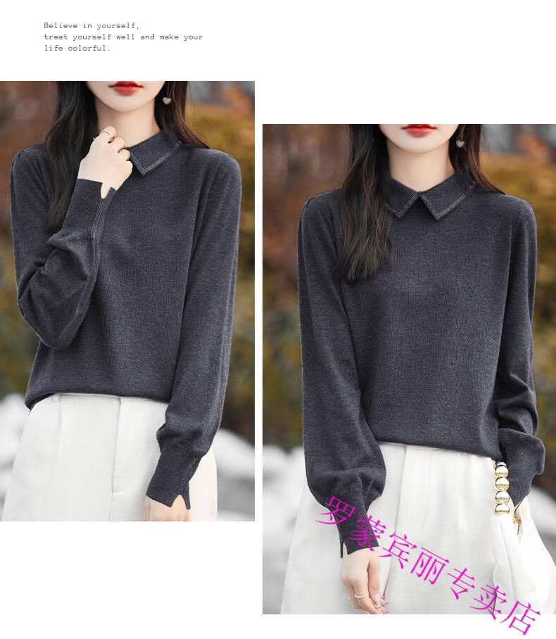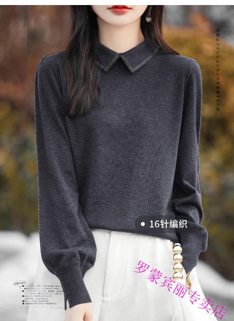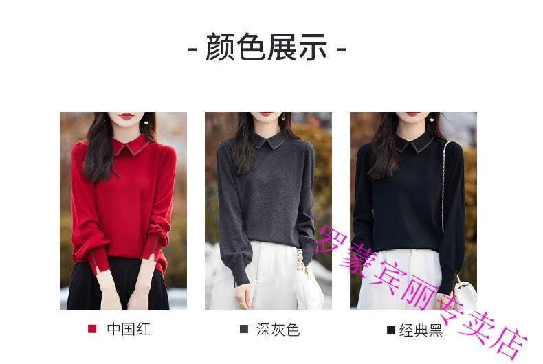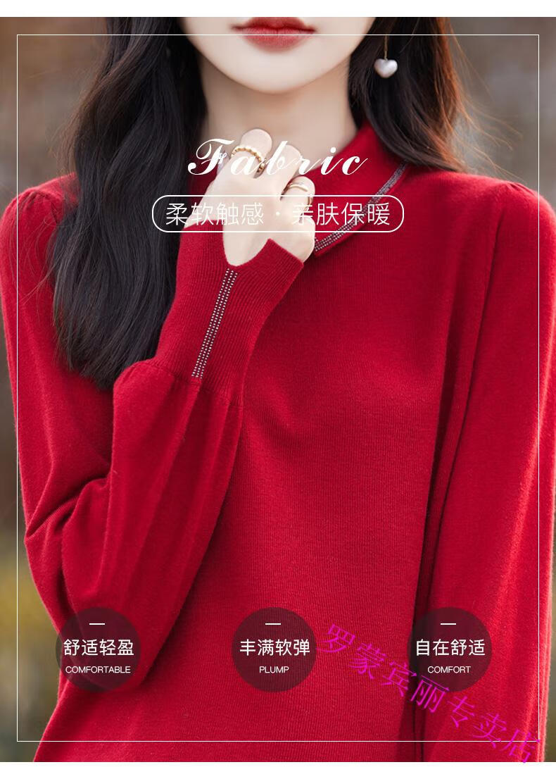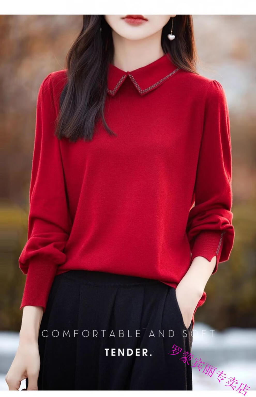 罗蒙(ROMON)纯羊毛衫烫钻翻领红色毛衣女春秋冬新款本命年衣服大码针织打底衫 100%羊毛绒-中国红-女装十大品牌 XL (115-130斤)