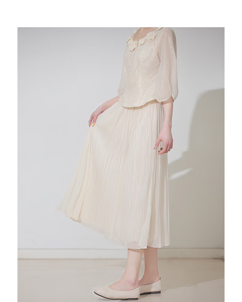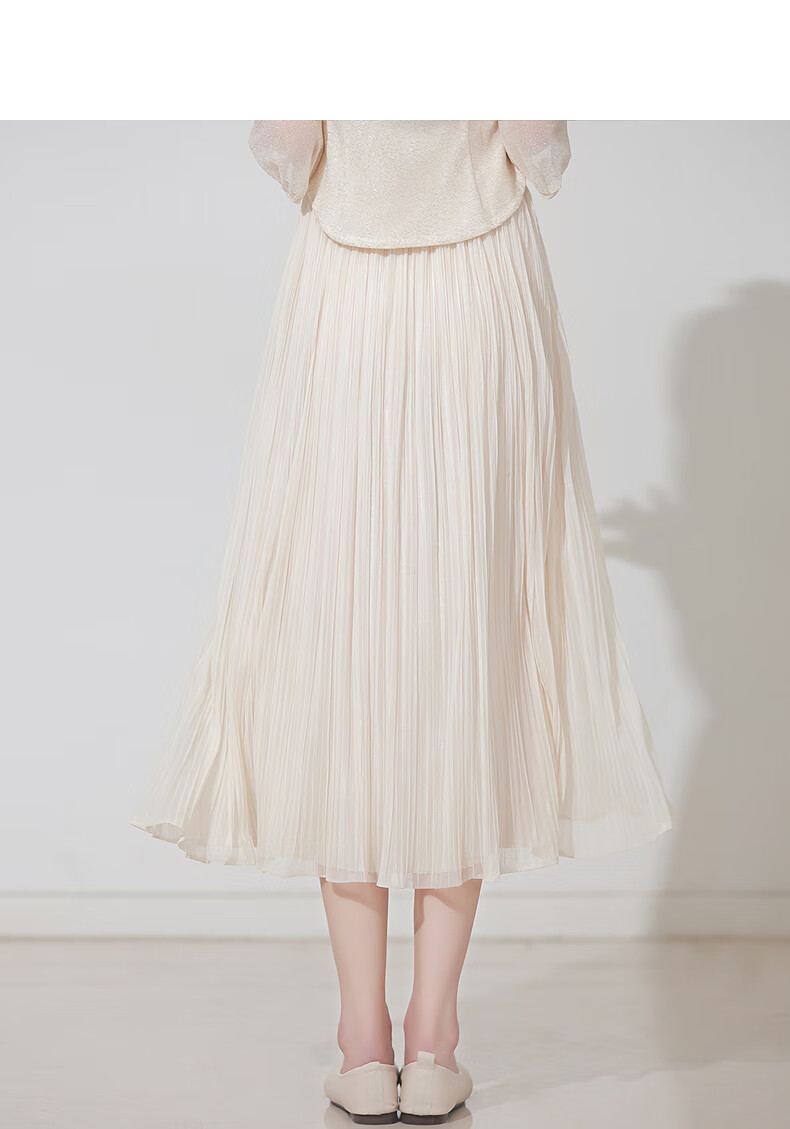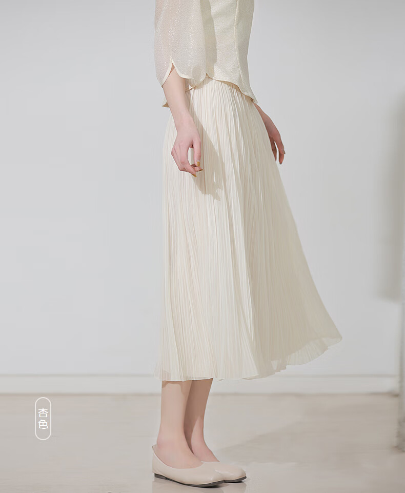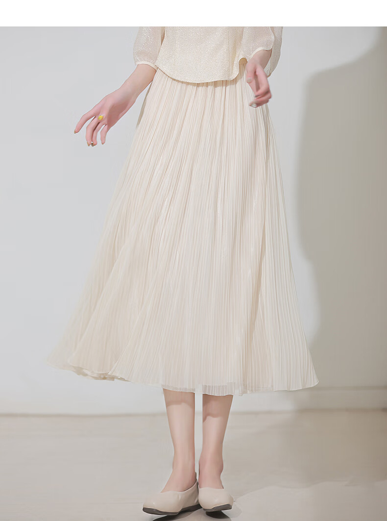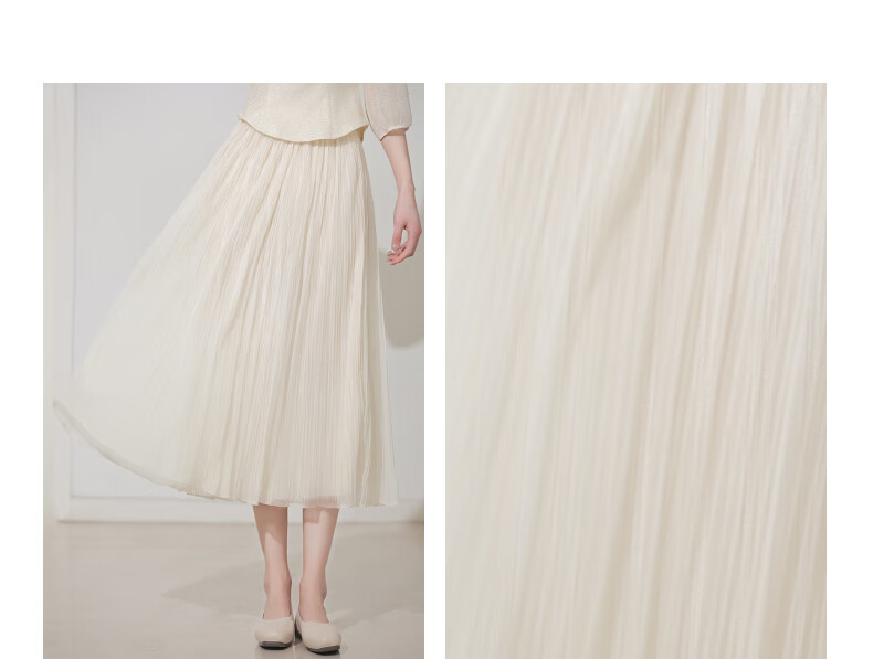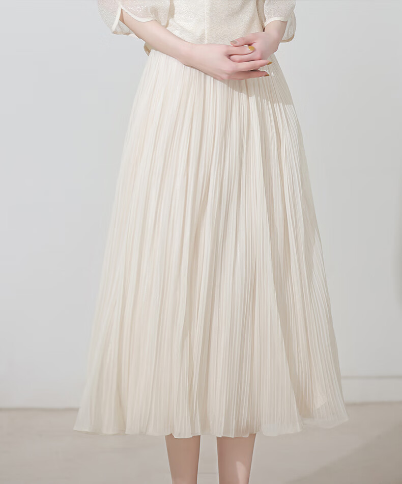 烟花燙2025秋装新款小个子清新杏色网纱裙a字百褶裙半身裙SD 帆晖 杏色 M