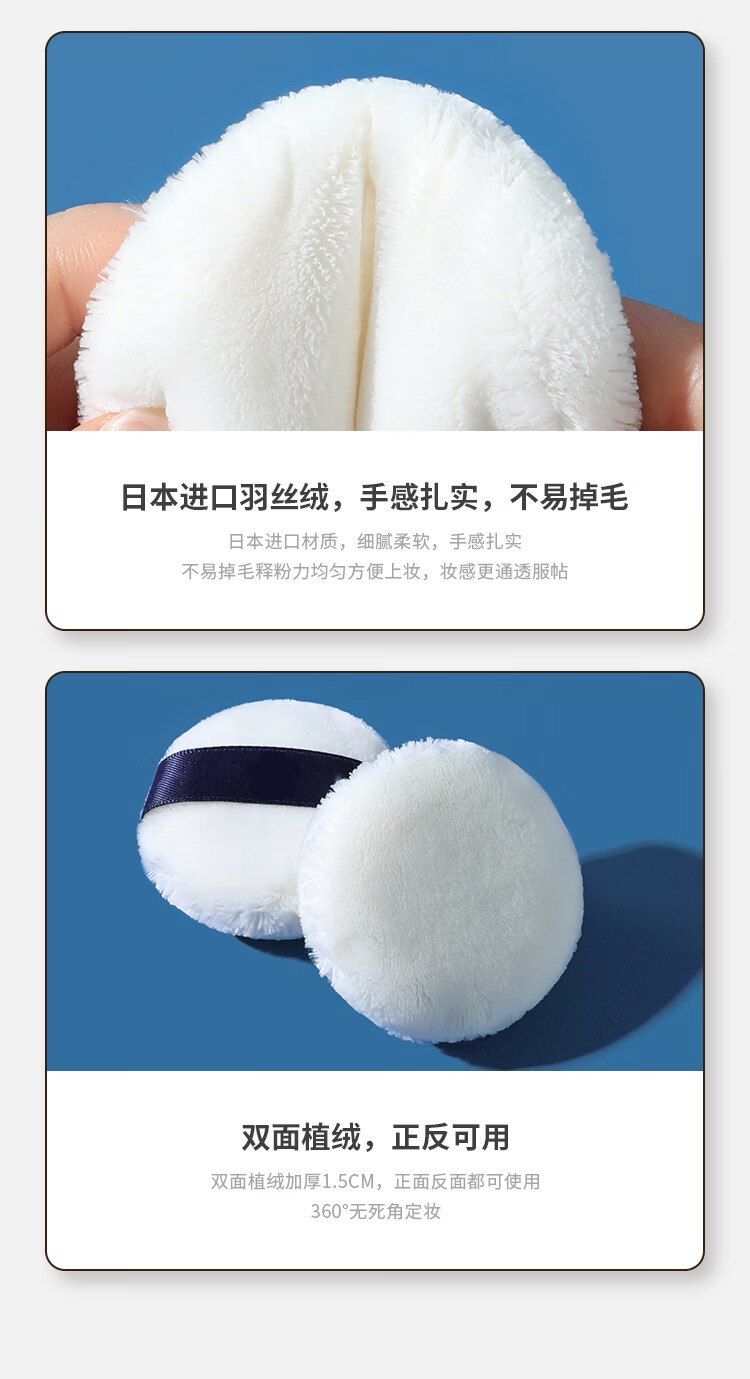 进口立绒超软植绒散粉扑定妆工具粉饼气垫美妆粉底不吃粉 进口立绒长毛粉扑小号【带盒子】 2个 直径5.5cm