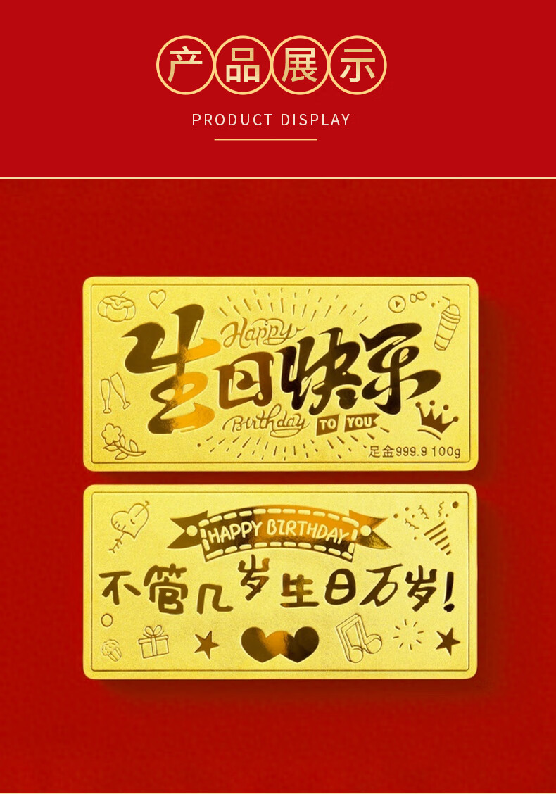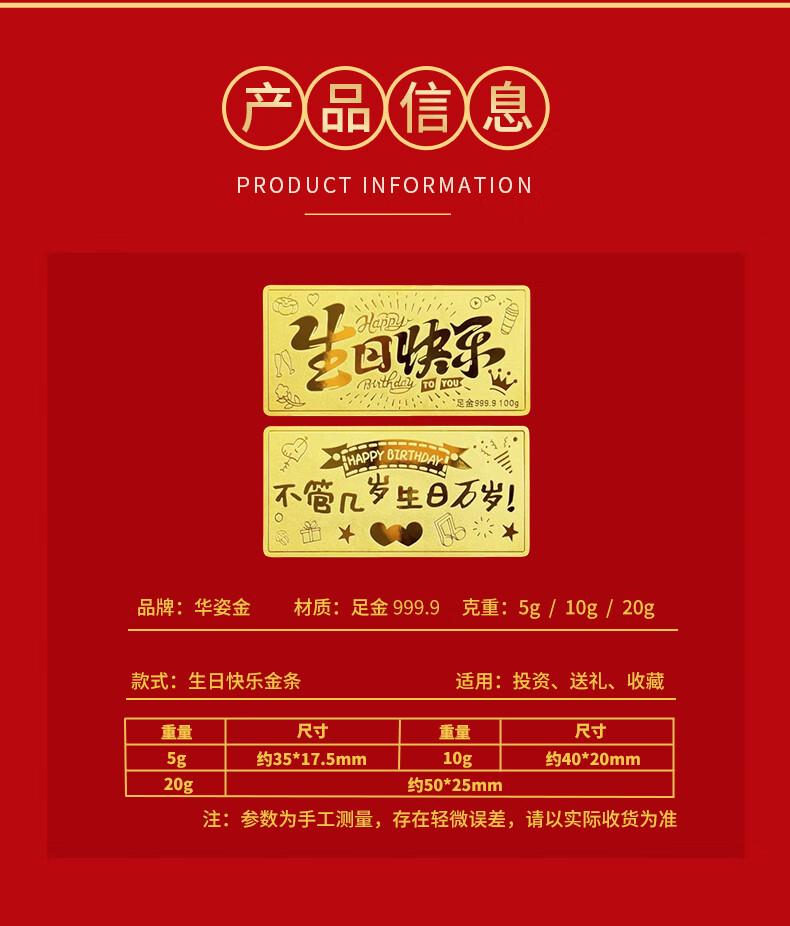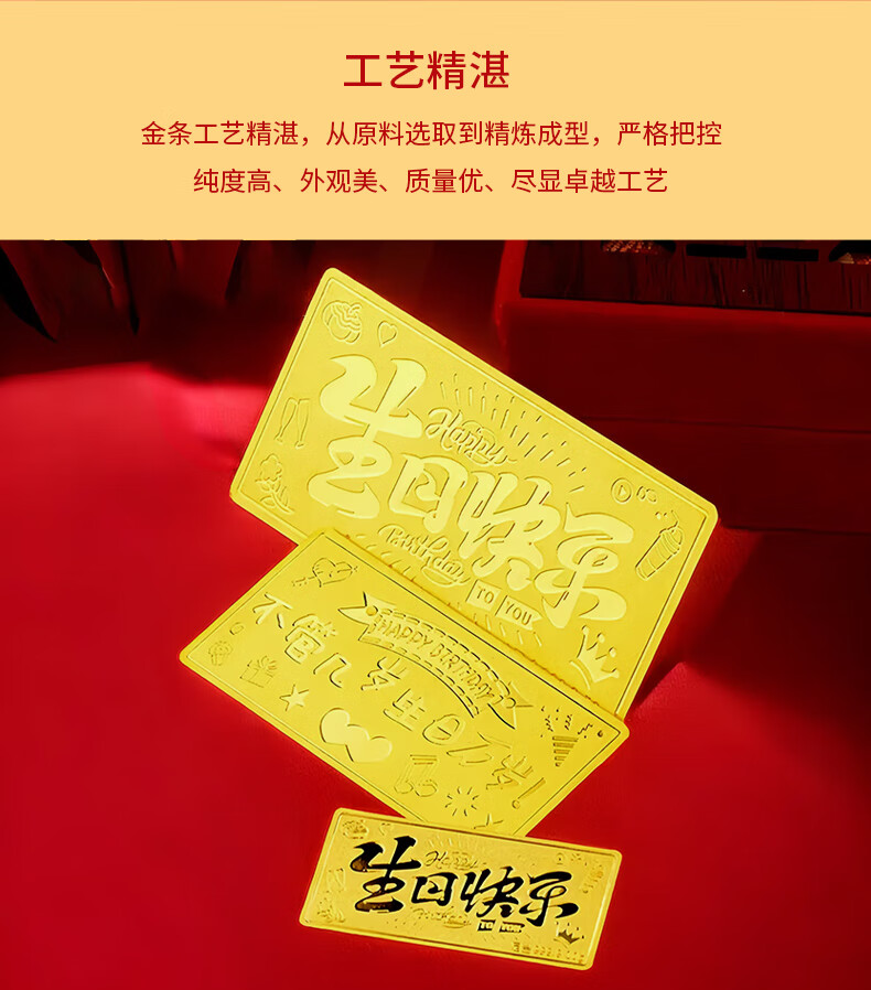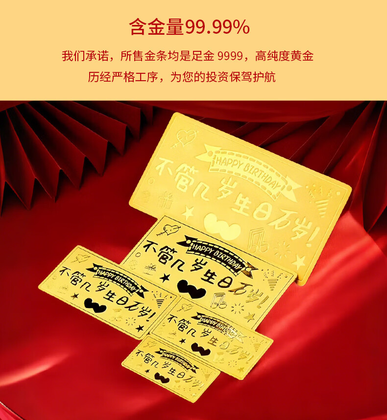 华姿金生日快乐金条足金9999投资储值送礼收藏黄金生日礼物女 生日快乐【国检证书+绒布袋】 5g