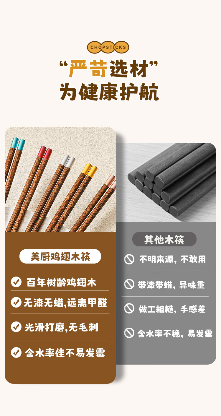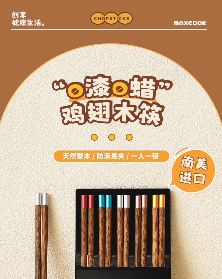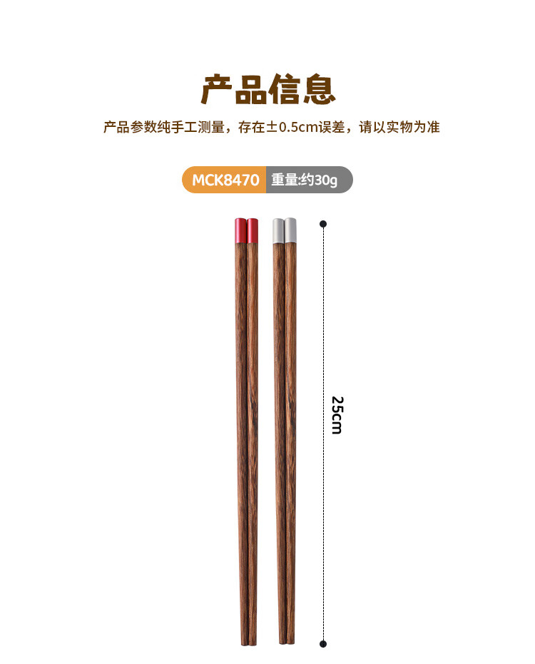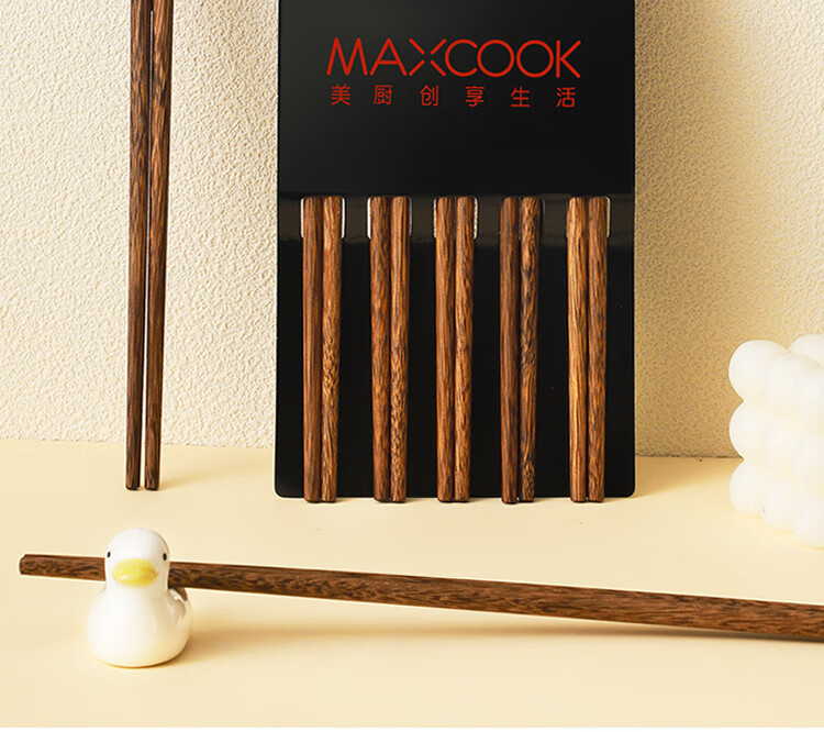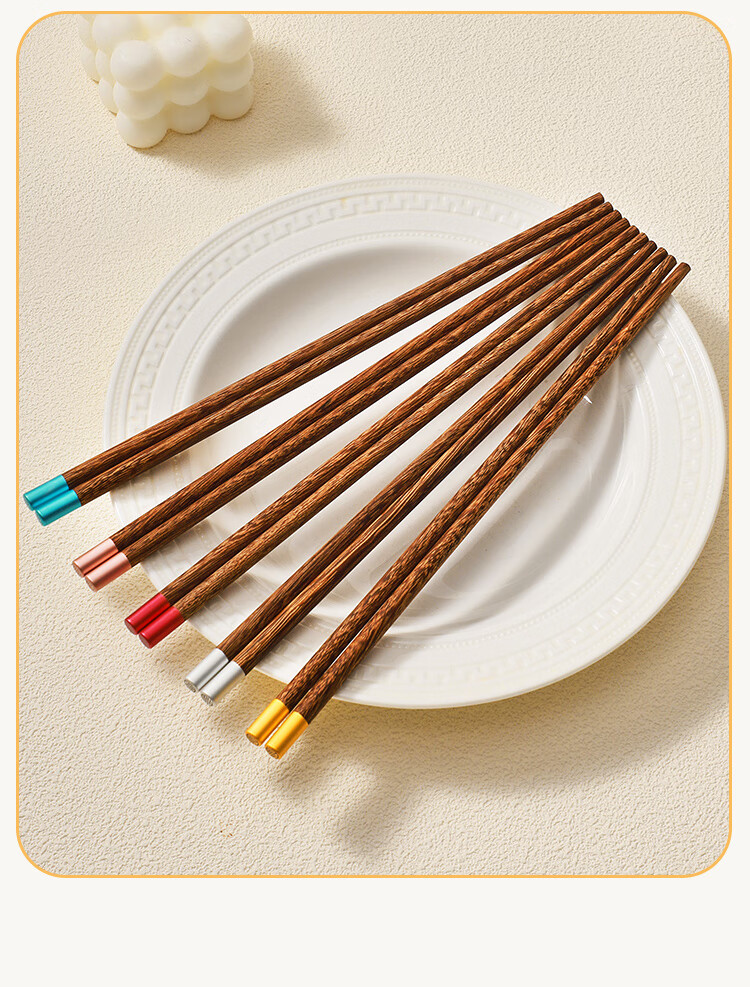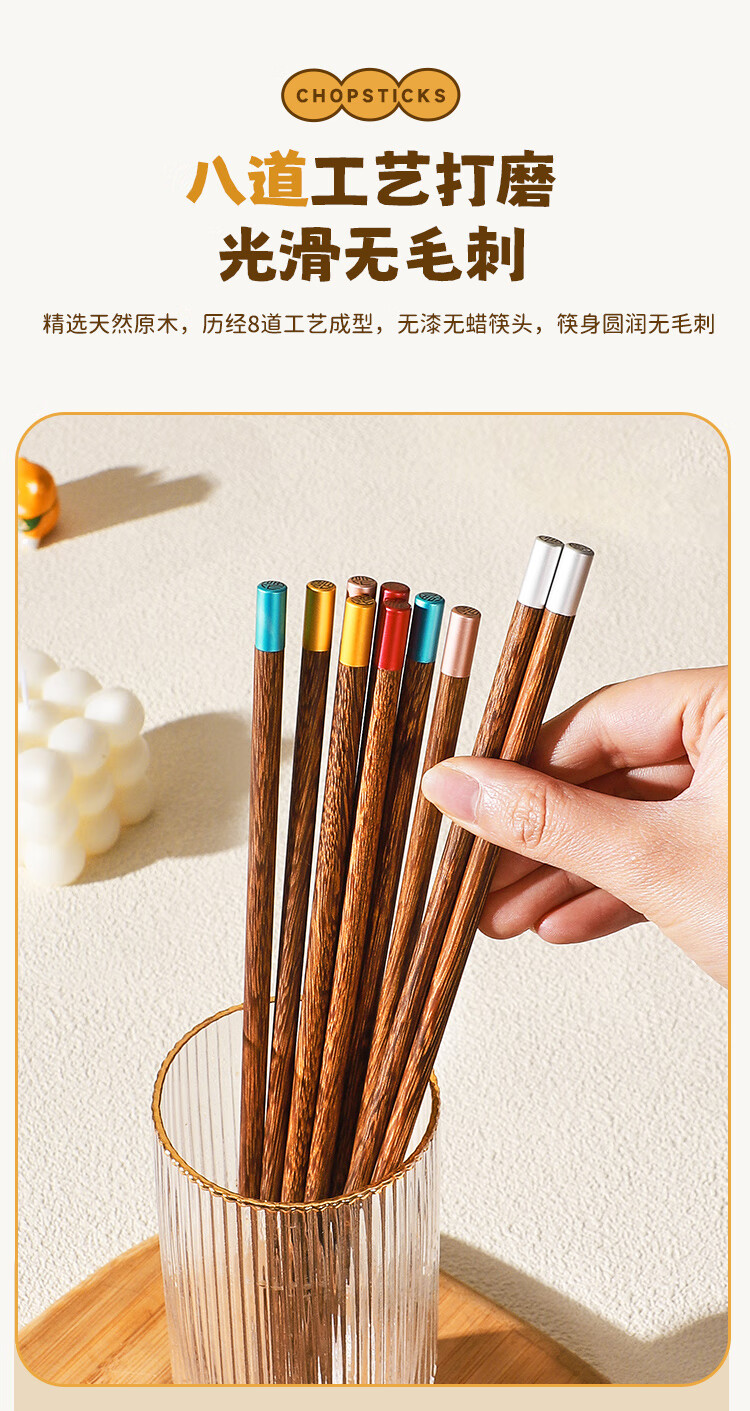 美厨(MAXCOOK)筷子木筷 分色筷天然家用鸡翅木筷子 筷子金福圆筷5双MCK8562