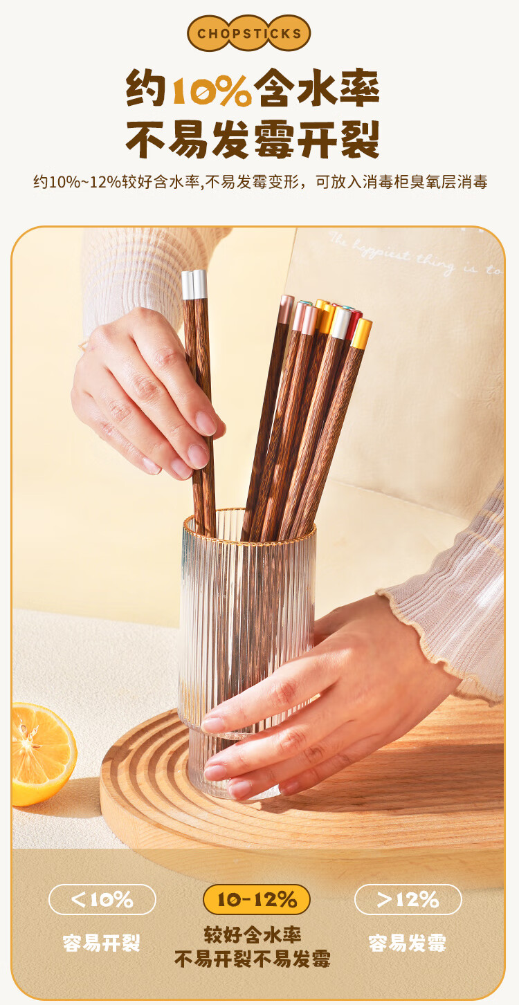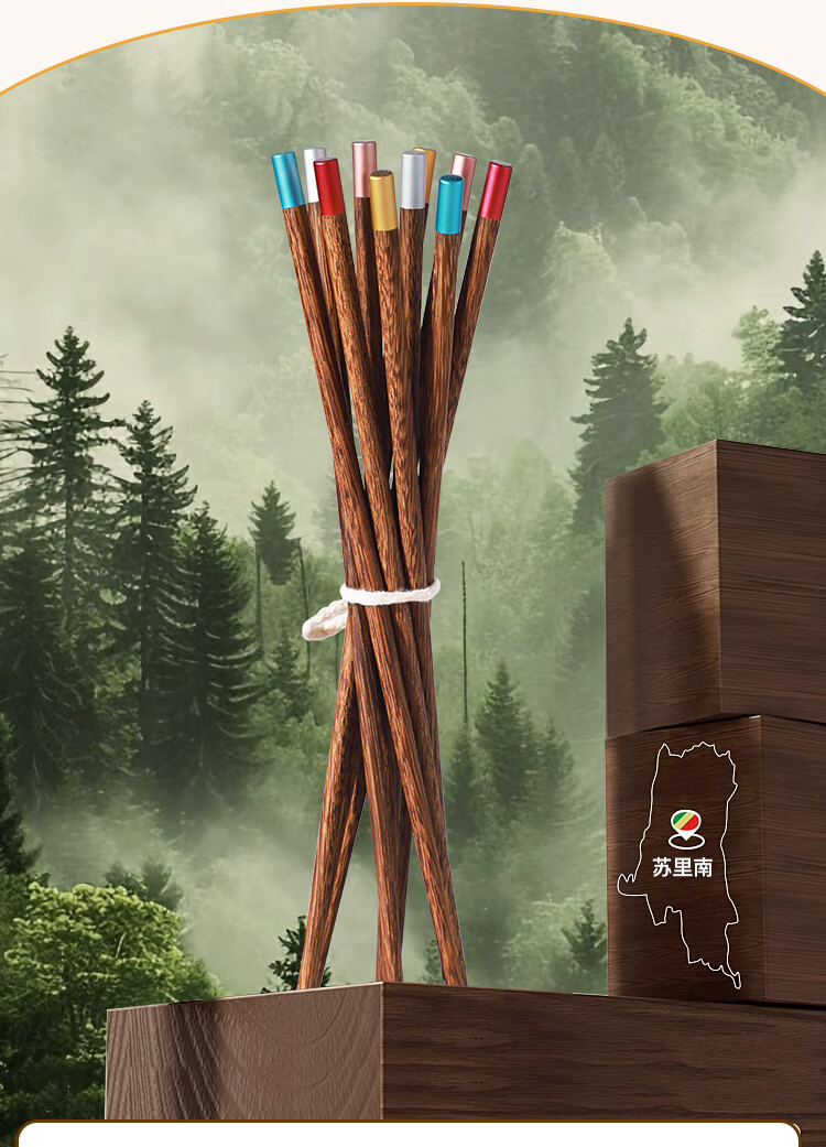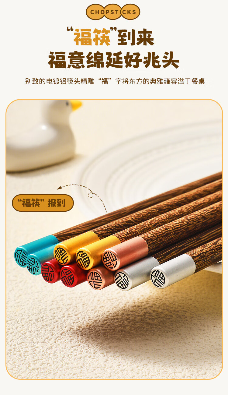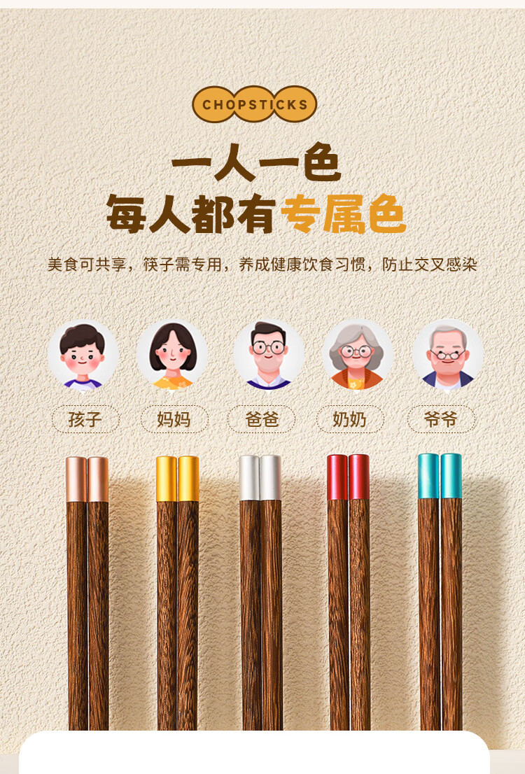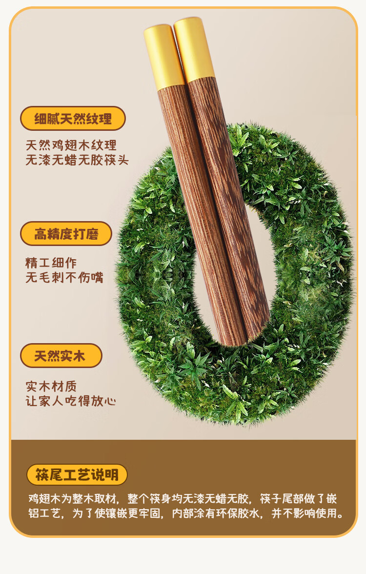 美厨(MAXCOOK)筷子木筷 分色筷天然家用鸡翅木筷子 筷子金福圆筷5双MCK8562