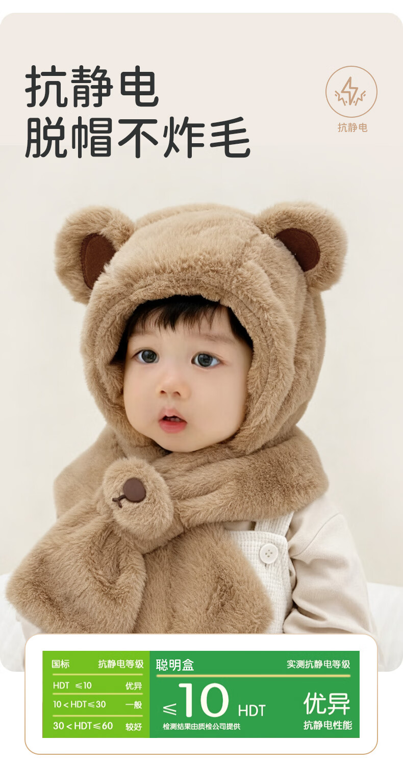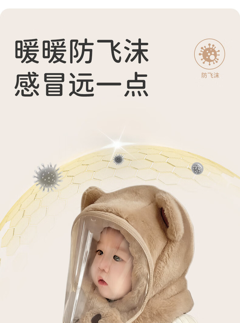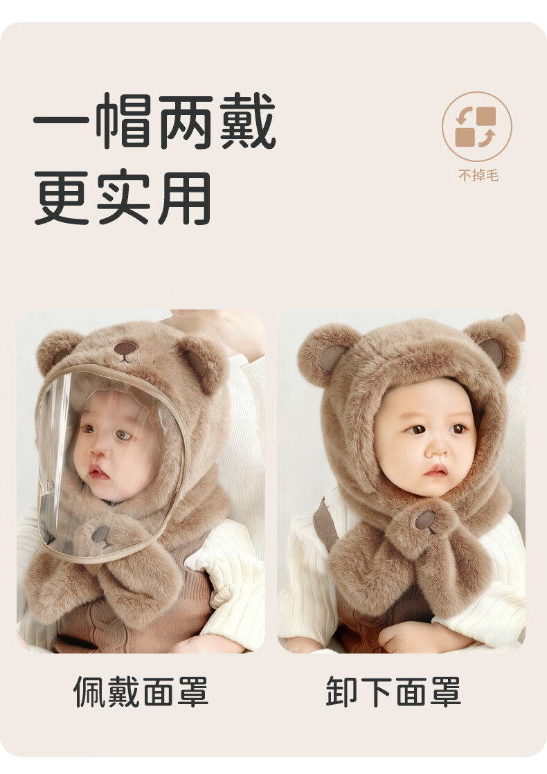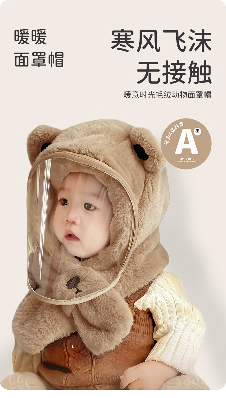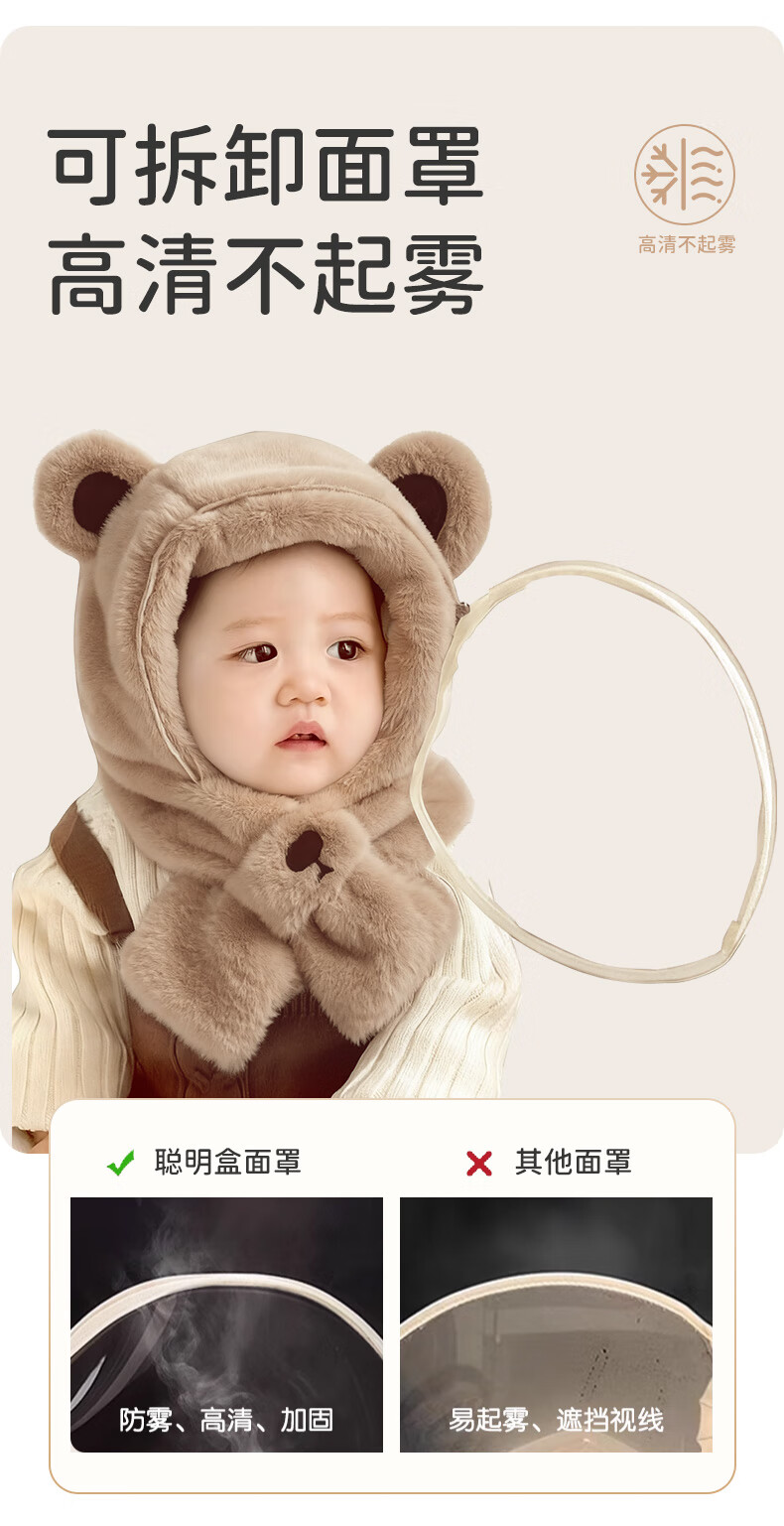 聪明盒儿童帽子秋冬季防风面罩男女童户外骑行护耳套头帽宝宝围巾一体帽
