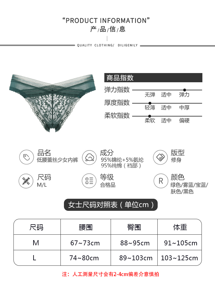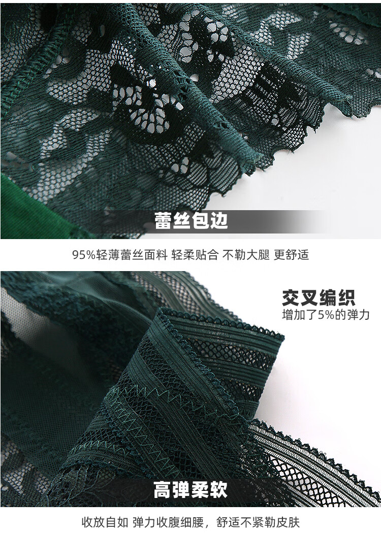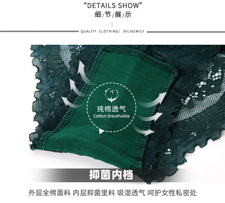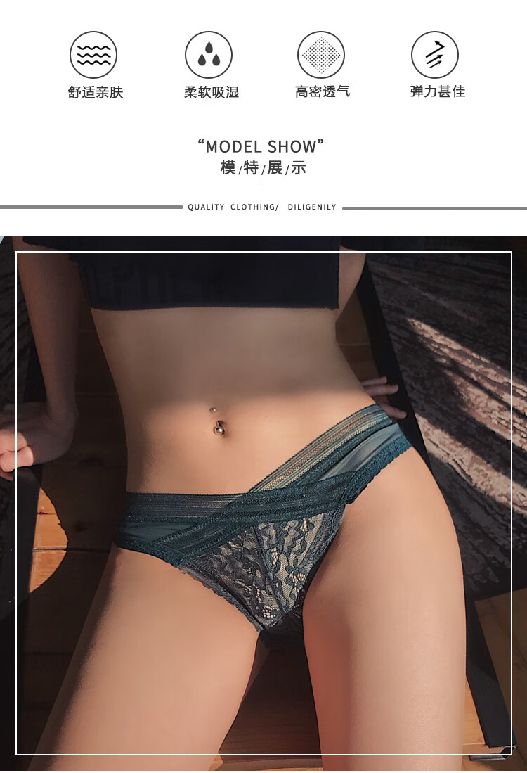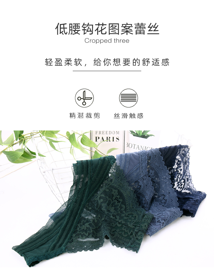 PEANOJEAN 性感蕾丝内裤少女棉抗菌低腰三角裤舒适透气K115 绿色 M