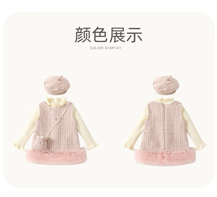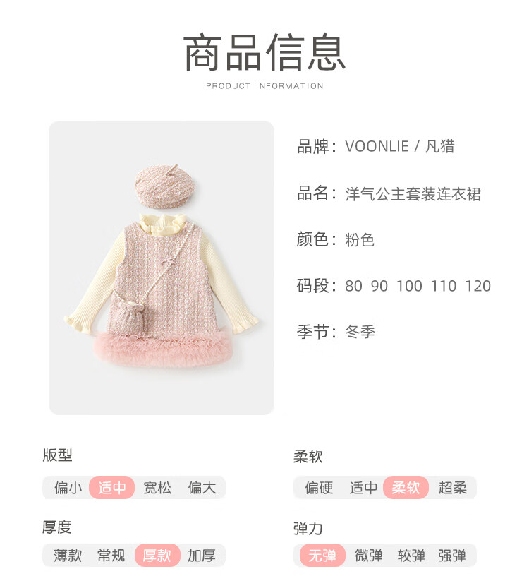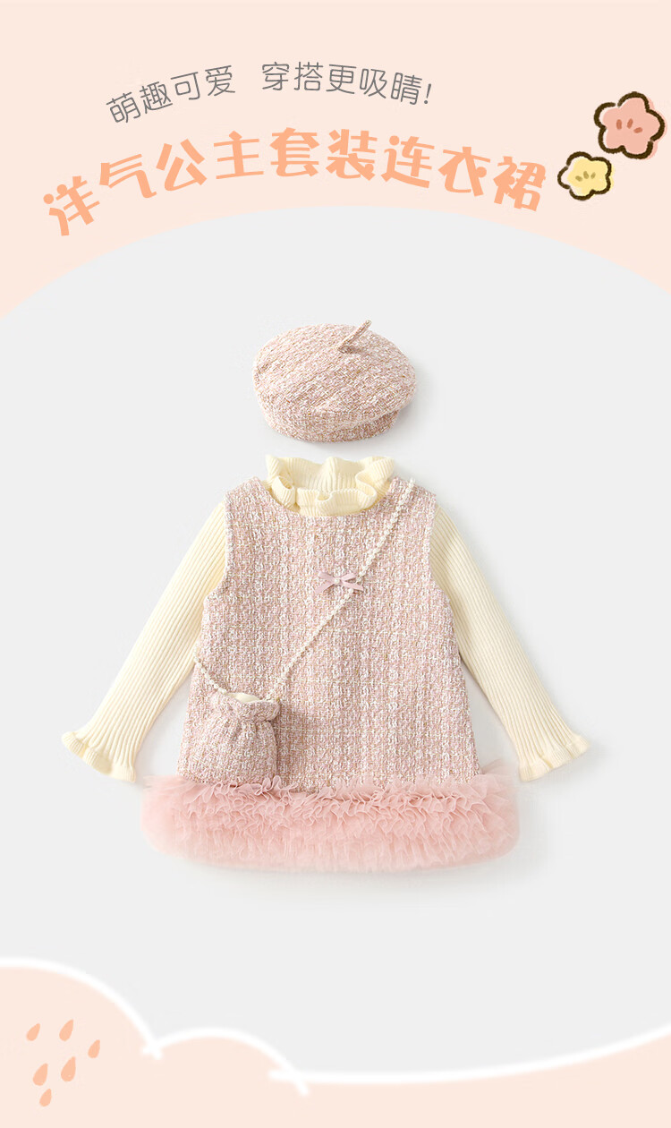 凡猎VOONLIE女童连衣裙冬装洋气儿童洋气公主裙加绒宝宝背心裙拜年套装冬季