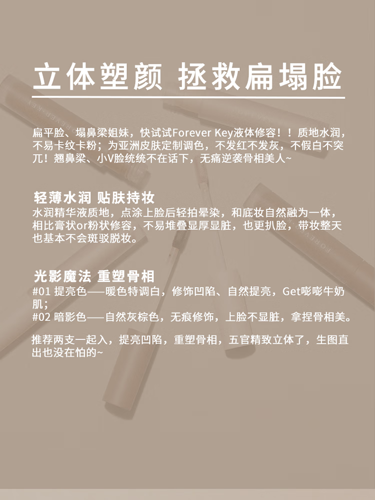 FOREVER·KEY液体修容棒鼻影阴影修容液笔高光侧影提亮液官旗正品 #01提亮 3.5g