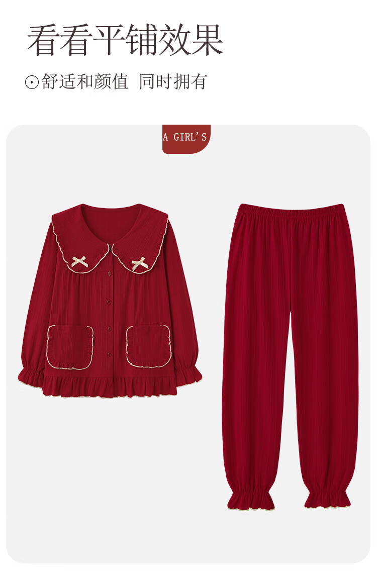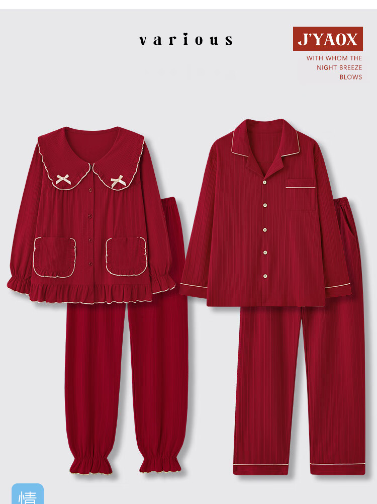 魅卿礼盒装睡衣结婚新婚情侣套装春秋男女纯棉红色本命年大码孕妇可爱 S6888-H6888【礼盒包装】 3XL【女160-180斤】