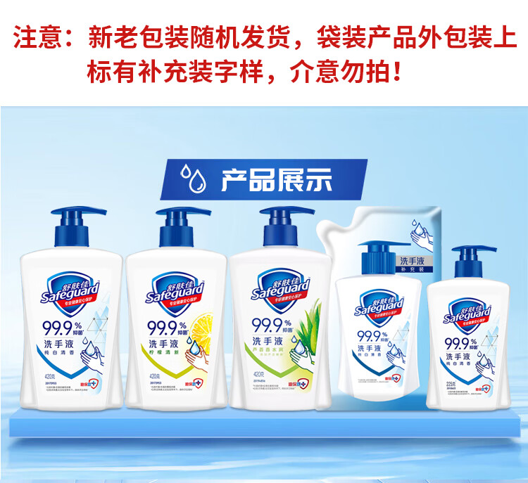 舒肤佳洗手液纯白清新柠檬抑菌抗菌便携除菌按压洗手液家用混合装420克 补充装200g*6袋