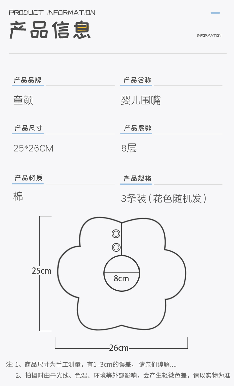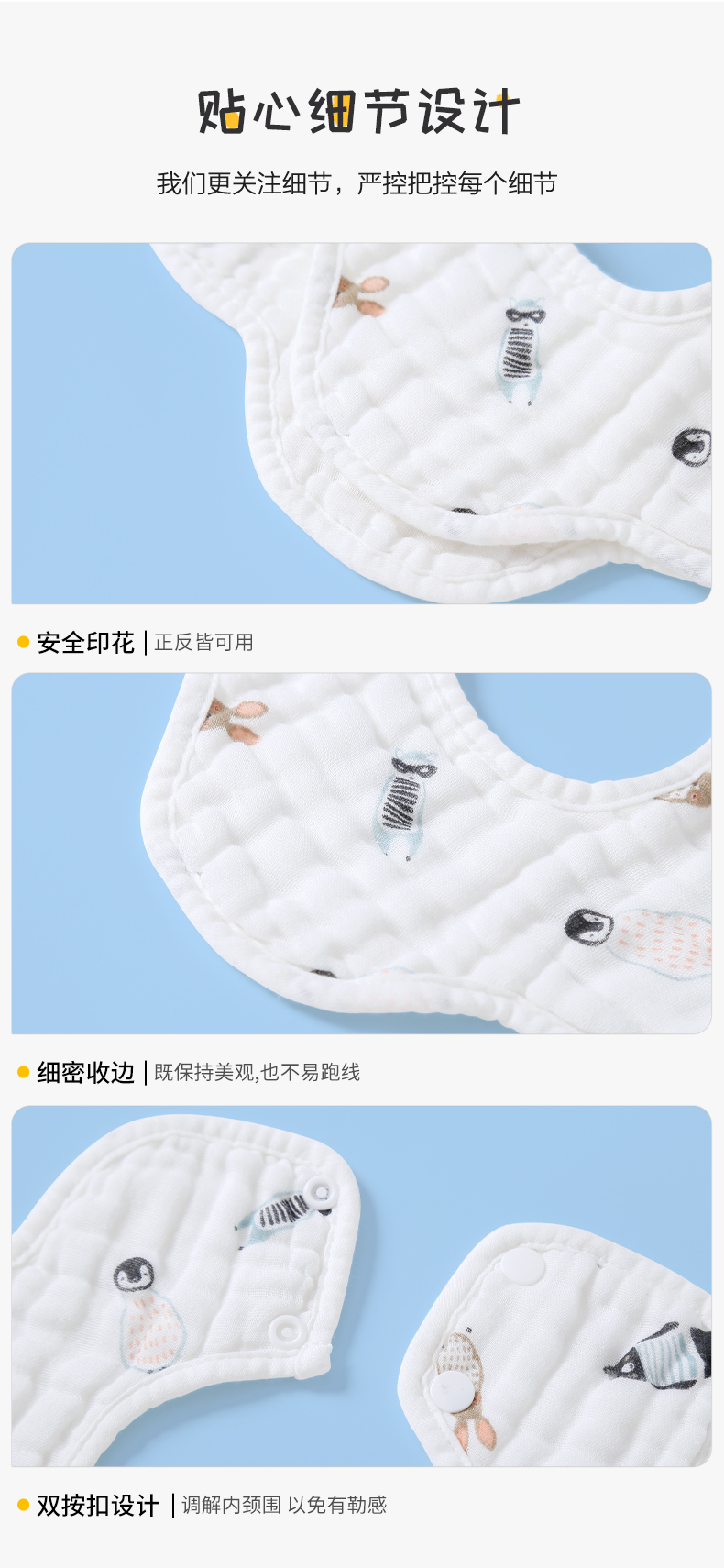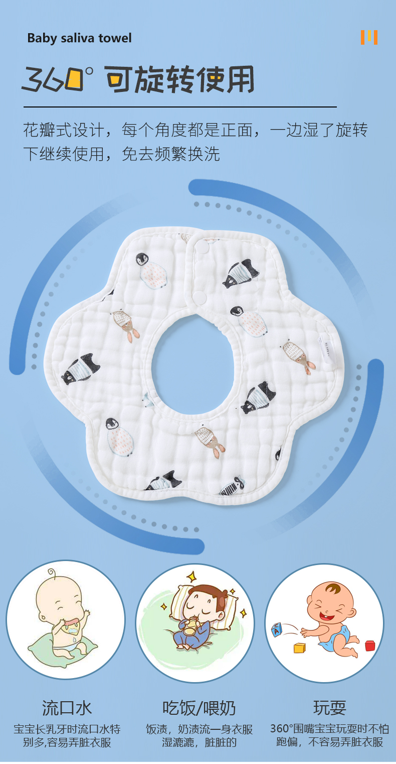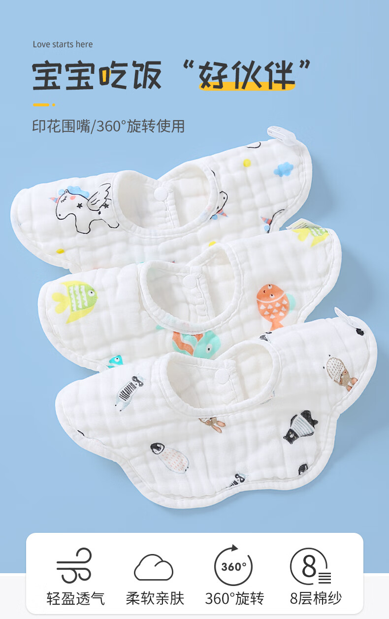 童颜婴儿口水巾纯棉纱布围嘴宝宝吃饭新生儿防吐奶360度旋转围兜3条装