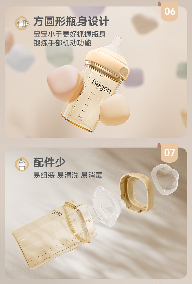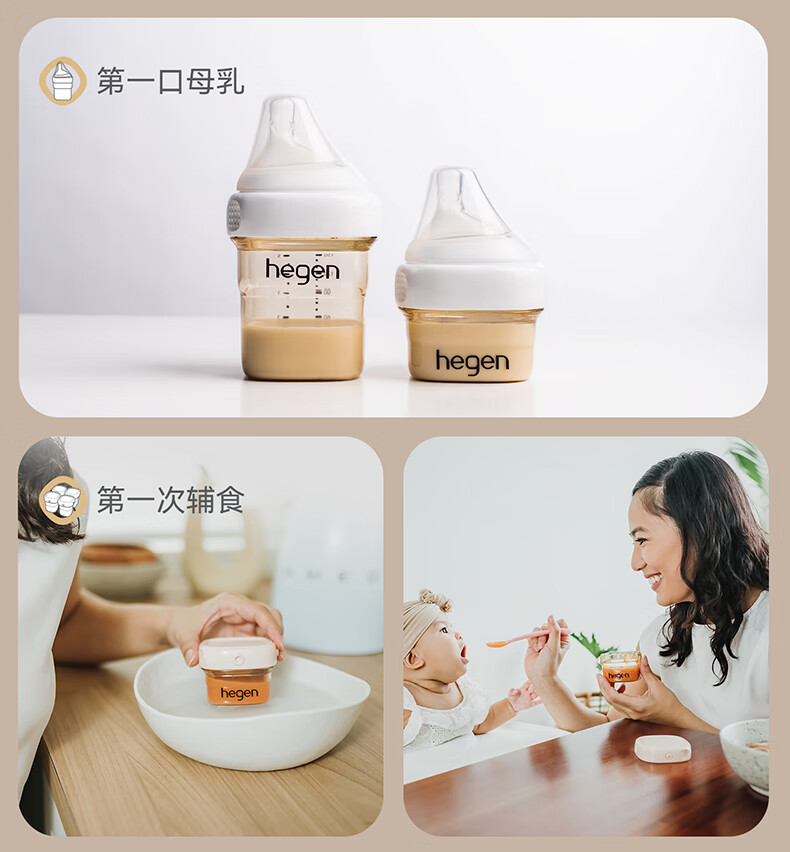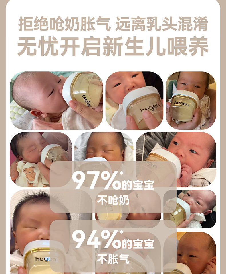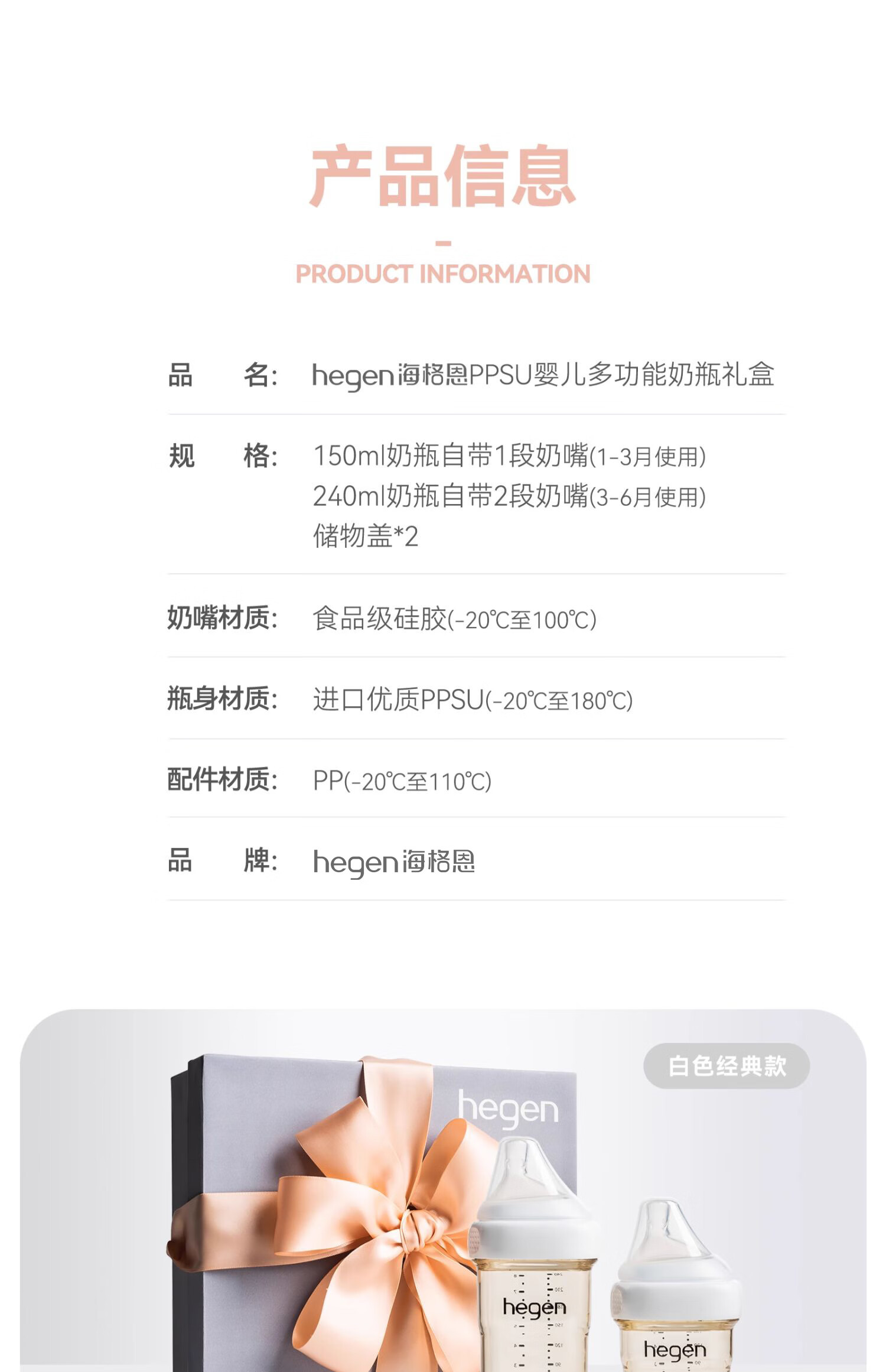 HEGEN海格恩新生儿奶瓶奶嘴0-6个月防胀气婴儿用品奶瓶套装礼盒装礼物 【白色礼盒】(150+240ml奶瓶+储存盖*2)