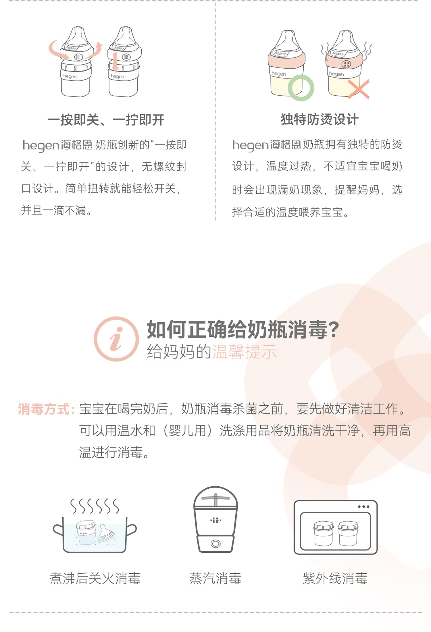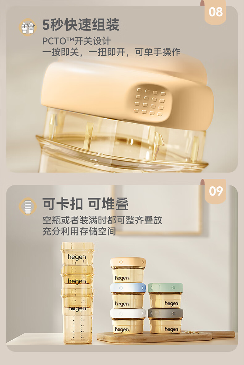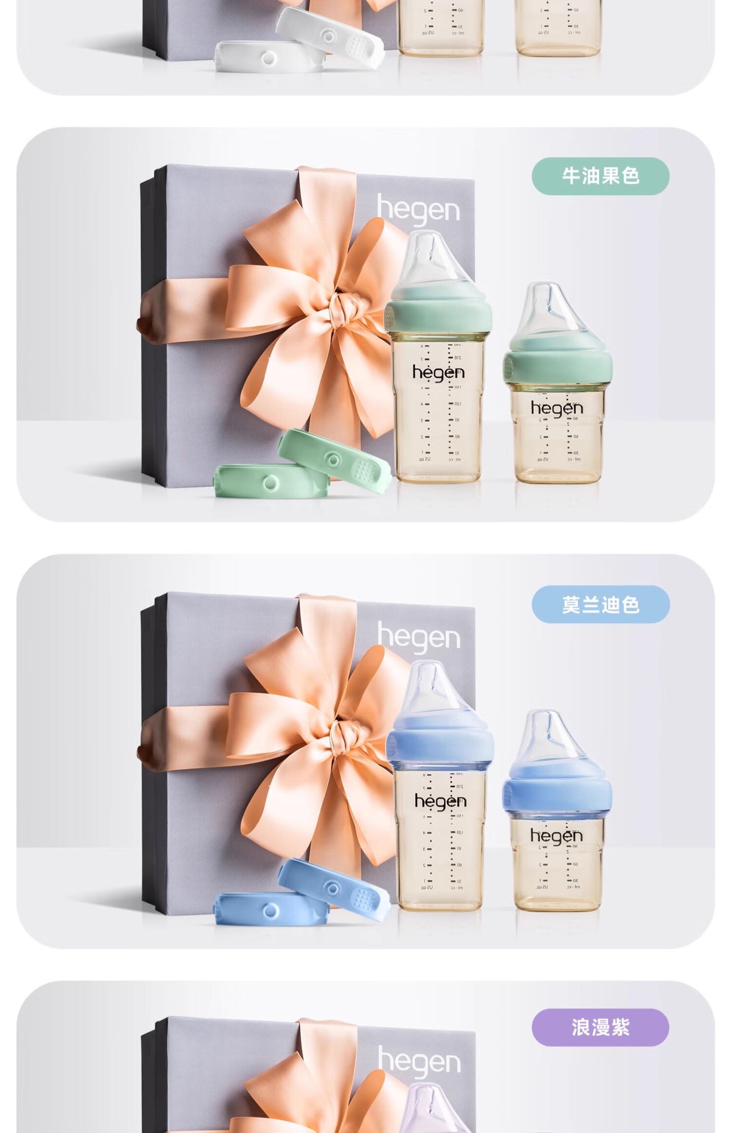 HEGEN海格恩新生儿奶瓶奶嘴0-6个月防胀气婴儿用品奶瓶套装礼盒装礼物 【白色礼盒】(150+240ml奶瓶+储存盖*2)