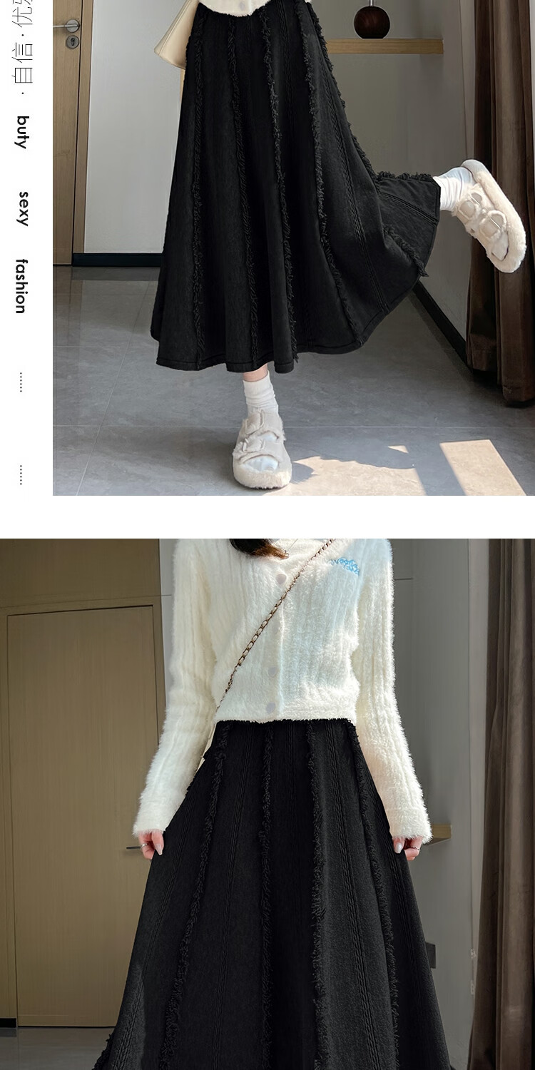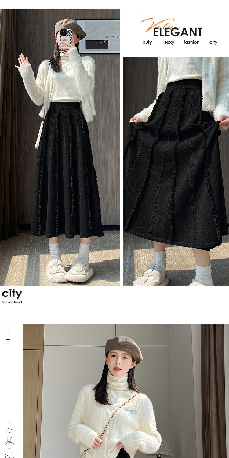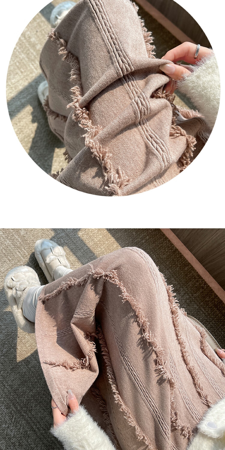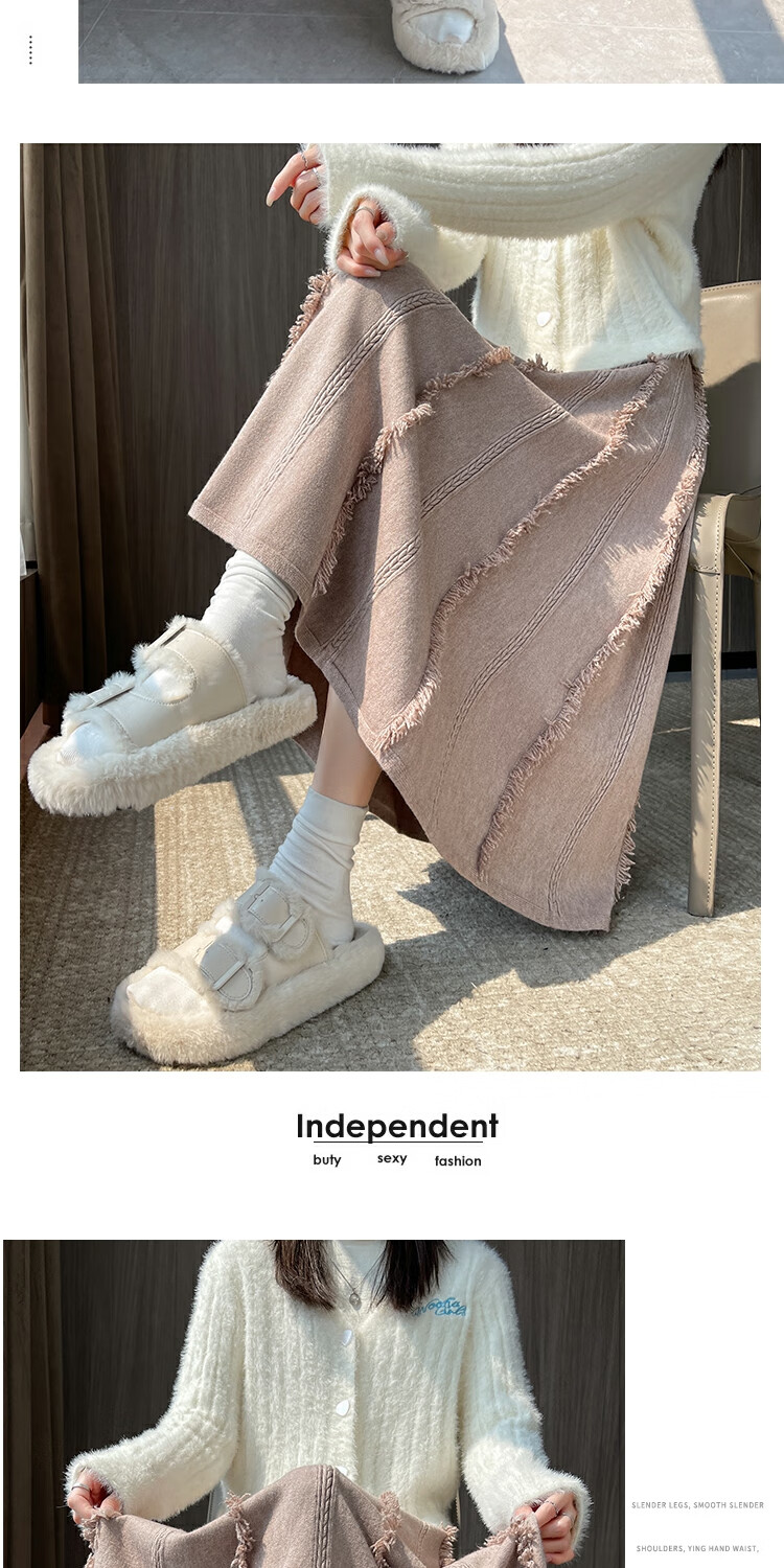 针织流苏糯米裙女秋冬2025新款高腰显瘦大摆软糯a字裙长款半身裙 4447杏色 S 【建议80斤-95斤】