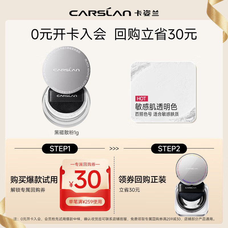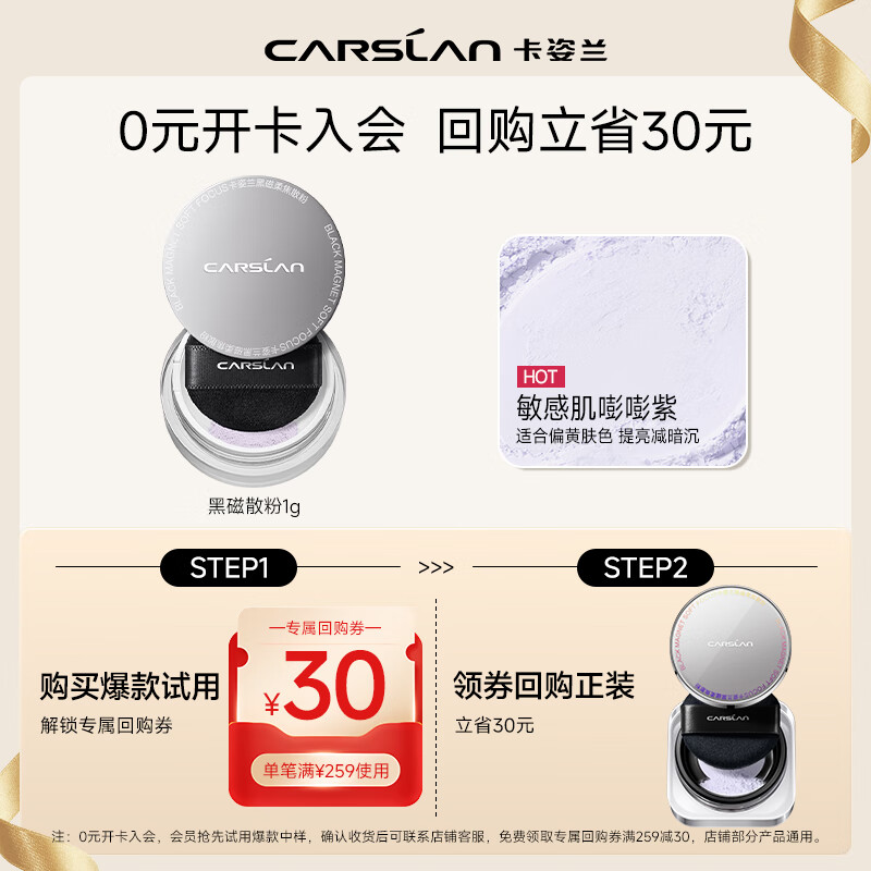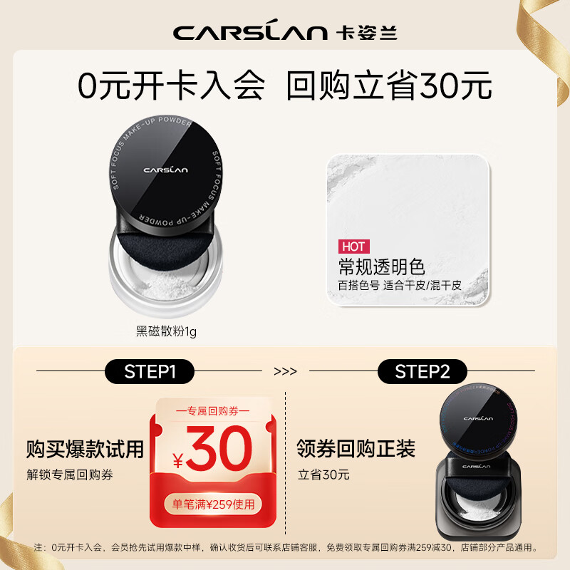 卡姿兰(Carslan)黑磁散粉定妆蜜粉控油防水防汗遮瑕持久不脱妆隐形毛孔小样试用装 常规透明色1g