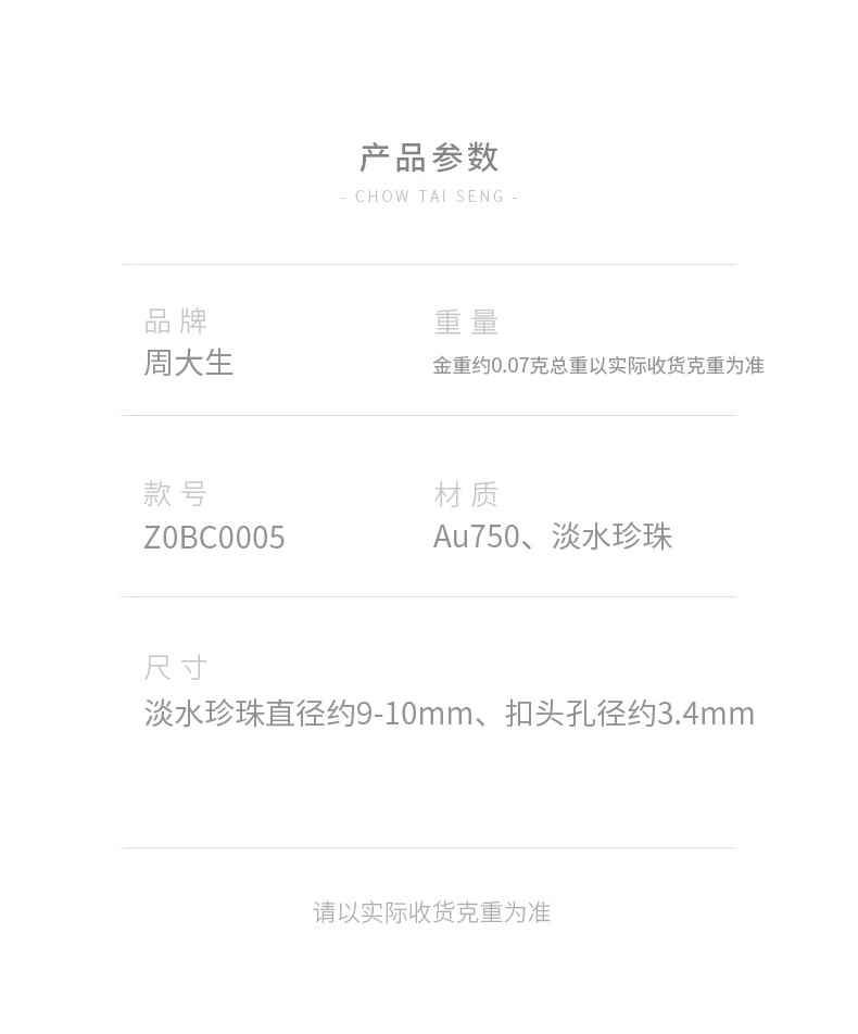 周大生【新年礼物】珍珠项链吊坠女款18K金珍珠淡水珍珠挂坠送女友