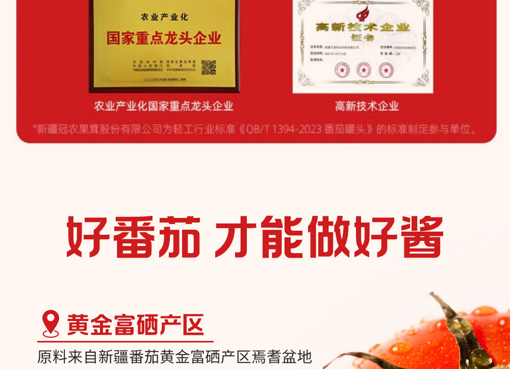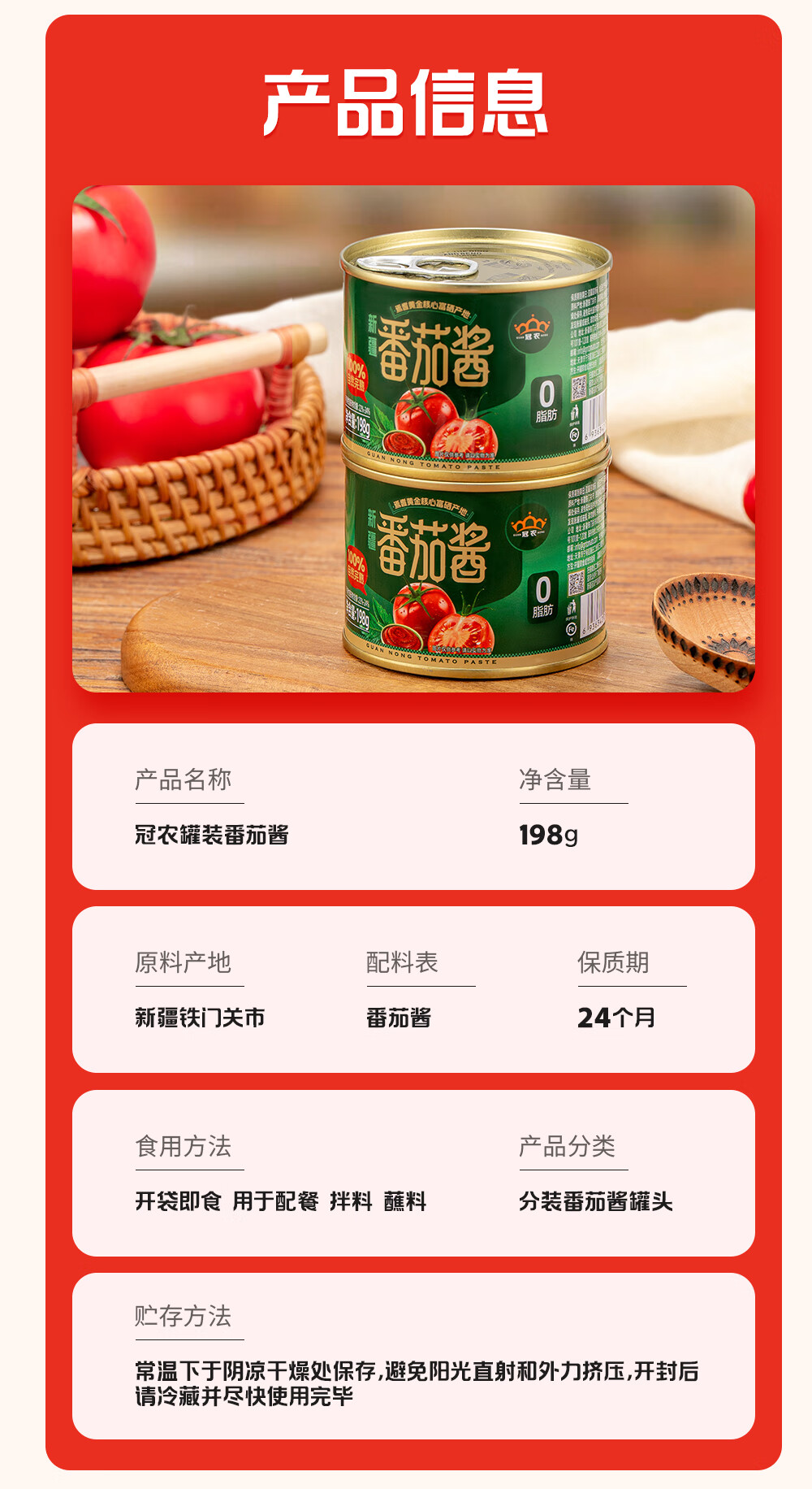 冠农股份新疆冠农番茄酱番茄膏罐头无防腐剂198g/罐 蕃茄火锅底料意面酱