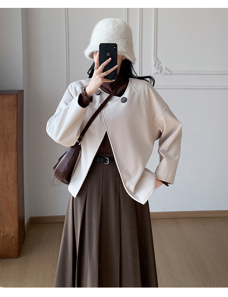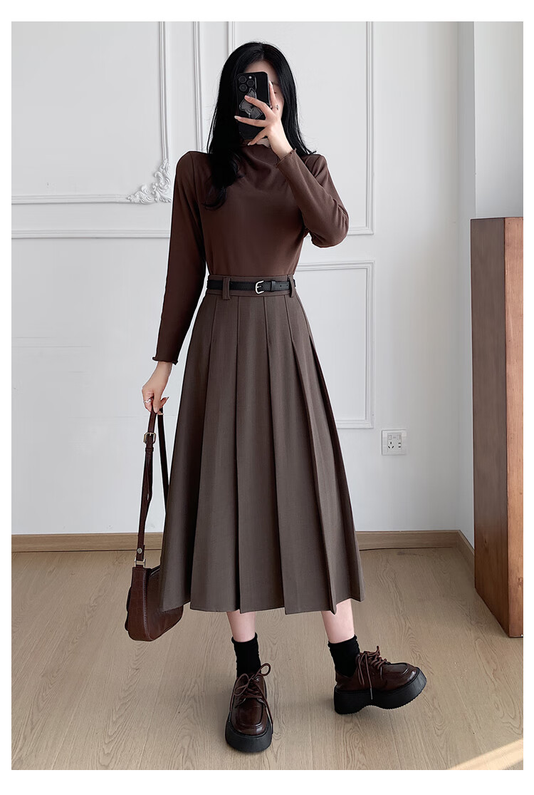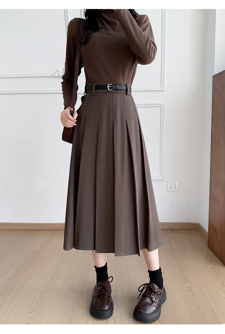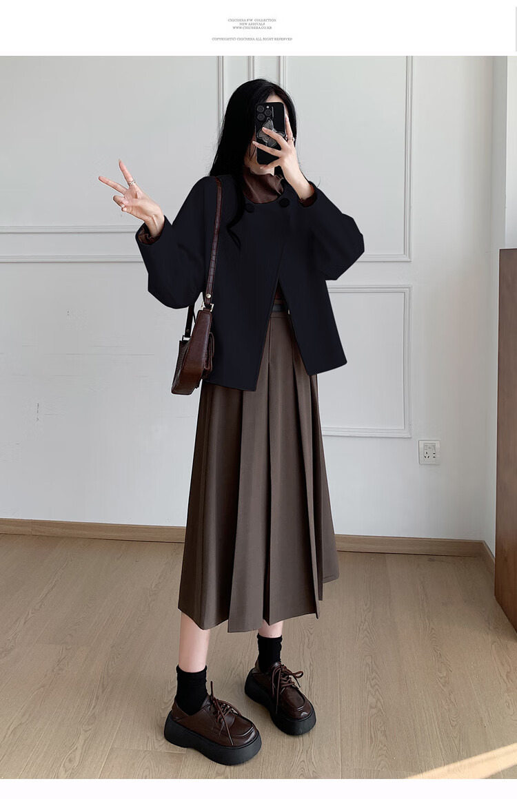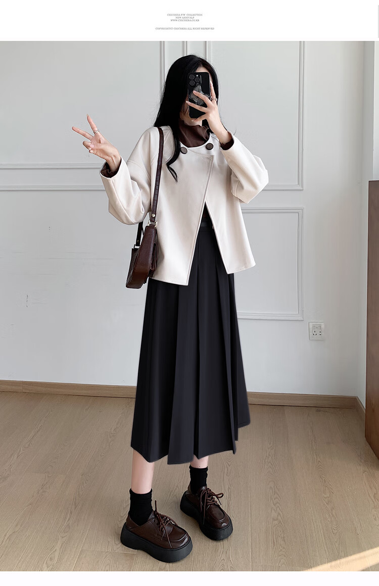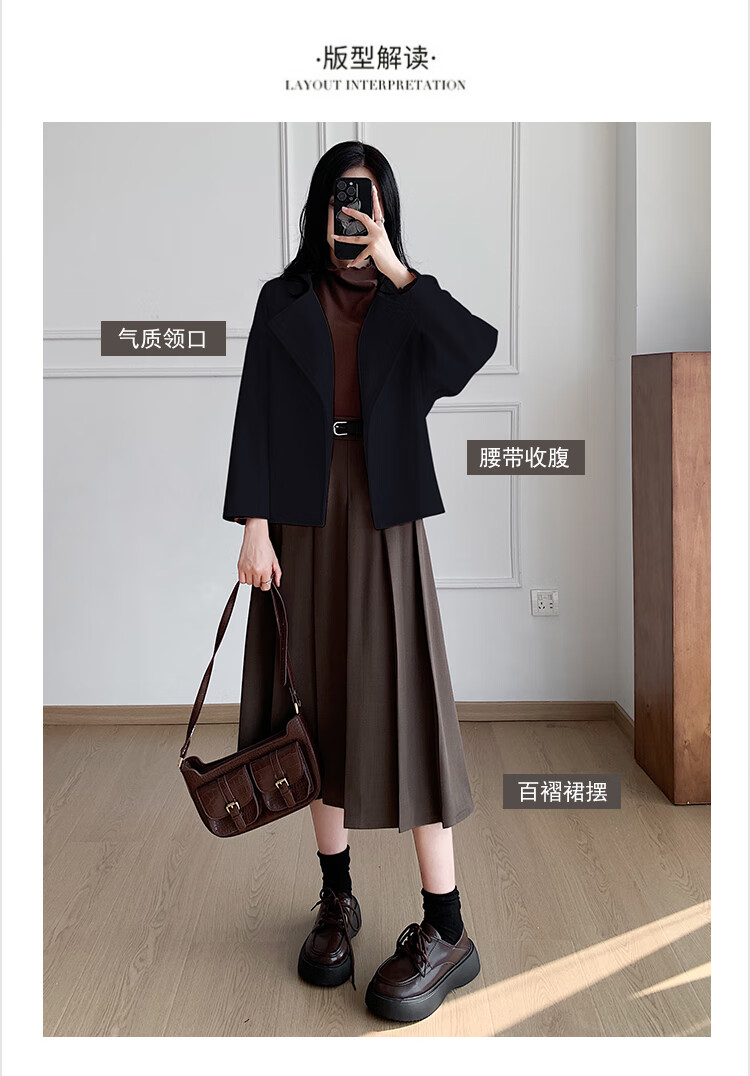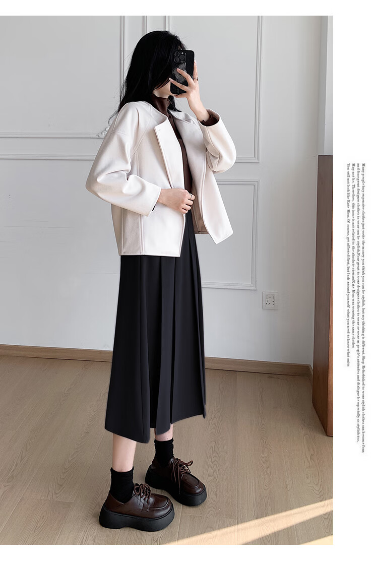 雪妃蓝琪秋季连衣裙2025新款秋冬搭配一整套盐系高级感小香风穿搭套装裙子 杏色外套+咖色内搭+咖色裙子 L 【建议110-125斤】