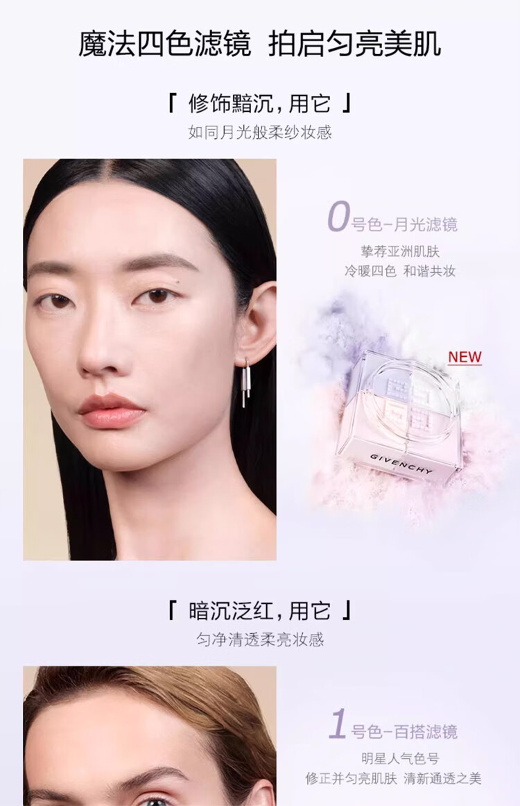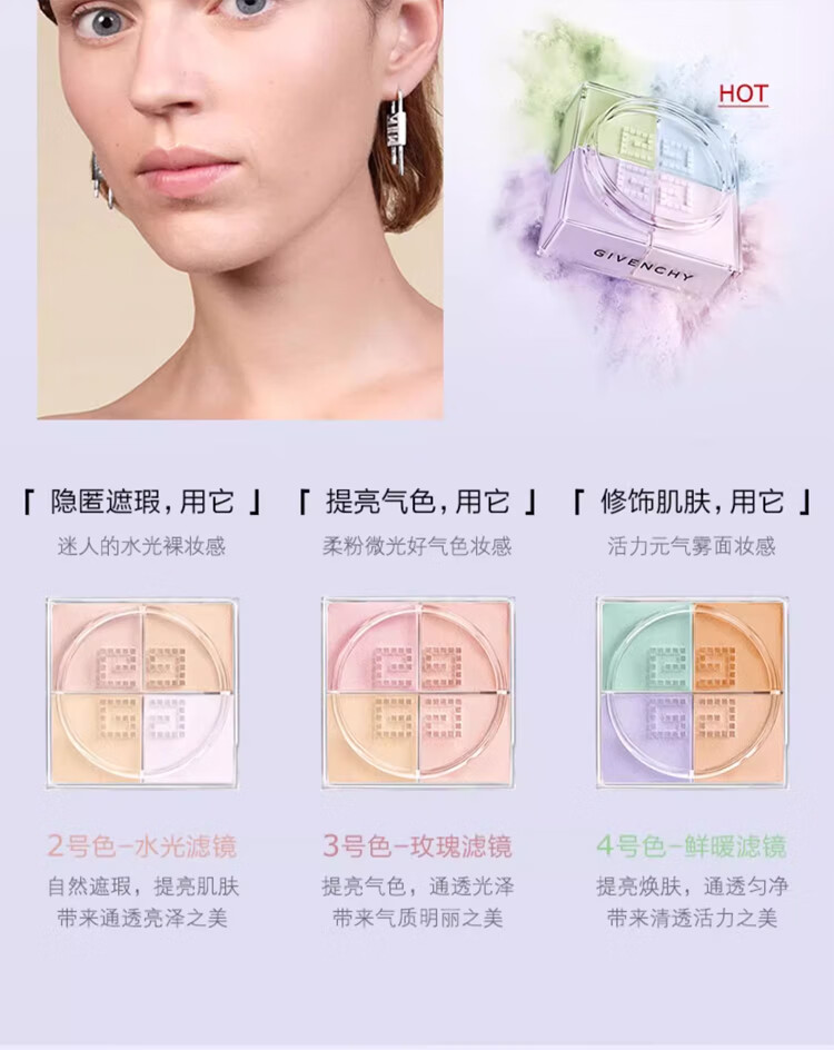 纪梵希(Givenchy)【明星新色】四宫格柔雾散粉0号 高光提亮定妆12g 生日新年礼物女