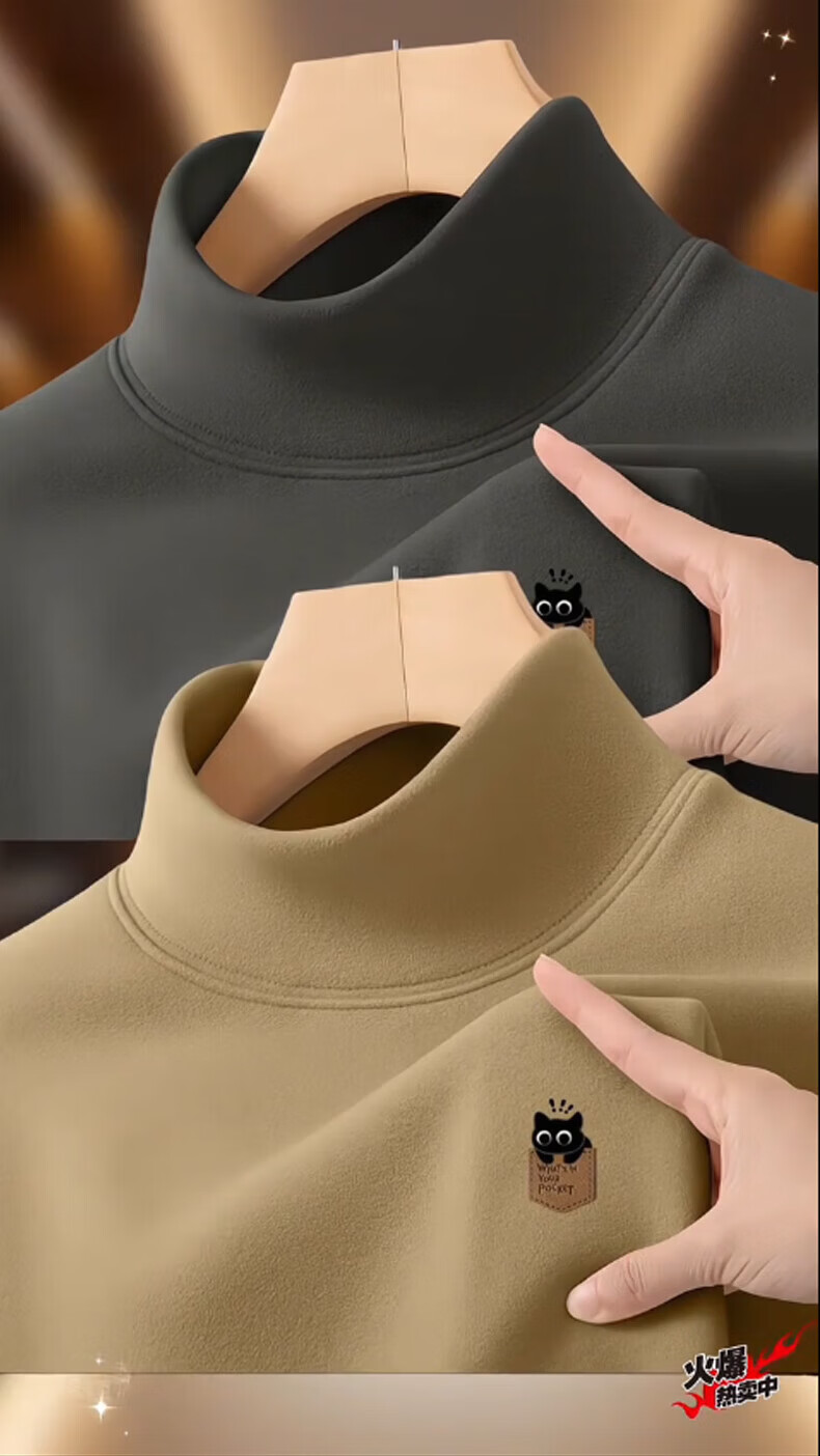 罗鸣老人[轻奢正品]2025新款德绒半高领男款长袖上衣保暖双面绒 米杏色【双面德绒】 2XL 建议体重(145-165斤)