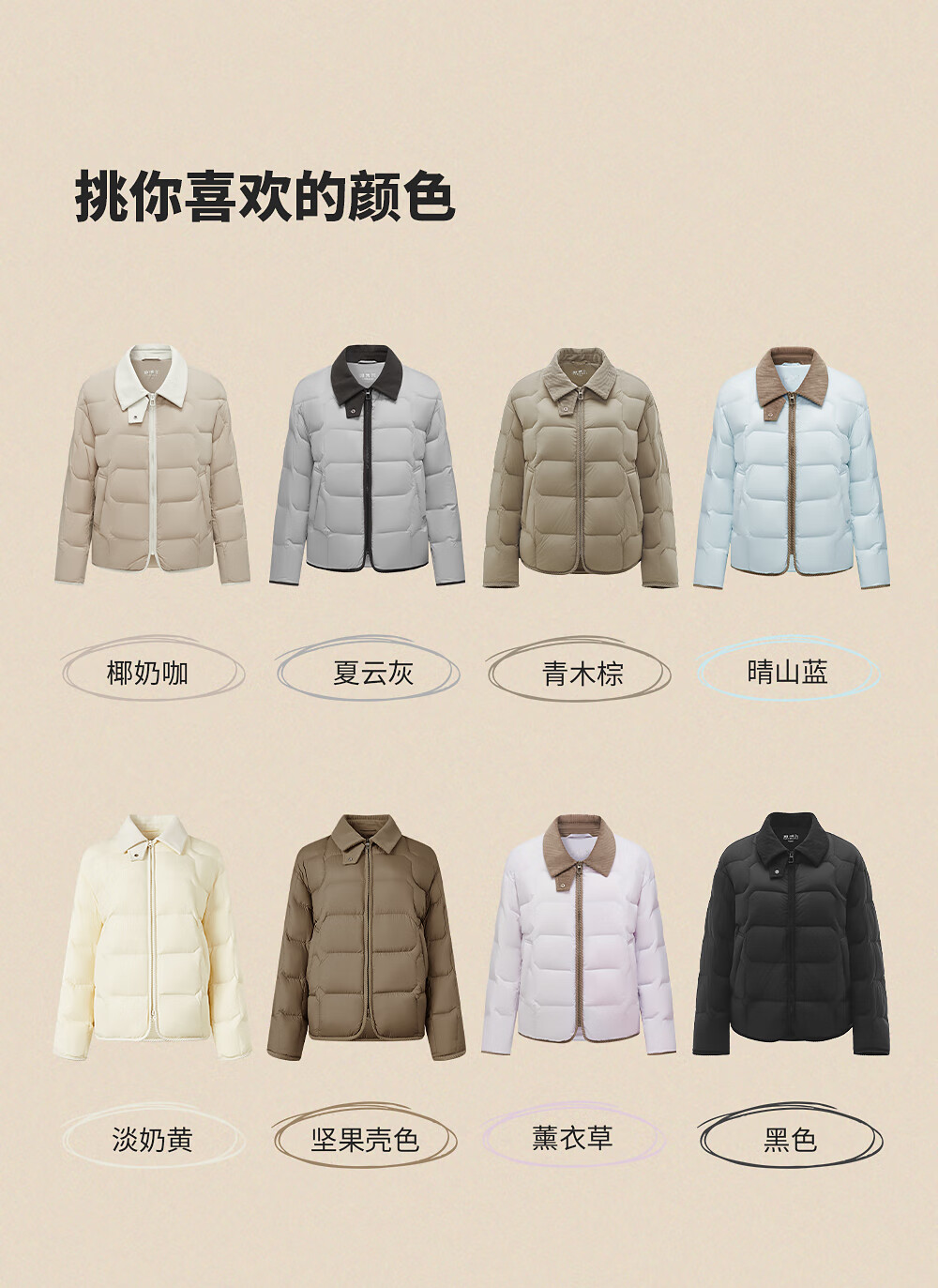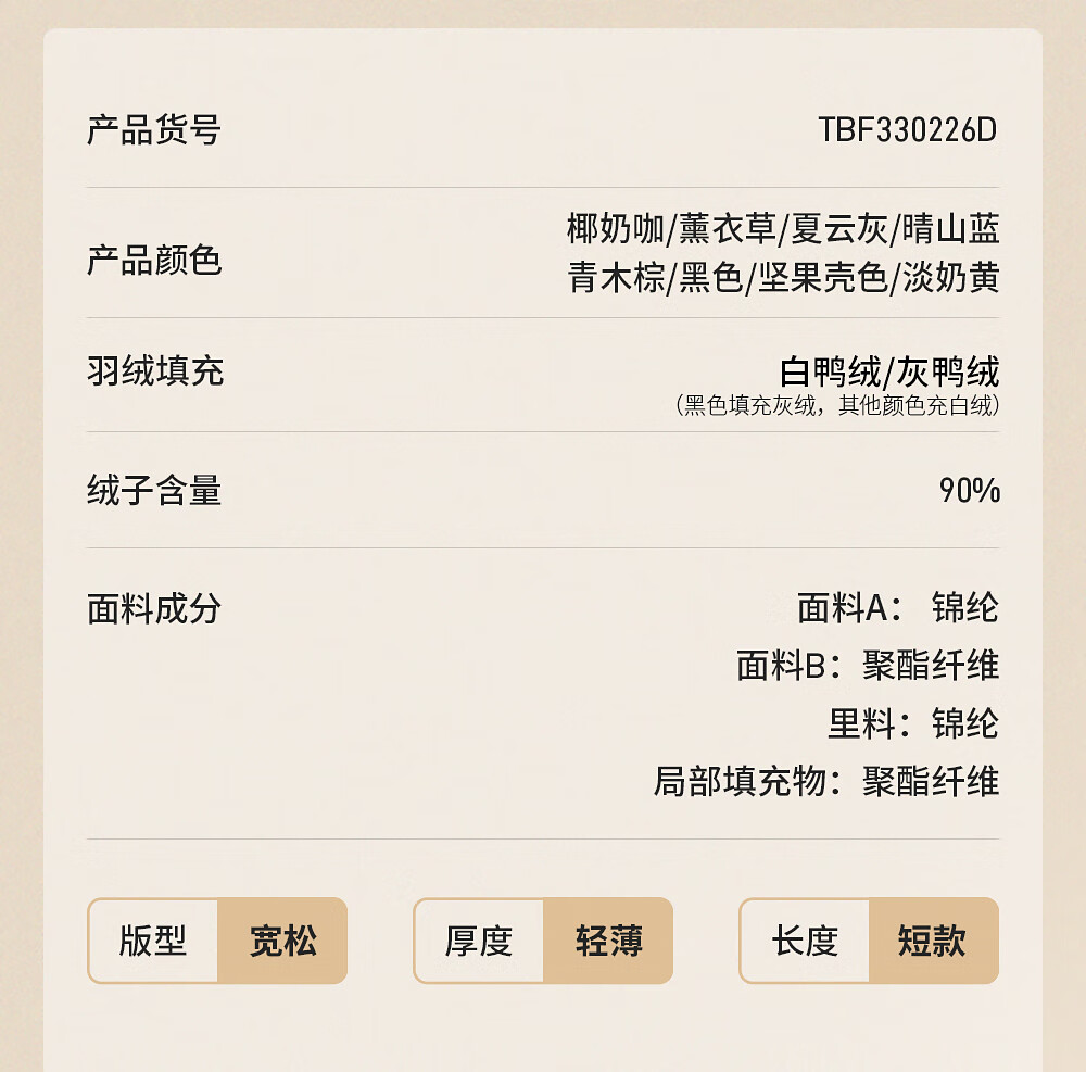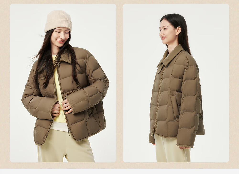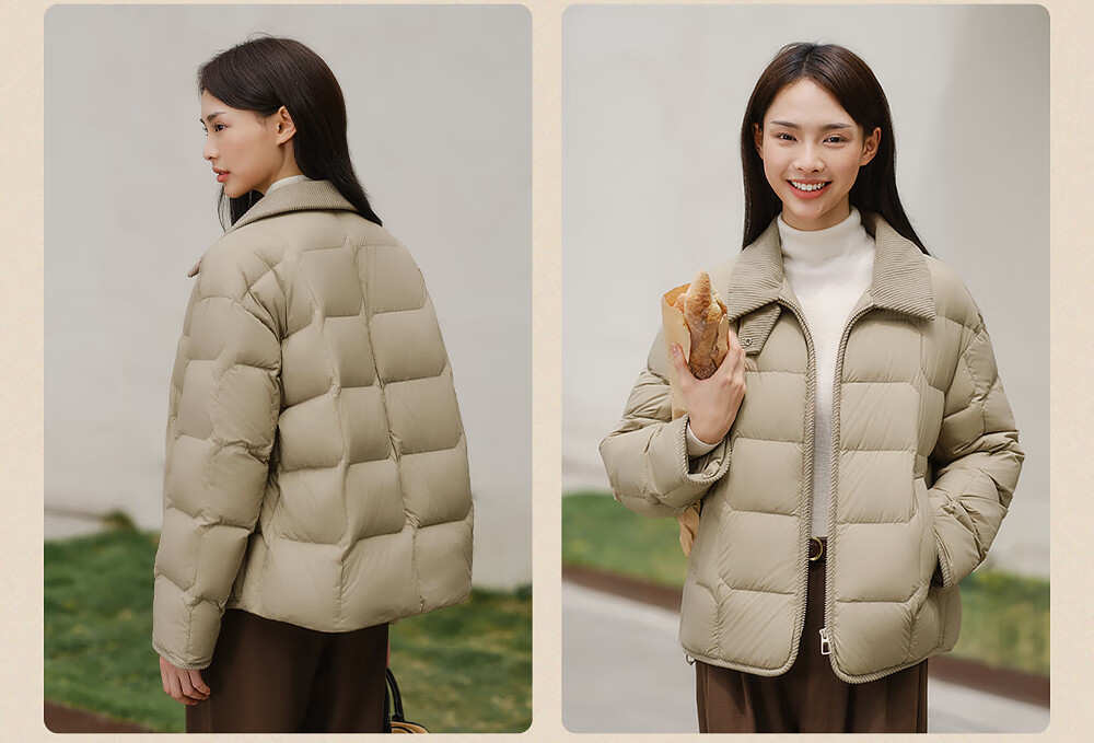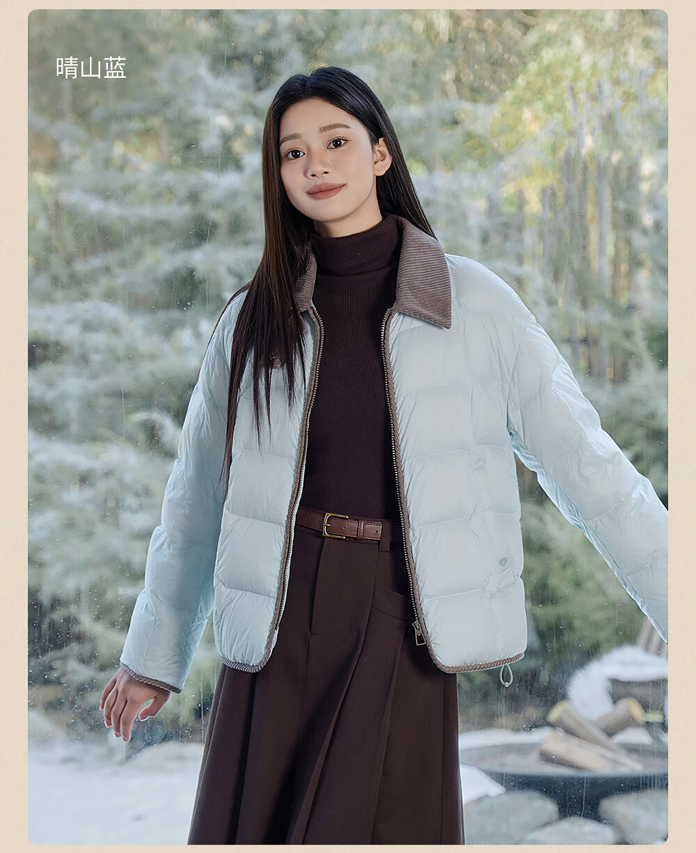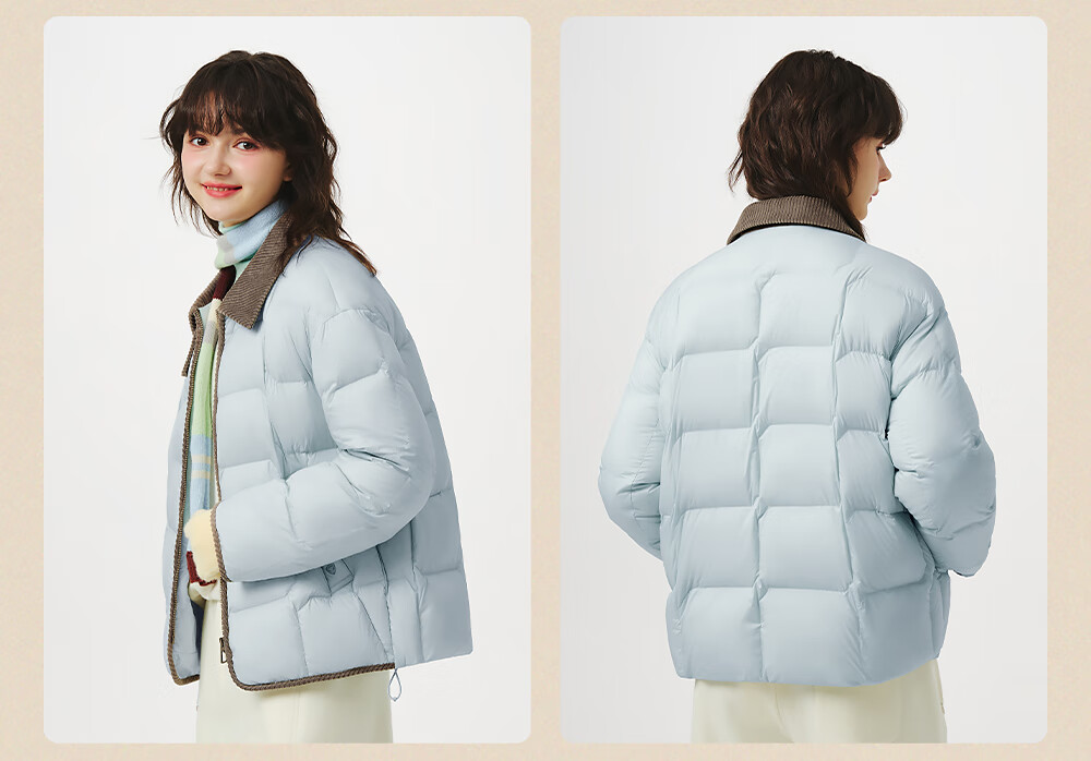 坦博尔轻薄羽绒服女短款翻领宽松舒适衬衫式女士外套330226D 晴山蓝165