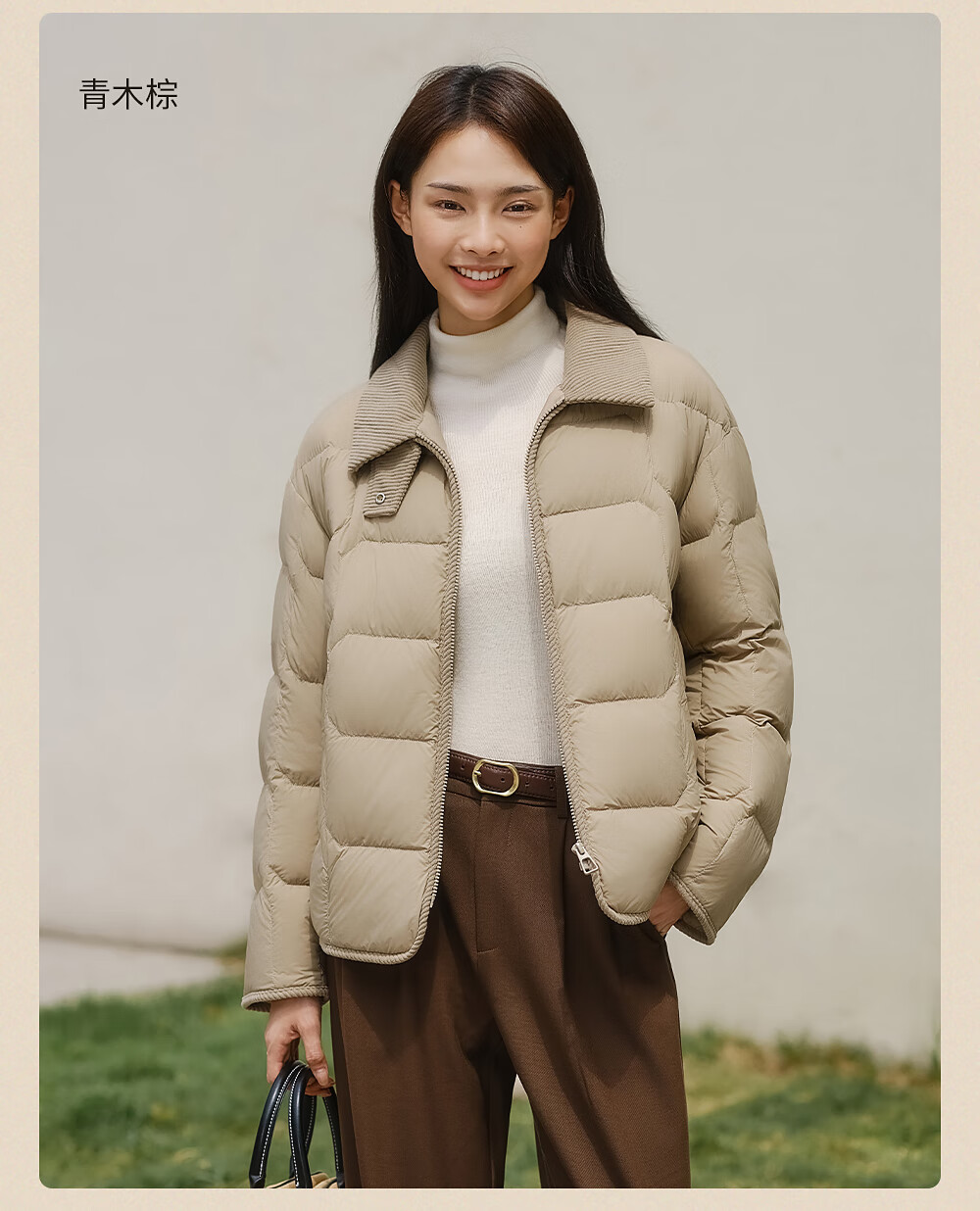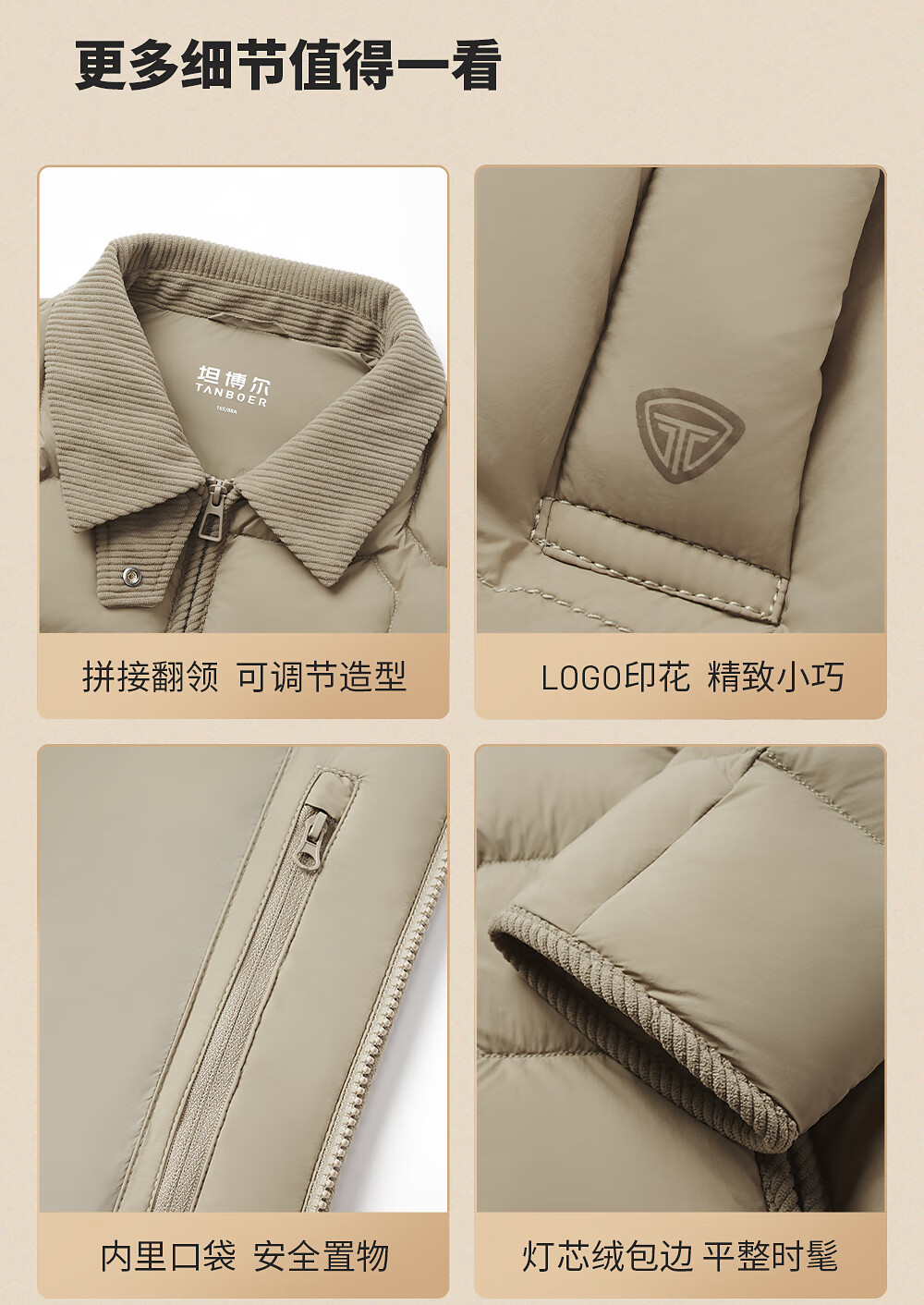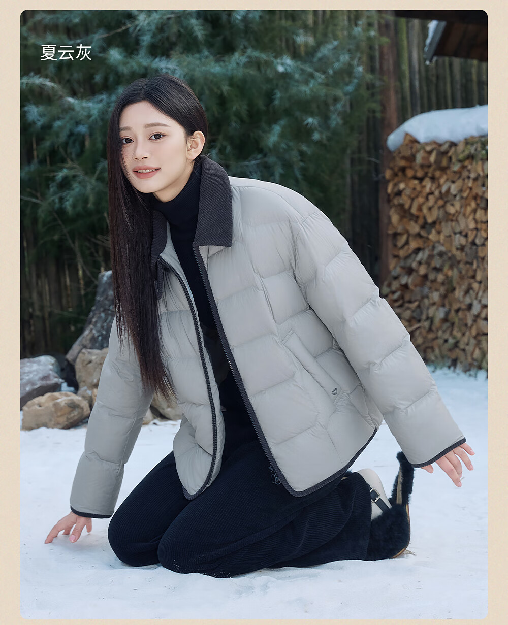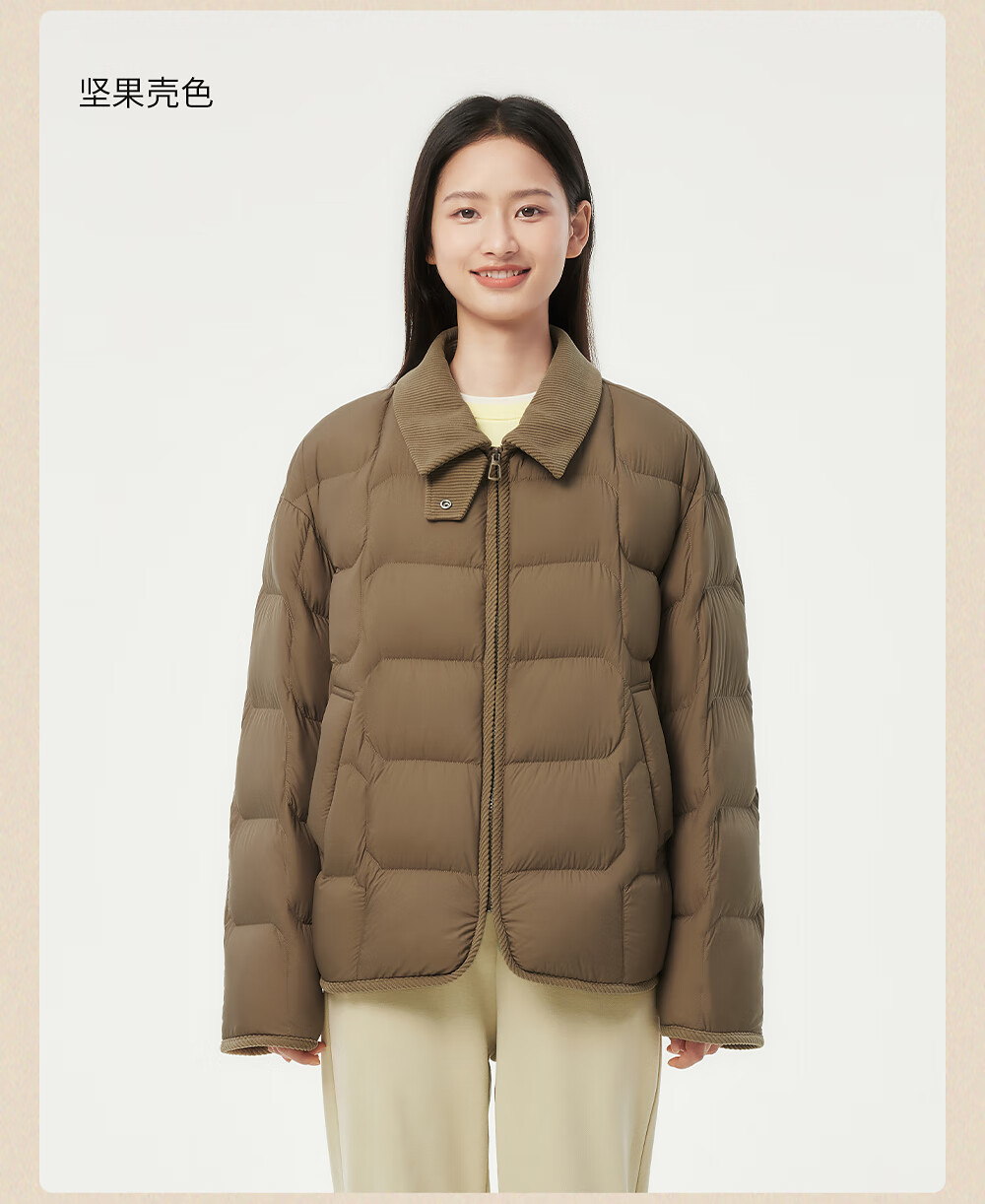坦博尔轻薄羽绒服女短款翻领宽松舒适衬衫式女士外套330226D 晴山蓝165
