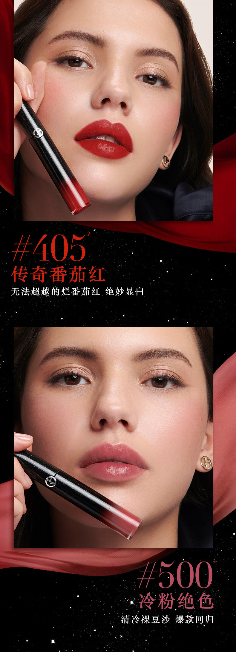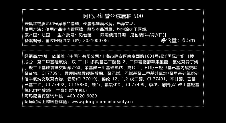 阿玛尼红管丝绒唇釉#500冷粉绝色 显白新年元旦礼物