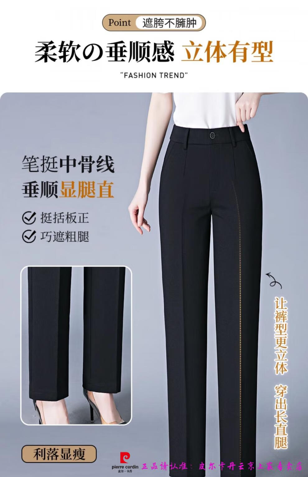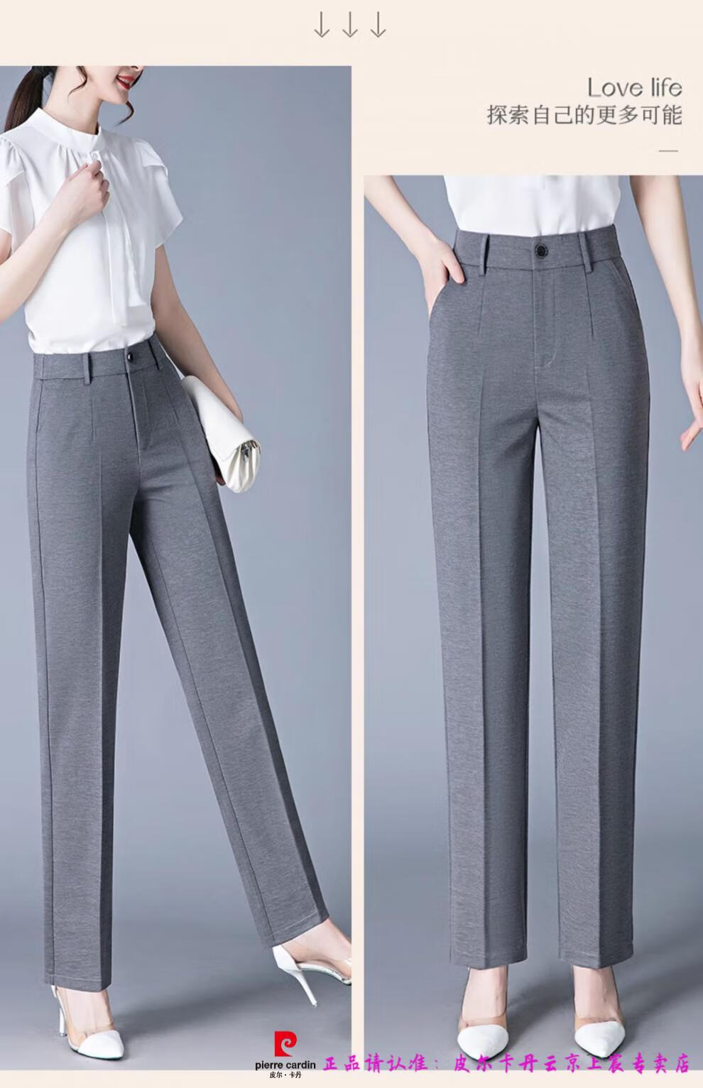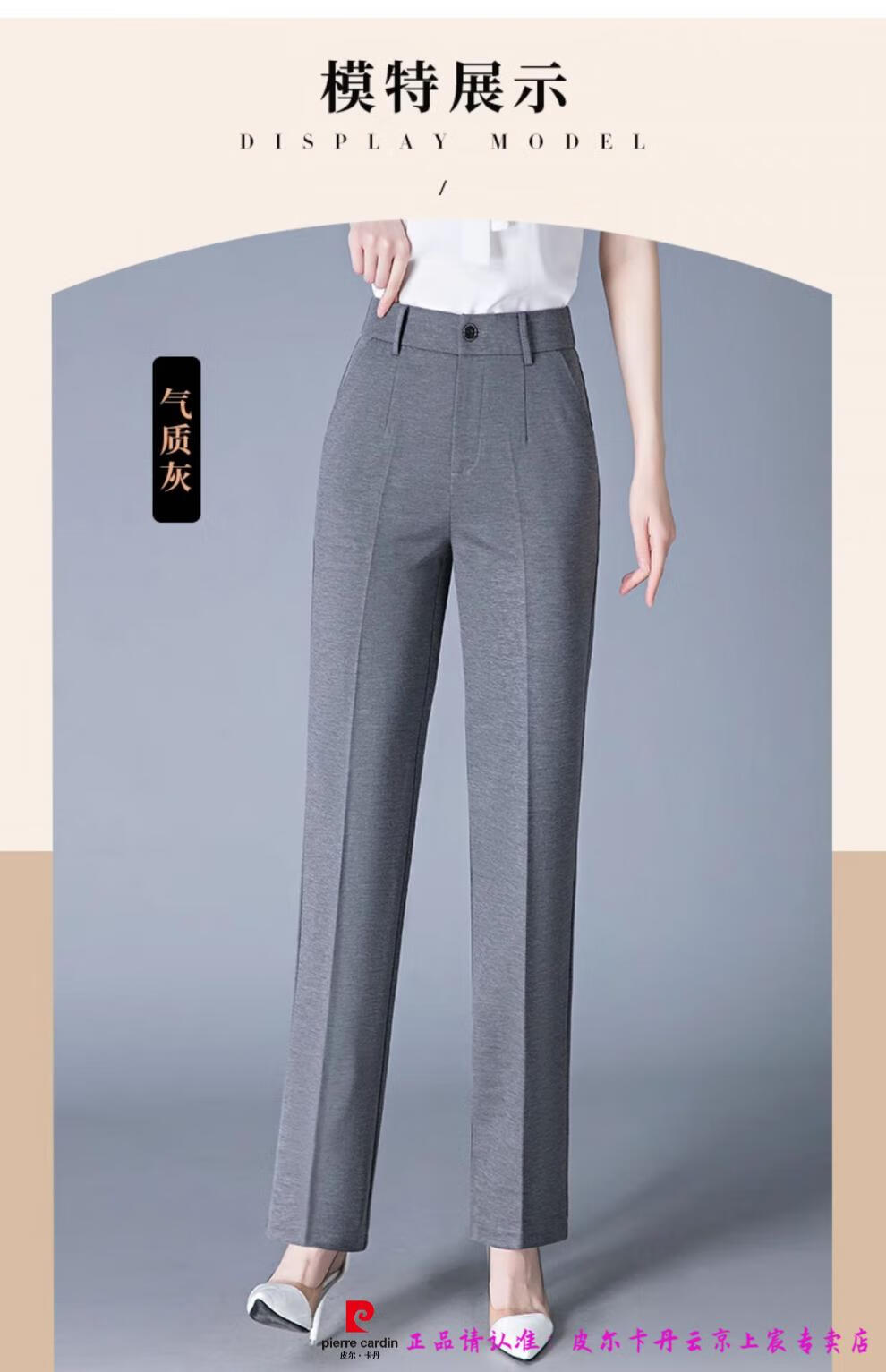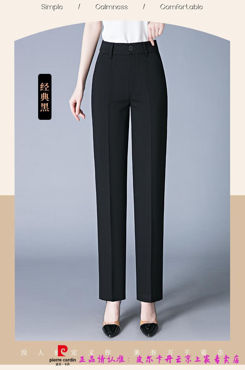 皮尔卡丹西装裤女春秋2025新款宽松休闲直筒中年妈妈裤子女士西裤职业灰色 黑色 单裤不加绒 S
