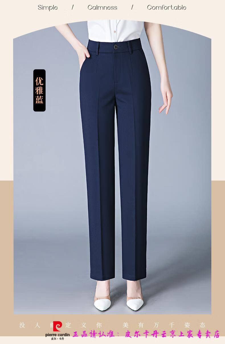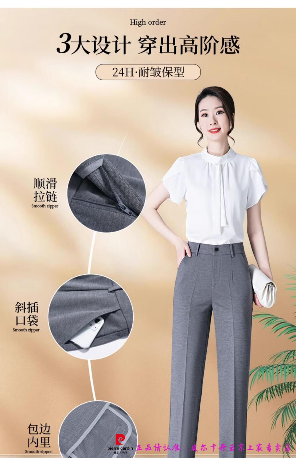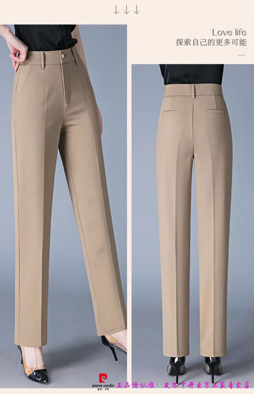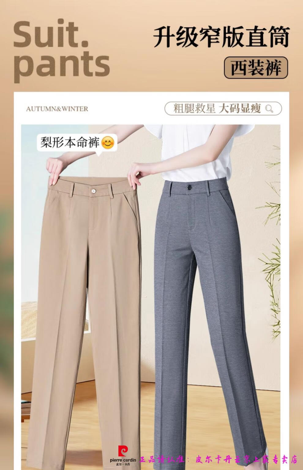 皮尔卡丹西装裤女春秋2025新款宽松休闲直筒中年妈妈裤子女士西裤职业灰色 黑色 单裤不加绒 S