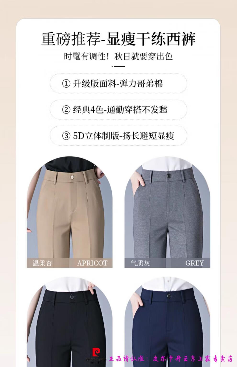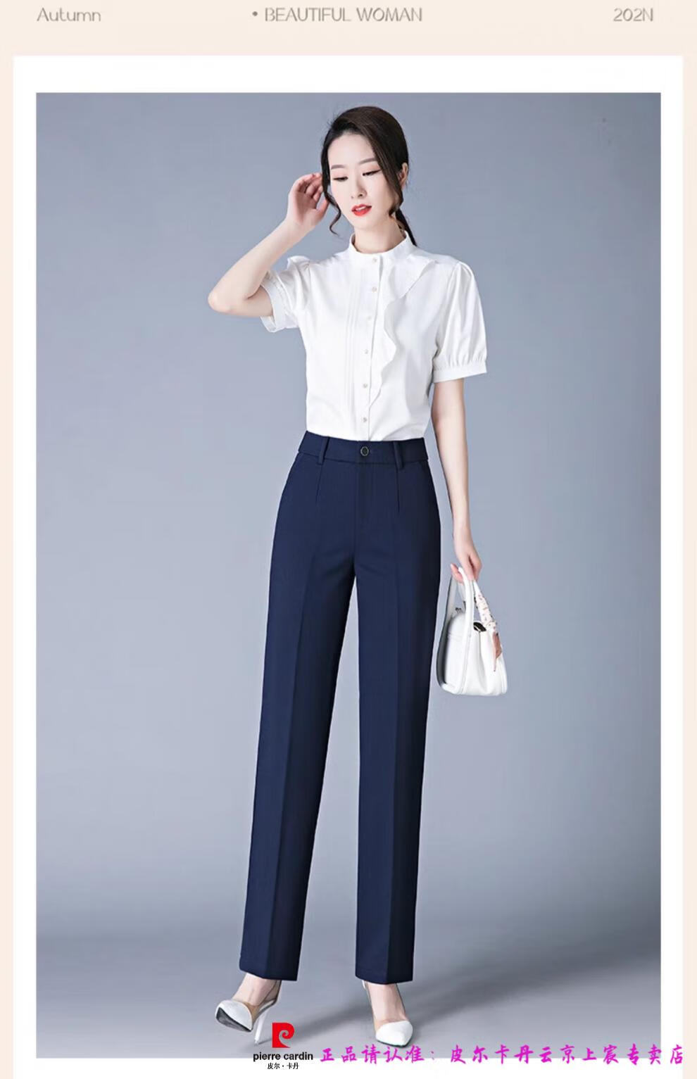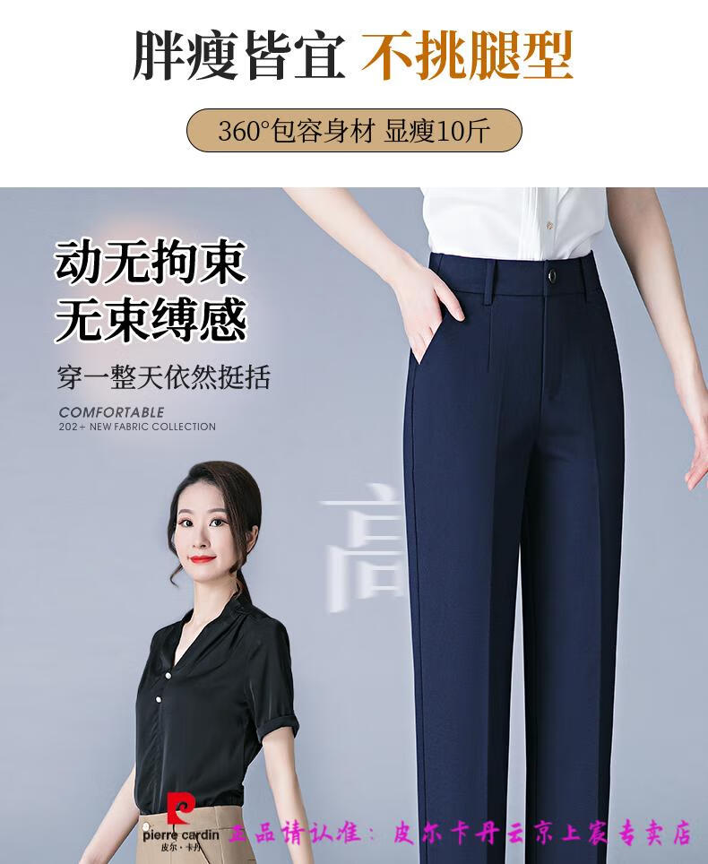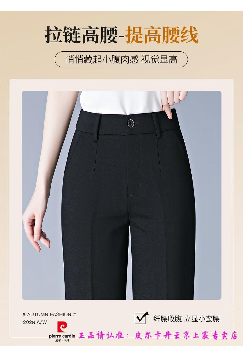 皮尔卡丹西装裤女春秋2025新款宽松休闲直筒中年妈妈裤子女士西裤职业灰色 黑色 单裤不加绒 S