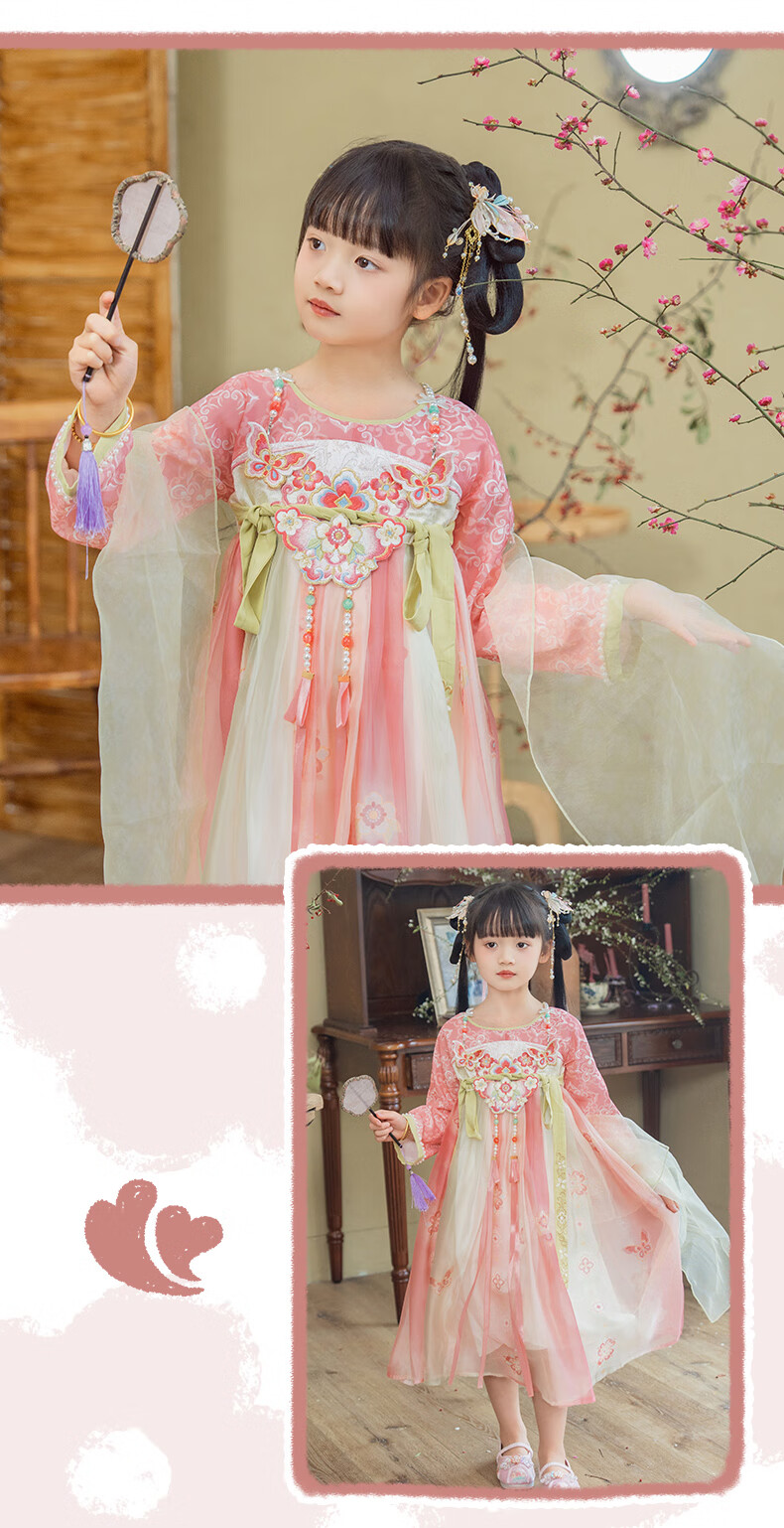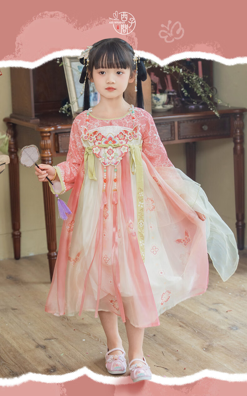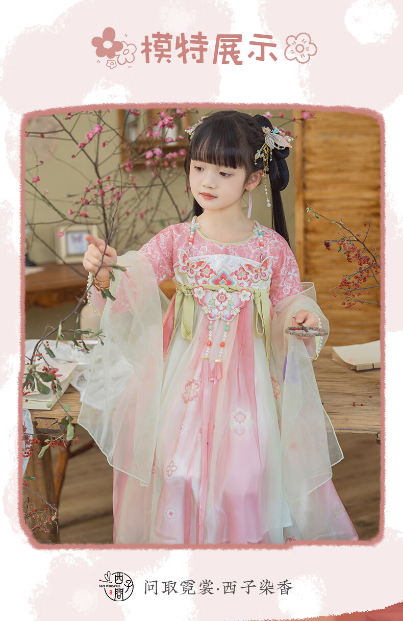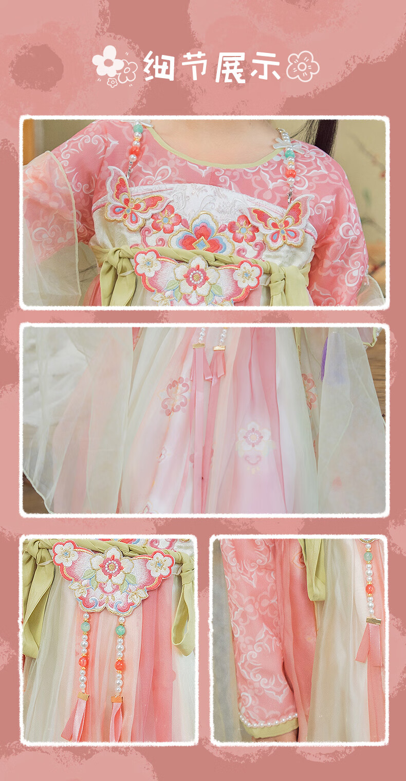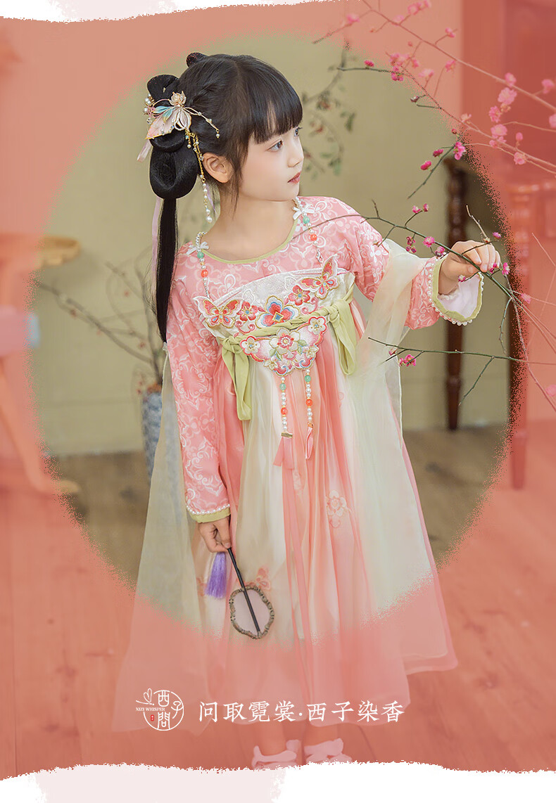 西子问【西子问】汉服女童秋款唐装古风刺绣襦裙女宝宝中国风连衣裙蝶意 粉色 100