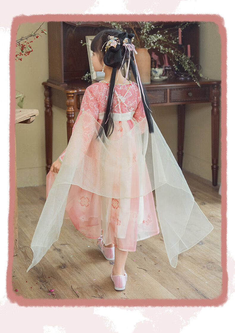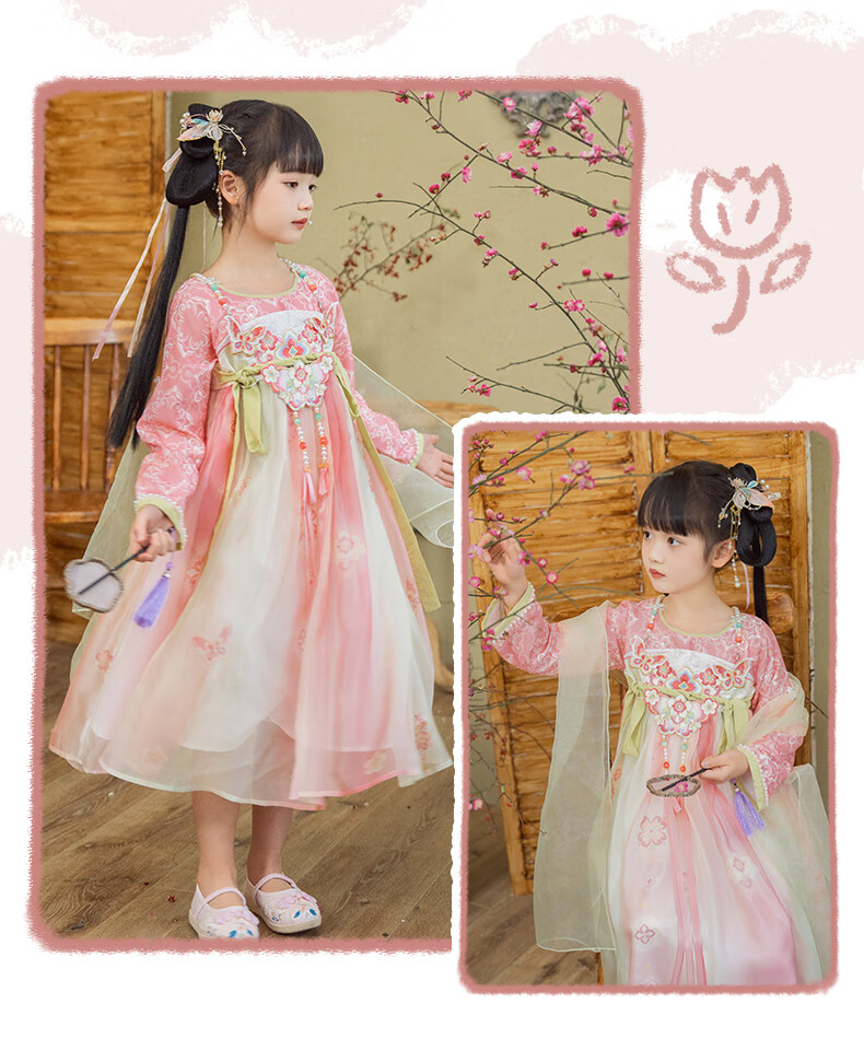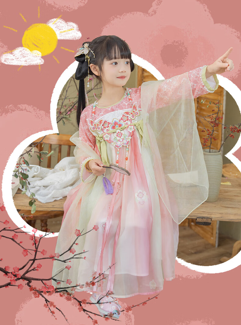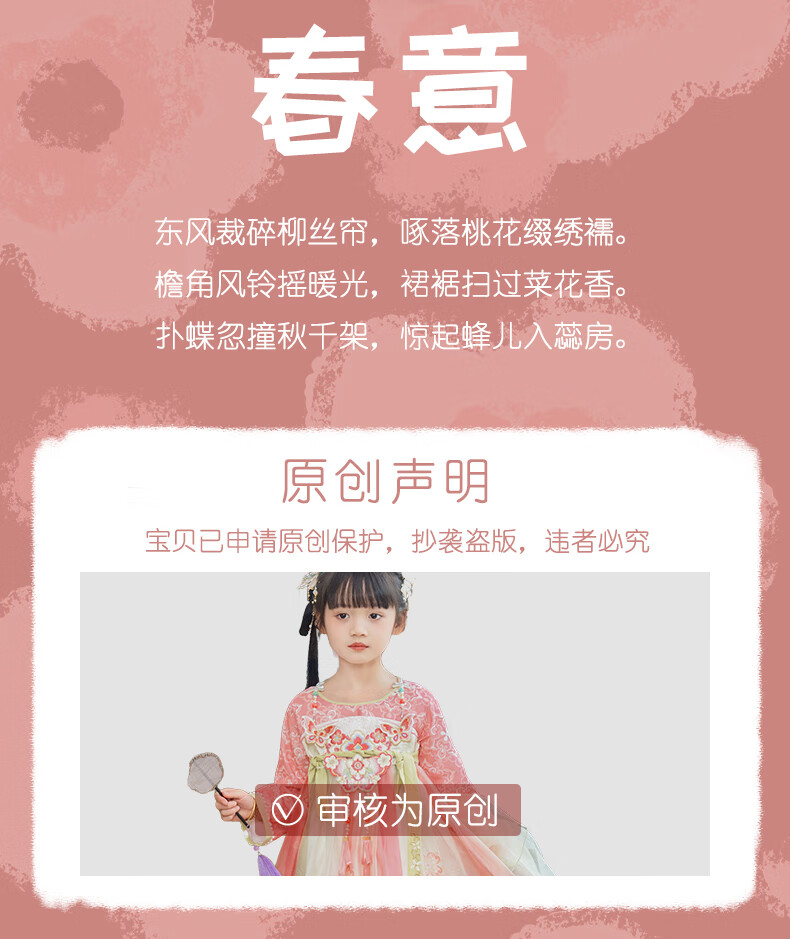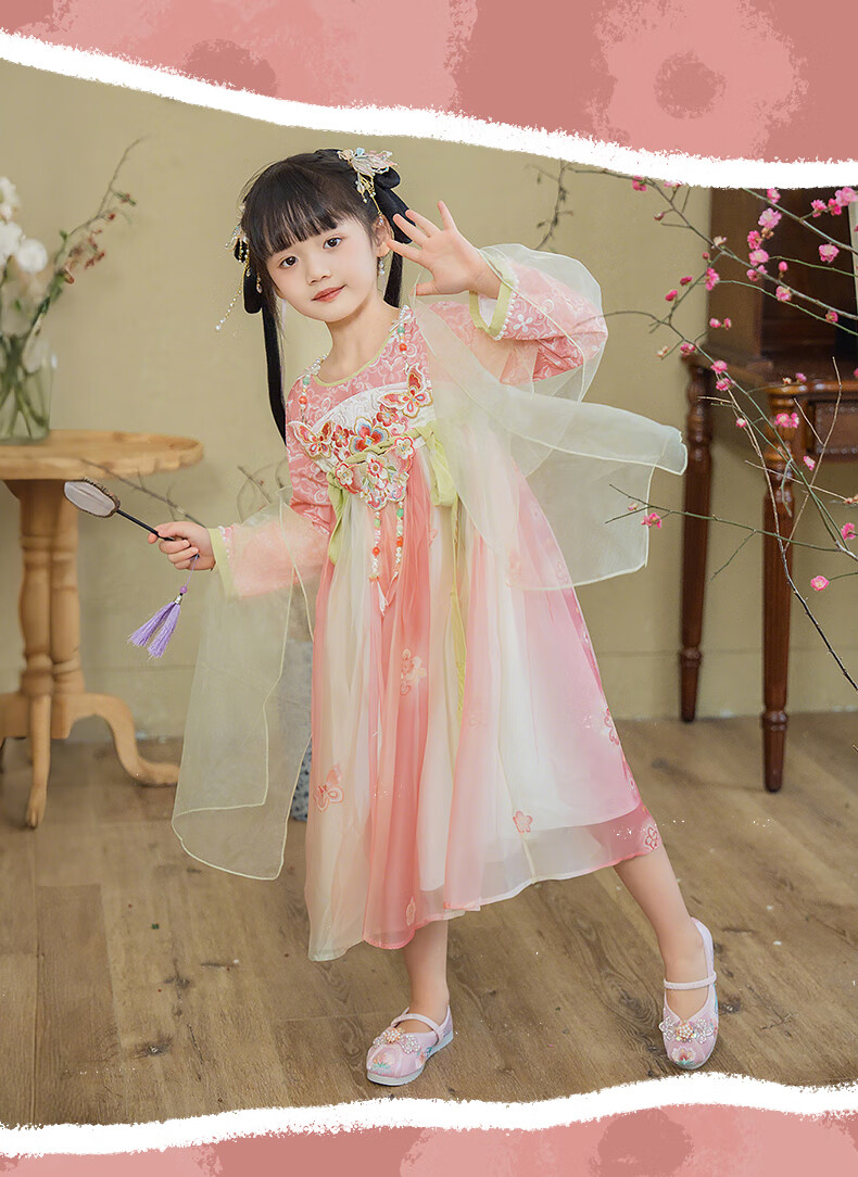 西子问【西子问】汉服女童秋款唐装古风刺绣襦裙女宝宝中国风连衣裙蝶意 粉色 100