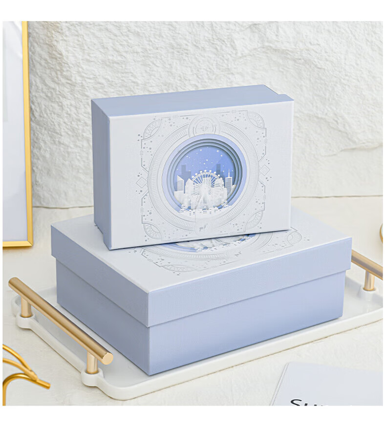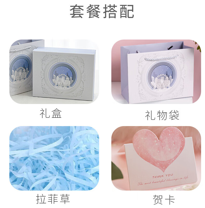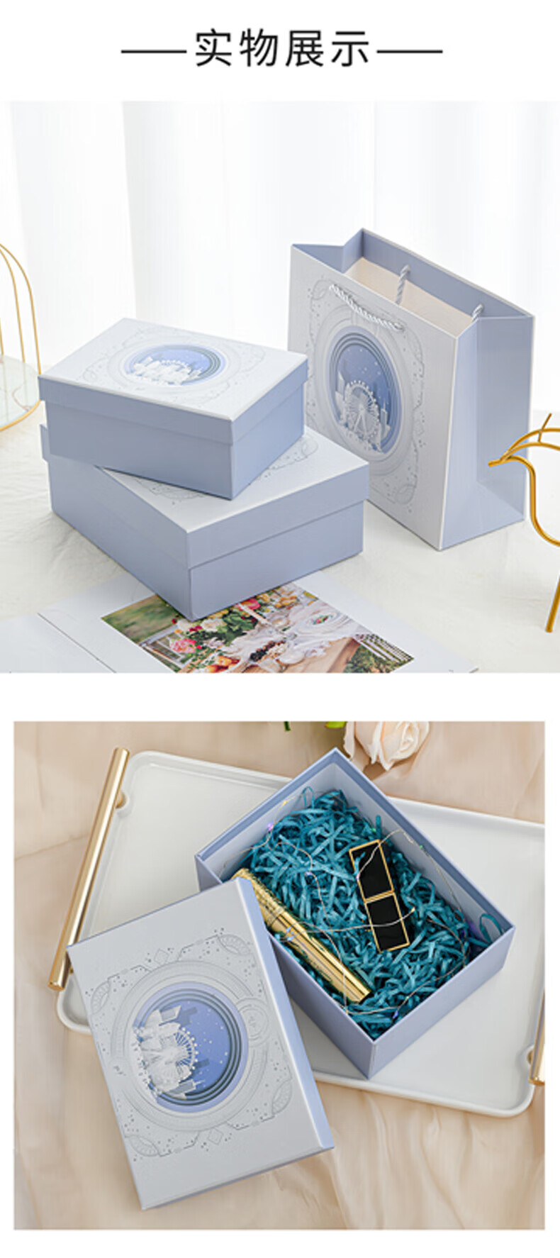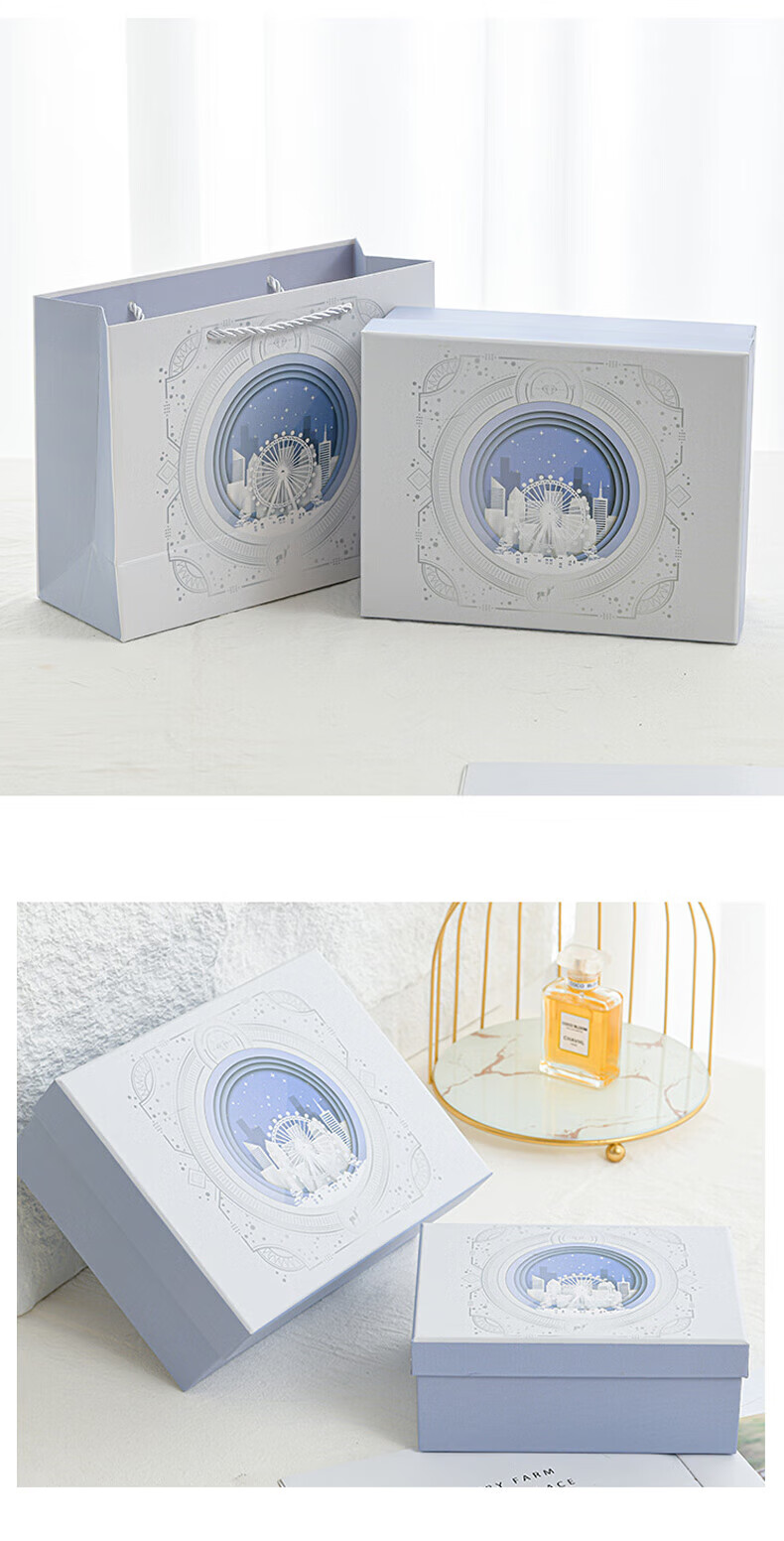 威尔基礼物盒礼盒空盒高级感礼品盒包装盒生日新年礼盒大号拉菲草送女生 摩天轮礼盒 22*17*8.3cm 带礼袋+拉菲草+贺卡