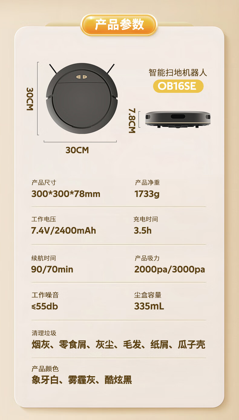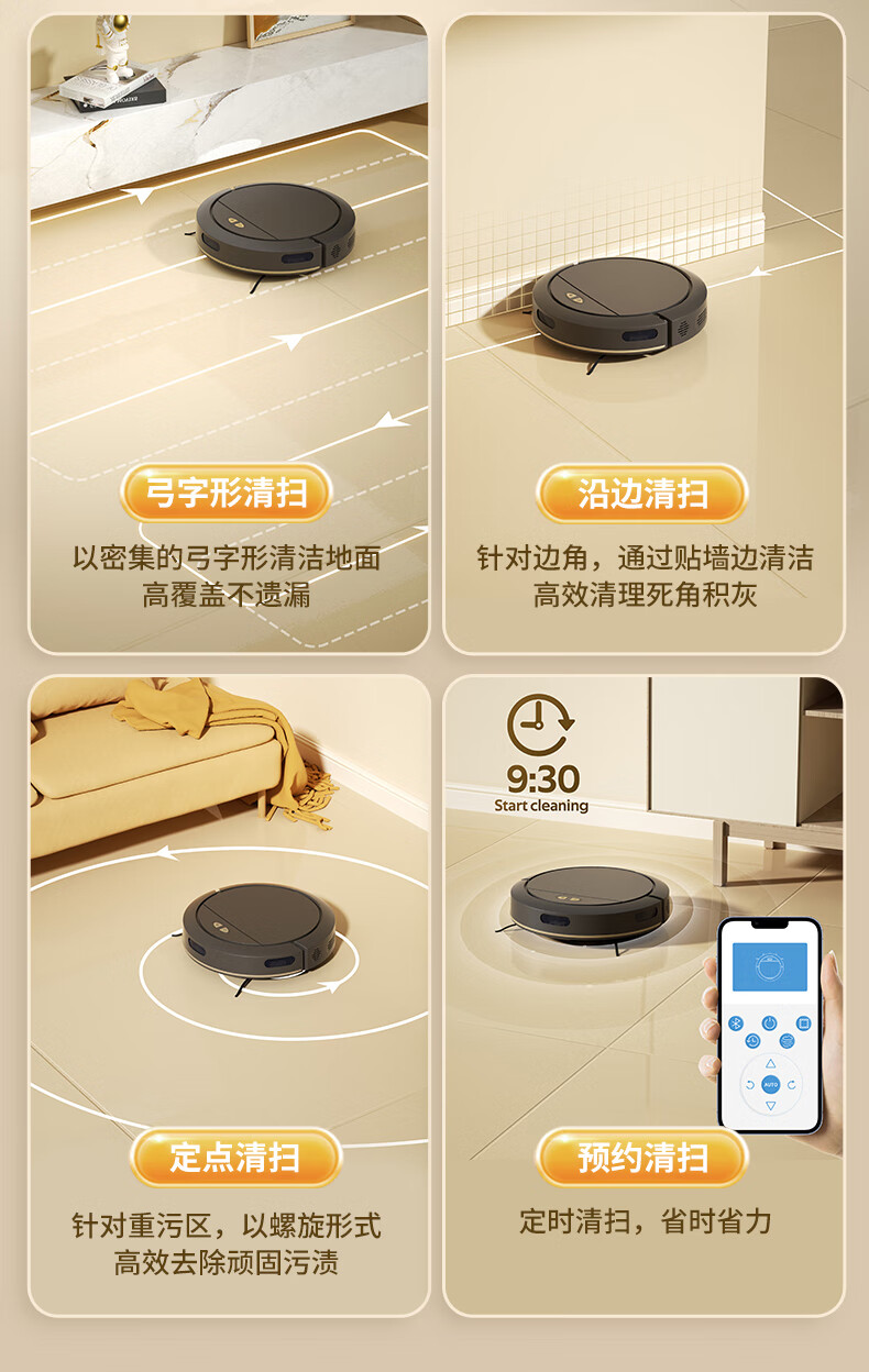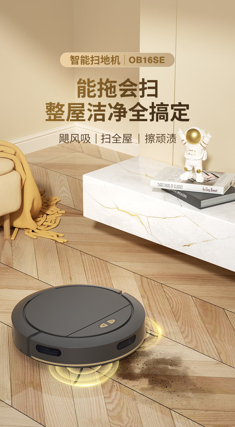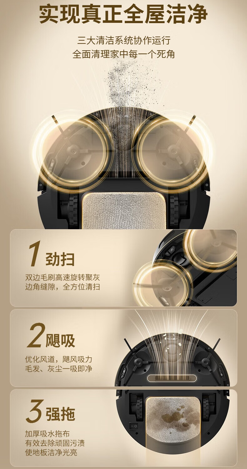 全自动扫地机器人家用扫拖吸三合一扫地机大吸力智能清扫非科沃斯石头云鲸小米追觅洗地机SROB16SE 黑色