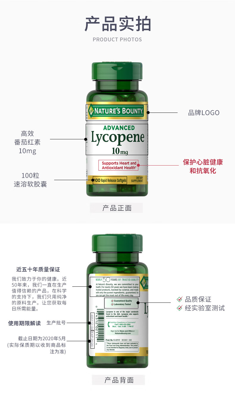 自然之宝雀巢旗下加强型番茄红素软胶囊男士备孕补肾前列腺保健品100粒