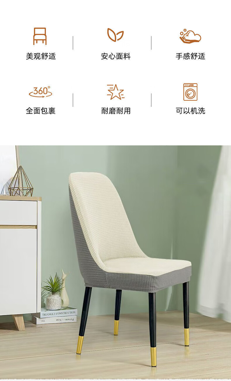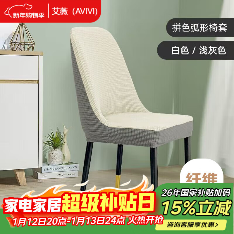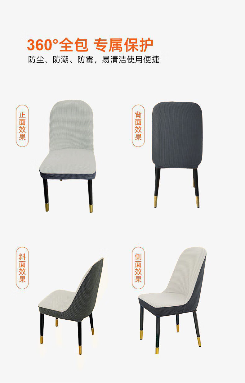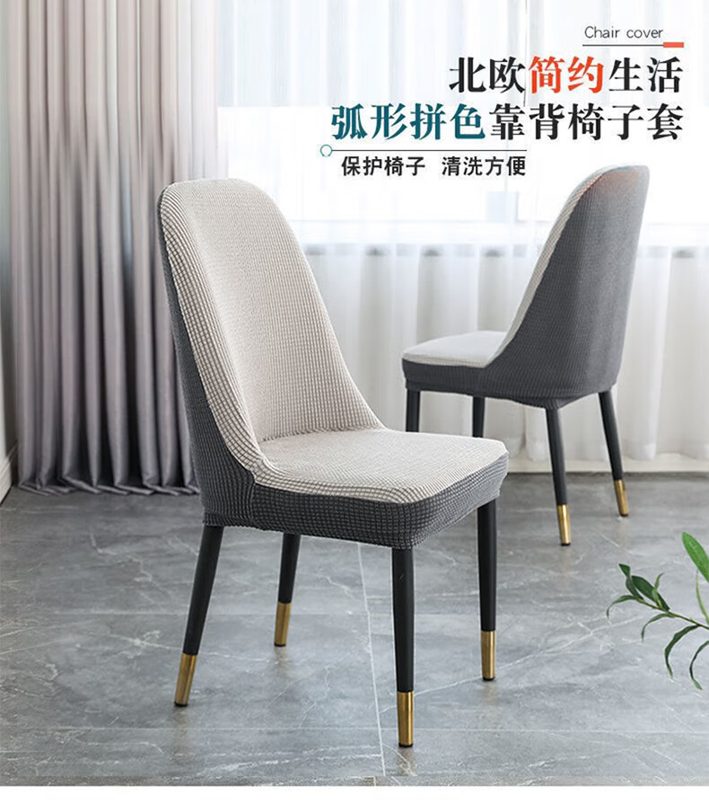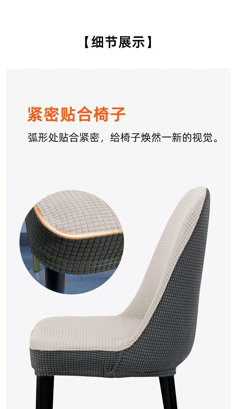 艾薇弧形椅子套万能全包餐桌弹力凳子套加厚餐椅套圆座椅套罩芝麻灰白