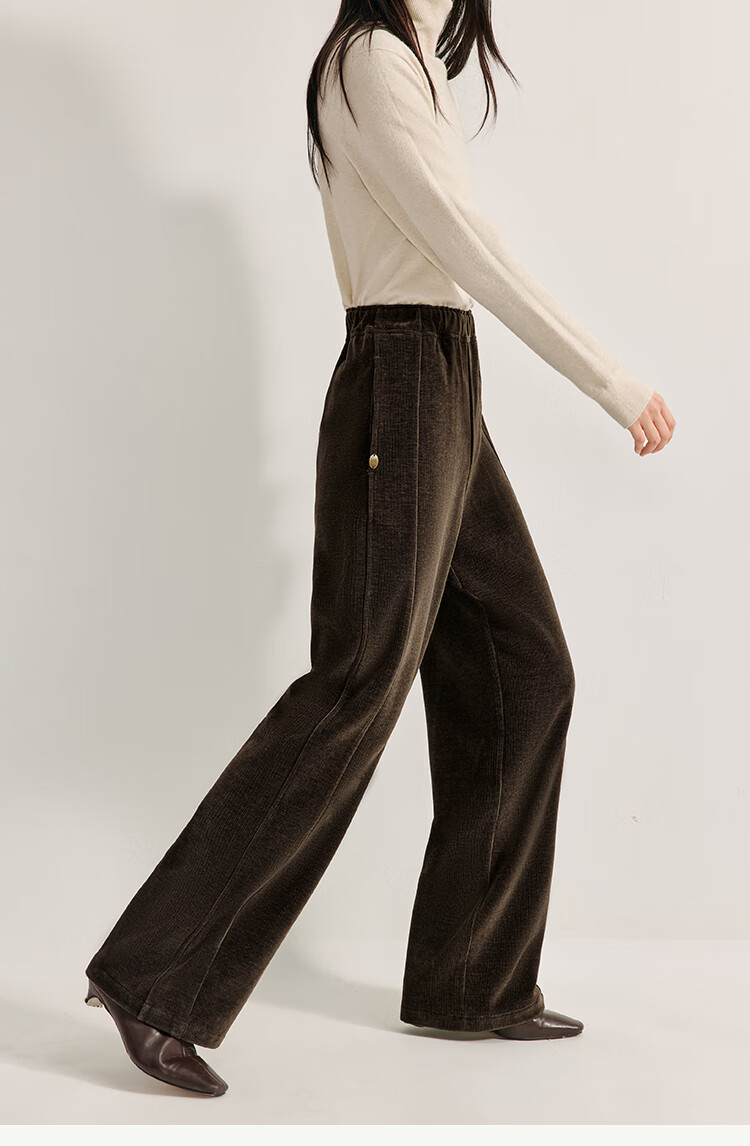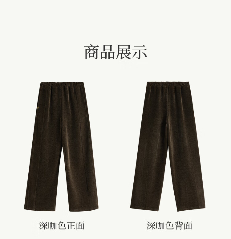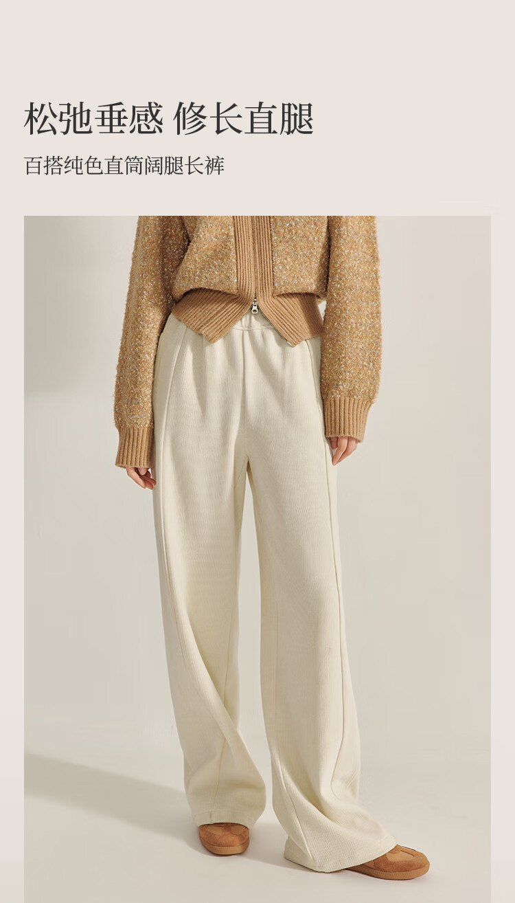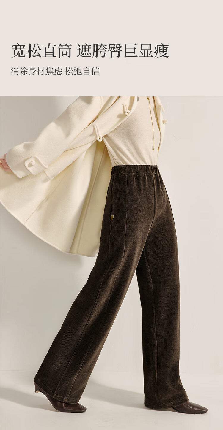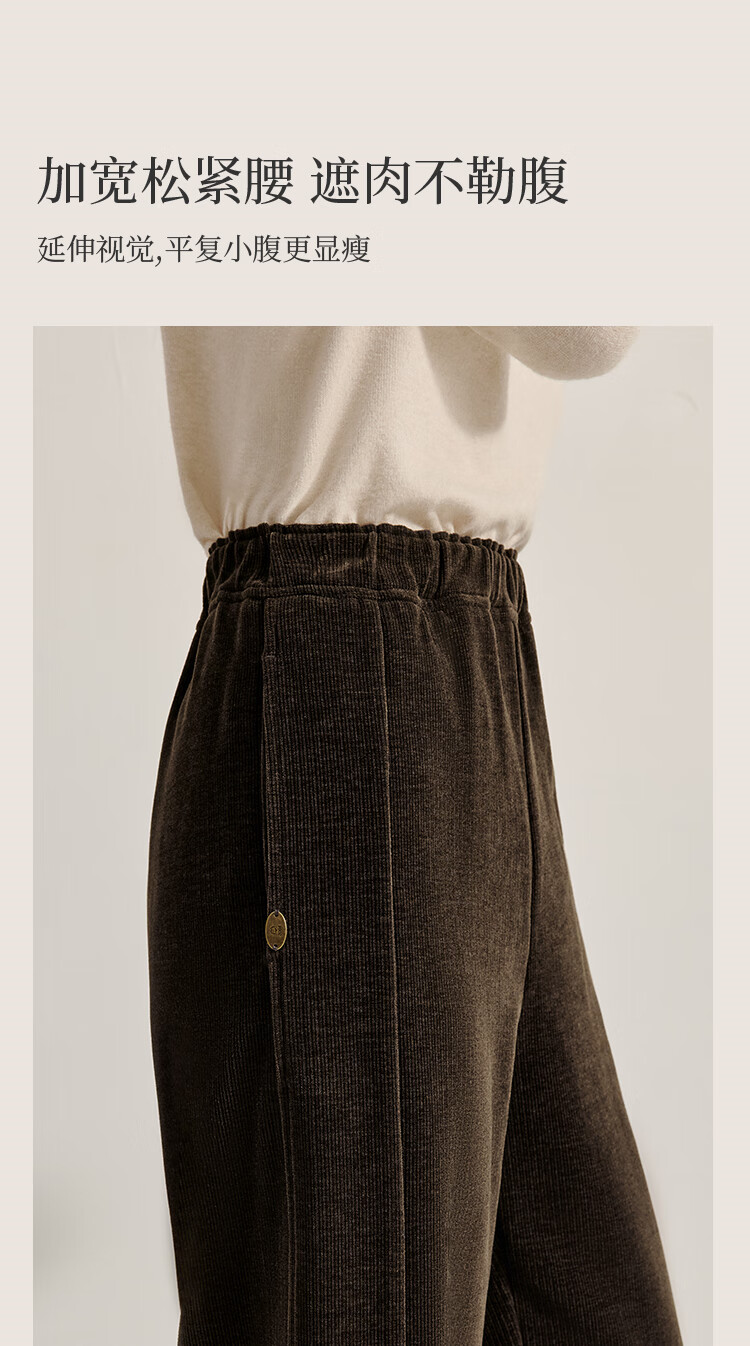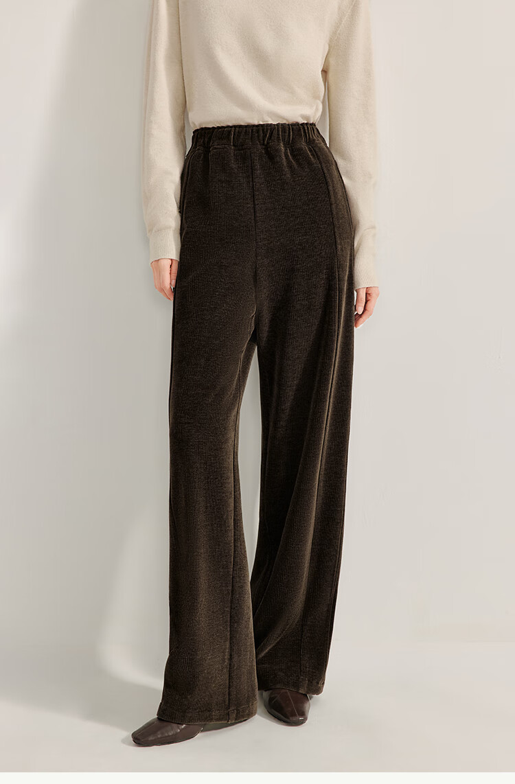 茵曼双面雪尼尔宽松直筒裤冬女装休闲松紧腰保暖长裤子 杏色 M
