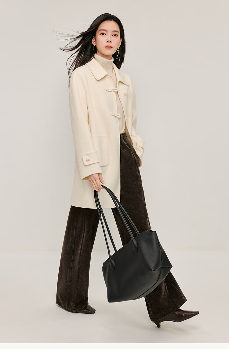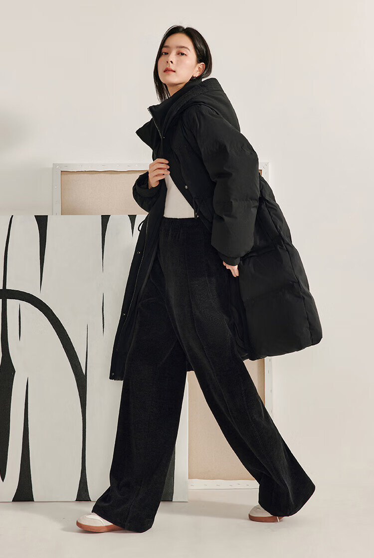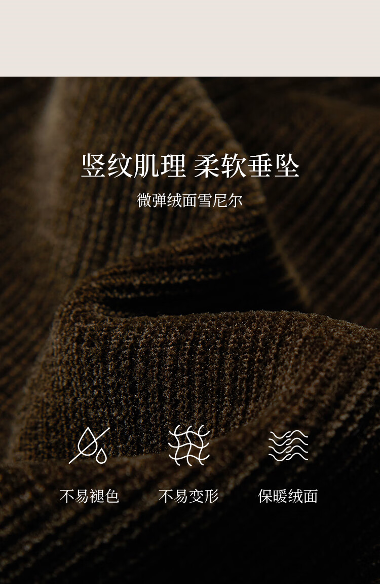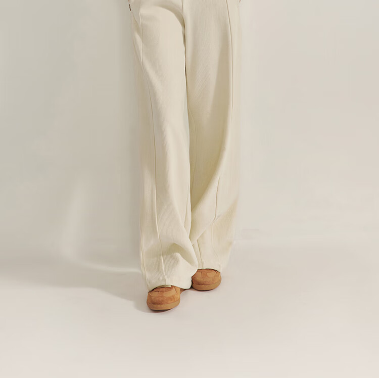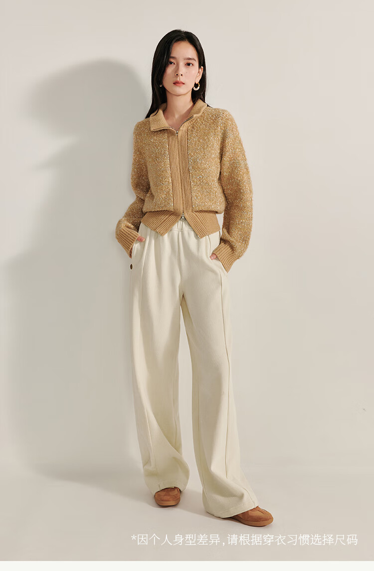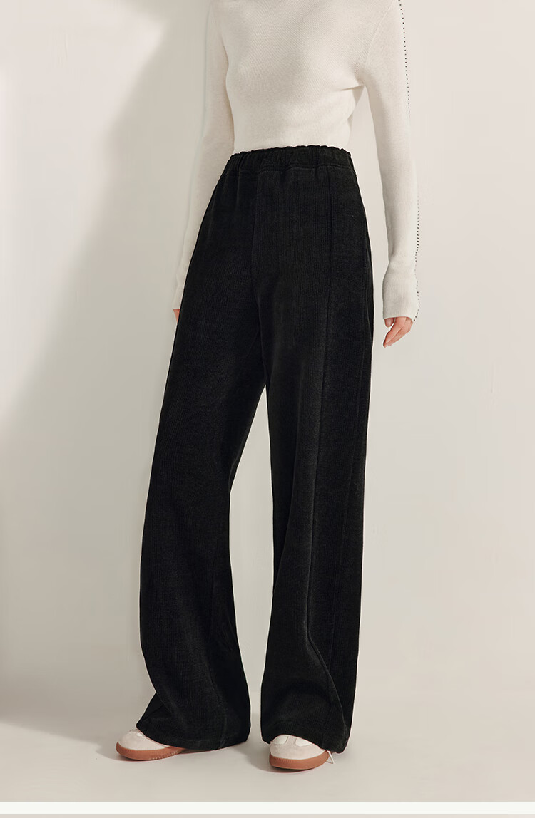 茵曼双面雪尼尔宽松直筒裤冬女装休闲松紧腰保暖长裤子 杏色 M