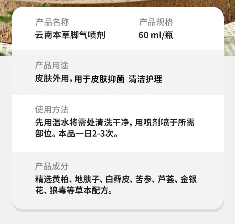 云南本草脚气喷剂狼毒止舒缓痒脱皮烂脚丫真菌感染脚汗水泡型脚痒脚臭