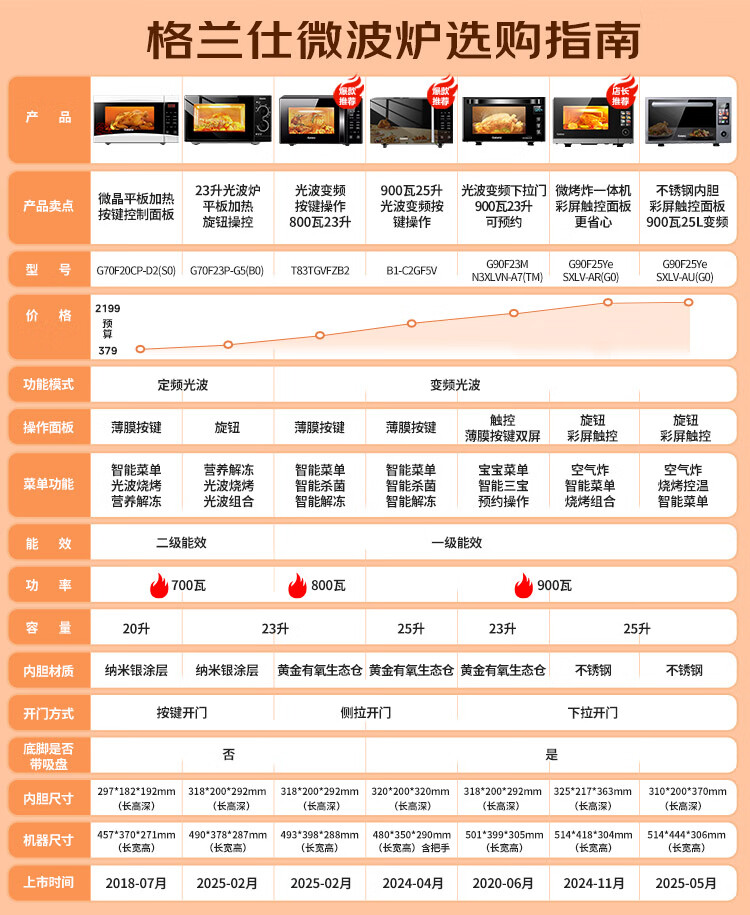 格兰仕(Galanz)家用微波炉微烤一体机烤箱光波炉700瓦节能省电 23升平板易清洁 六档火力 精准控温快速解冻G5(B0)
