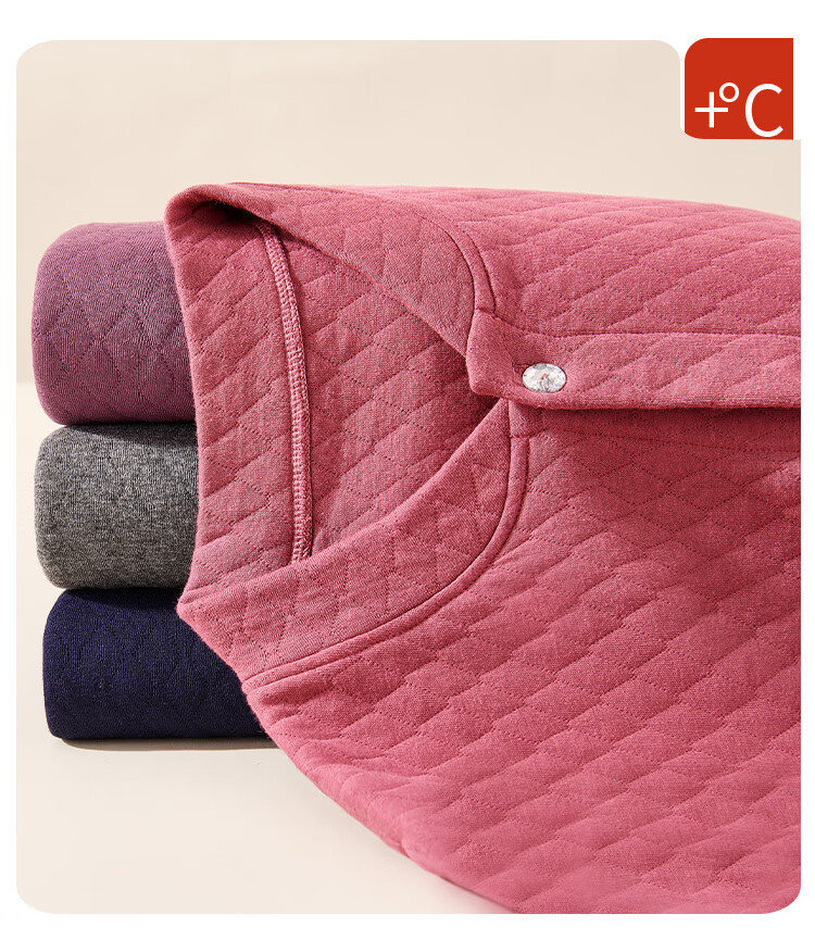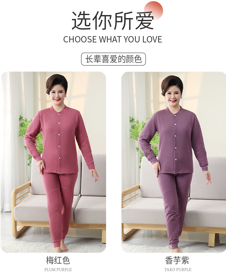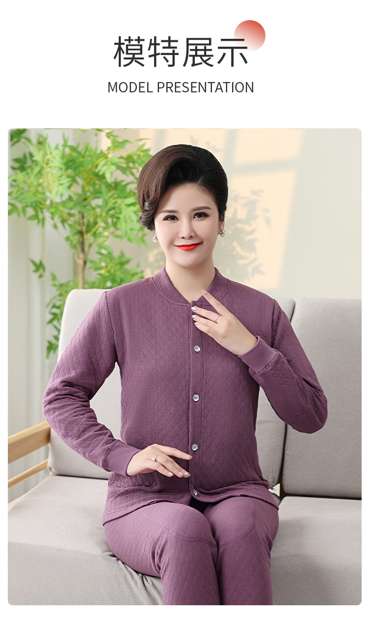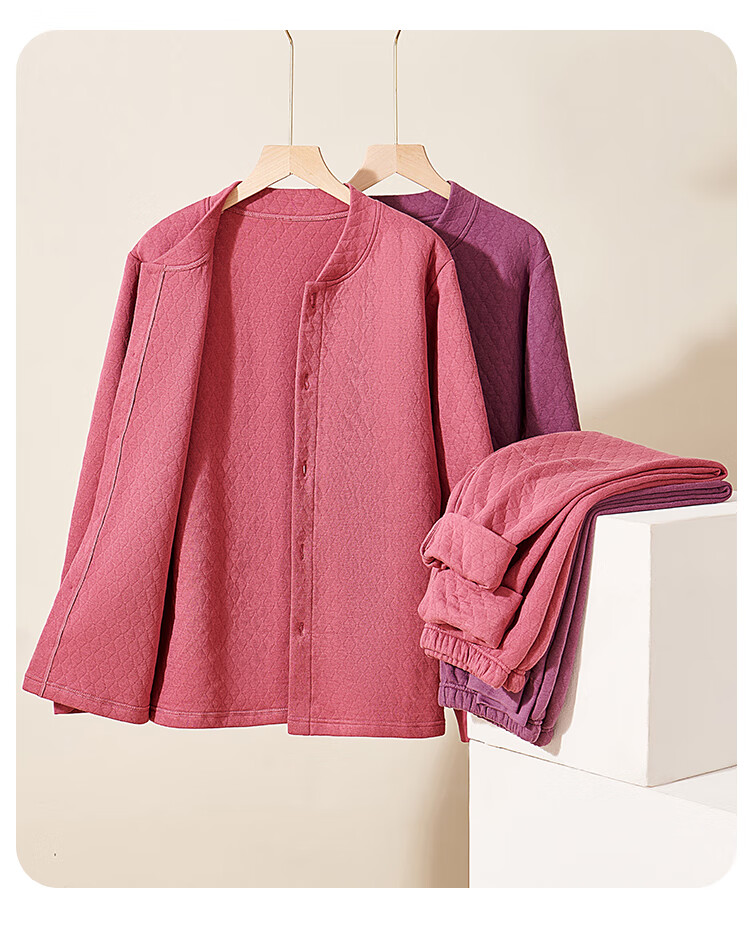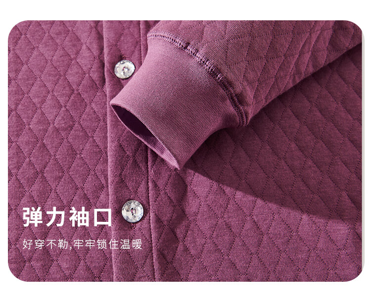 宜而爽中老年保暖内衣秋冬季女士三层夹棉加厚开衫套装送妈妈