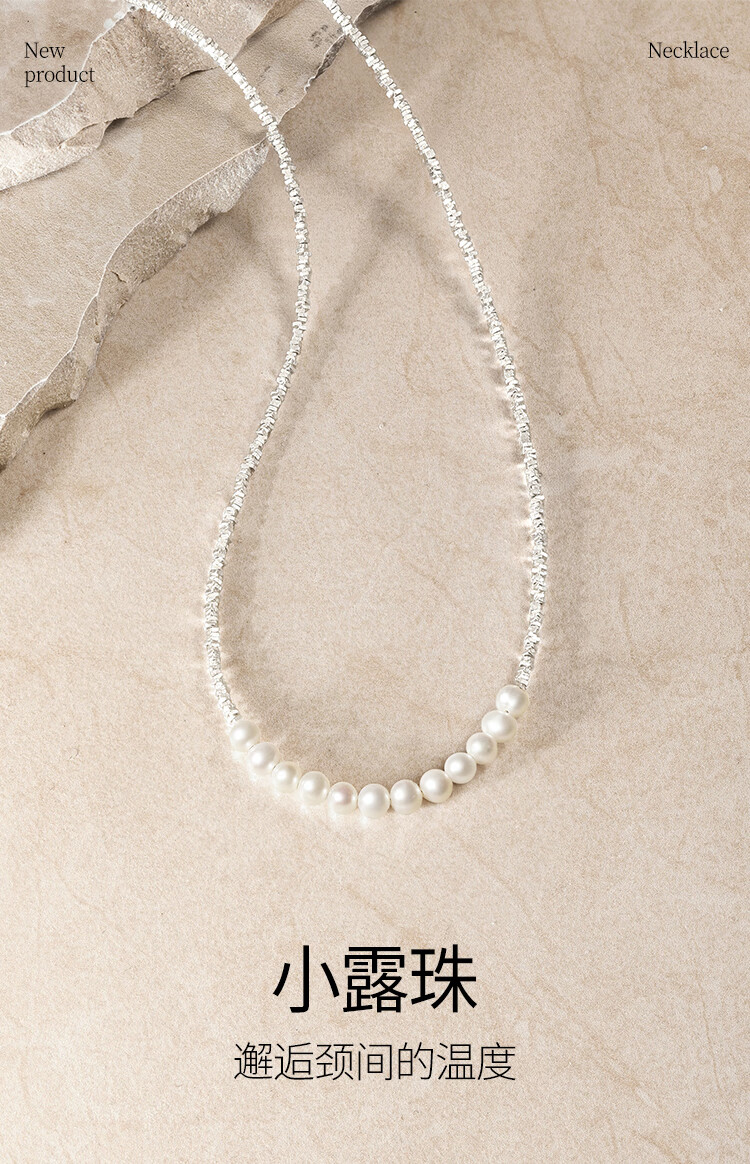 周六福(ZLF)新年礼物 S925银淡水珍珠项链女小露珠优雅锁骨颈链送生日礼物 链坠链长40+3cm
