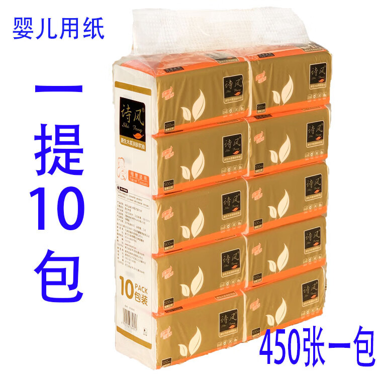 诗风纸巾吸水抽纸擦脸绵柔 婴儿专用大号餐巾纸实惠装整箱100大包