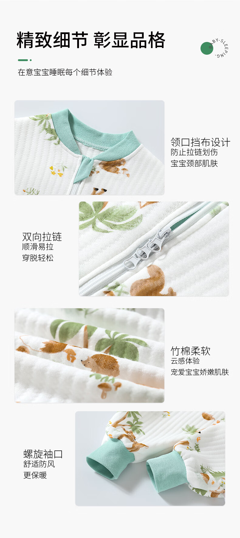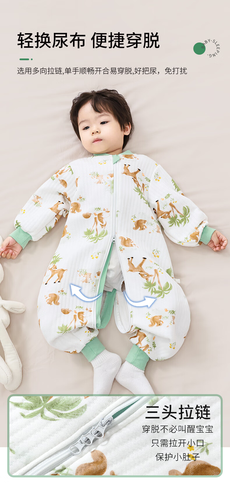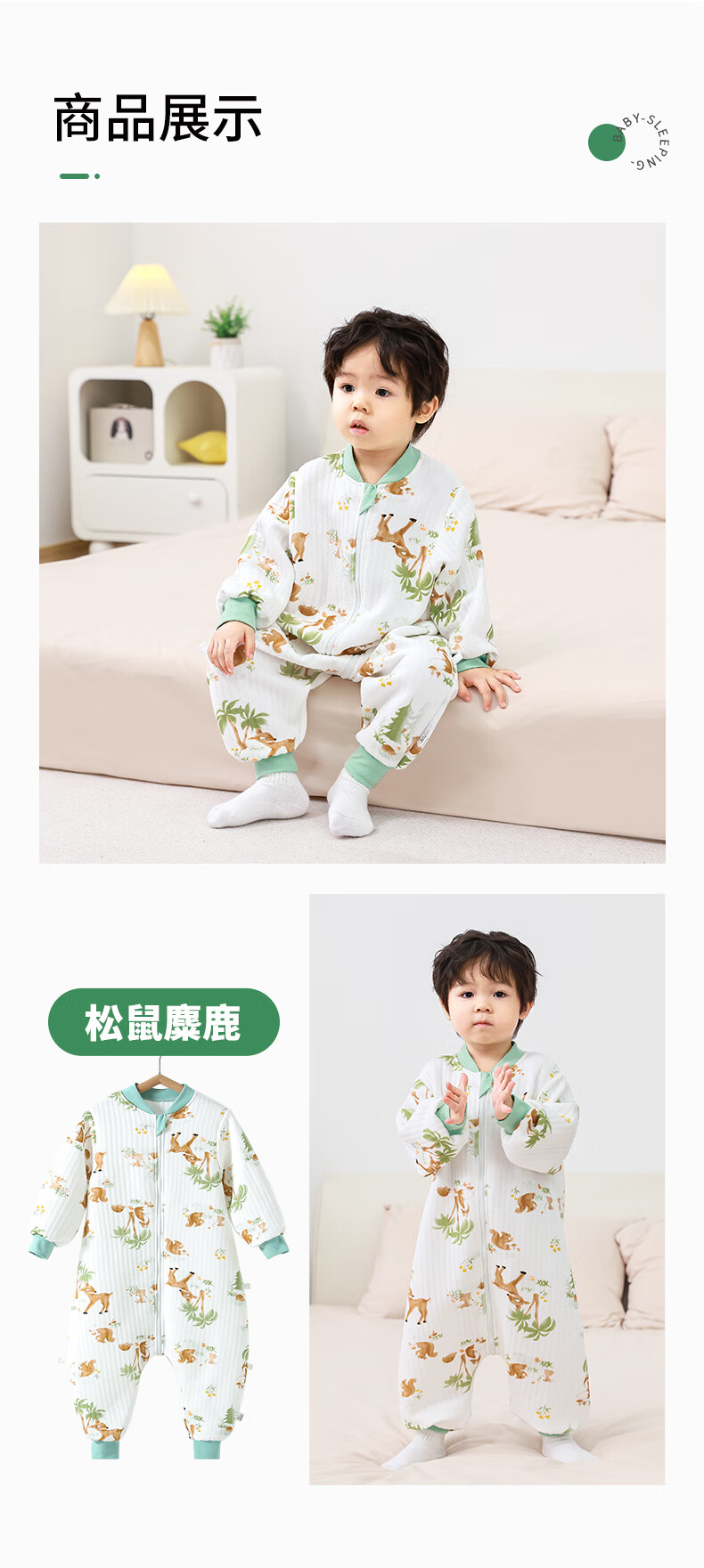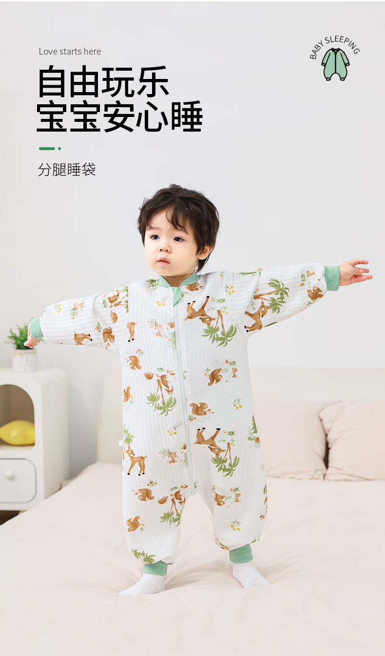 童颜婴儿睡袋秋冬季儿童防踢被竹棉宝宝睡衣空气层分腿睡袋 麋鹿100码